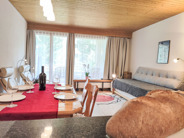 Davos Dorf: Schönes, komfortables Mehrfamilienhaus "Verbena", 1'560 m.ü.M., Baujahr 1971. Im Ortsteil Davos Dorf, 700 m vom Zentrum von Davos Dorf, ruhige Lage in einem Wohnquartier, verkehrsberuhigte Zone, 600 m vom See, Richtung Südosten. Zur Mitbenutzung: Garten, Wiese. Im Hause: Skiraum, Zentralheizung, Waschmaschine, Wäschetrockner. Wäschewechsel (zusätzlich extra). Handtuchwechsel (zusätzlich extra). Wohnungsreinigung möglich (extra). Zufahrt bis zum Haus. Einkaufsgeschäft 600 m, Supermarkt, Restaurant, Bäckerei 800 m, Café 800 m, Fahrradverleih 600 m, Bushaltestelle 200 m, Bahnstation "Davos Dorf", Hallenbad 1 km, Badebucht 550 m, Strandbad 600 m, See Davoser See 500 m. Golfplatz (18 Loch) 1.7 km, Surfschule, Segelschule, Tennis 5 km, Tennishalle 5 km, Minigolf 1.5 km, Reitstall 6 km, Sportzentrum 2 km, Wanderwege ab Haus, Radweg 100 m, Luftseilbahn 3 km, Bergeisenbahn, Skilift, Skipisten 500 m, Skiverleih 500 m, Skibushaltestelle 100 m, Skischule 600 m, Kinderskischule 500 m, Schlittelbahn 600 m, Langlaufloipe 200 m, Eisfeld 600 m, Kinderspielplatz 300 m. Nahe gelegene Sehenswürdigkeiten: Heimatmuseum 200 m. Bekannte Skigebiete sind gut erreichbar: Parsenn 1 km, Jakobshorn 2 km, Rinerhorn 7 km. Bekannte Seen in der Umgebung sind gut erreichbar: Davosersee 500 m. Bitte beachten: geeignet für Familien. Be- und Entladen am Ferienhaus möglich.