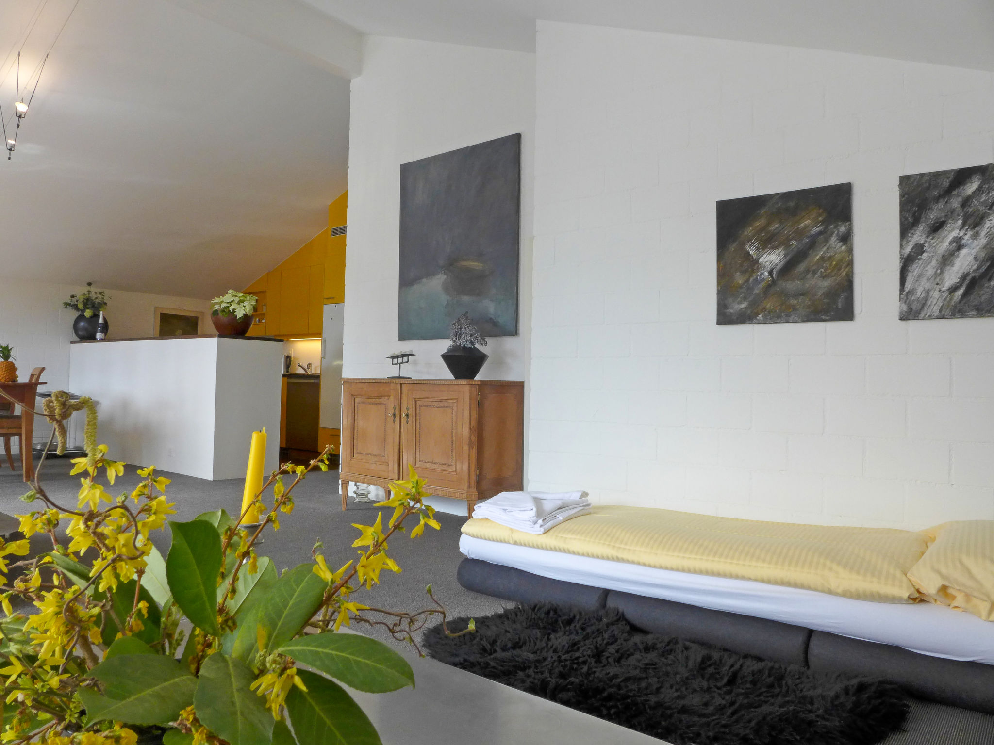"Im Gruebi Apt.5", 3-Zimmer-Attikawohnung 105 m2 im 2. Stock, Südlage. Geräumig und hell, teilweise abgeschrägt, komfortabel und geschmackvoll eingerichtet: Wohn-/Esszimmer mit Panoramafenster mit 1 Schlafmöglichkeit (65 cm, Länge 195 cm), offenem Kamin, Kabel-TV und Flachbildschirm. Ausgang zum Balkon. 1 Zimmer mit 2 Betten (90 cm, Länge 200 cm). 1 Zimmer mit 2 Betten (90 cm, Länge 190 cm). Grosse, offene Küche (Backofen, Geschirrspüler, 4 Glaskeramikplatten, Toaster, Wasserkocher, elektrische Kaffeemaschine, Kapseln für die Kaffeemaschine (Nespresso) extra, Racletteofen, Fondue Set (Käse)). Bad/WC, Dusche/WC. Heizung. Balkon, Südlage. Balkonmöbel. Herrliche Sicht auf die Berge und Jungfrau. Zur Verfügung: Waschmaschine, Haartrockner, Holz (extra). Internet (Wireless LAN, gratis). Bitte beachten: Nichtraucher-Unterkunft.