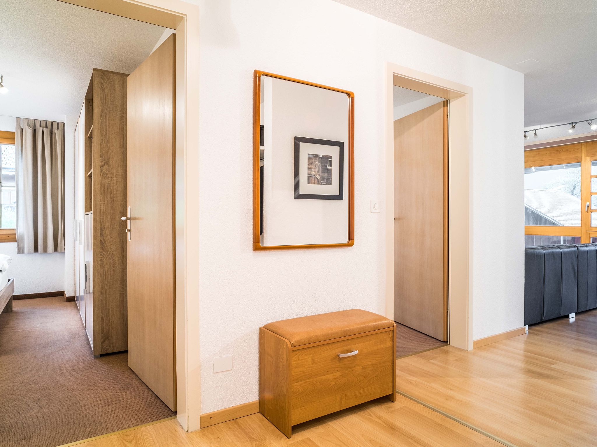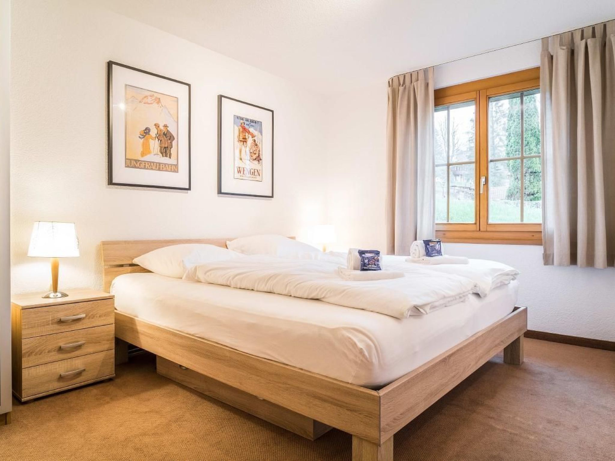 Die 90m2 grosse 3.5-Zimmerwohnung befindet sich im 2. Stockwerk und bietet ein Schlafzimmer mit Doppelbett, ein Schlafzimmer mit zwei Einzelbetten, ein Badezimmer mit Dusche, WC und Bidet sowie ein Badezimmer mit Badewanne und WC. Die gut ausgestattete Küche schliesst sich an den gemütlichen Wohn- und Essbereich an. Vom Balkon aus geniessen Sie die Aussicht auf das einmalige Bergpanorama.