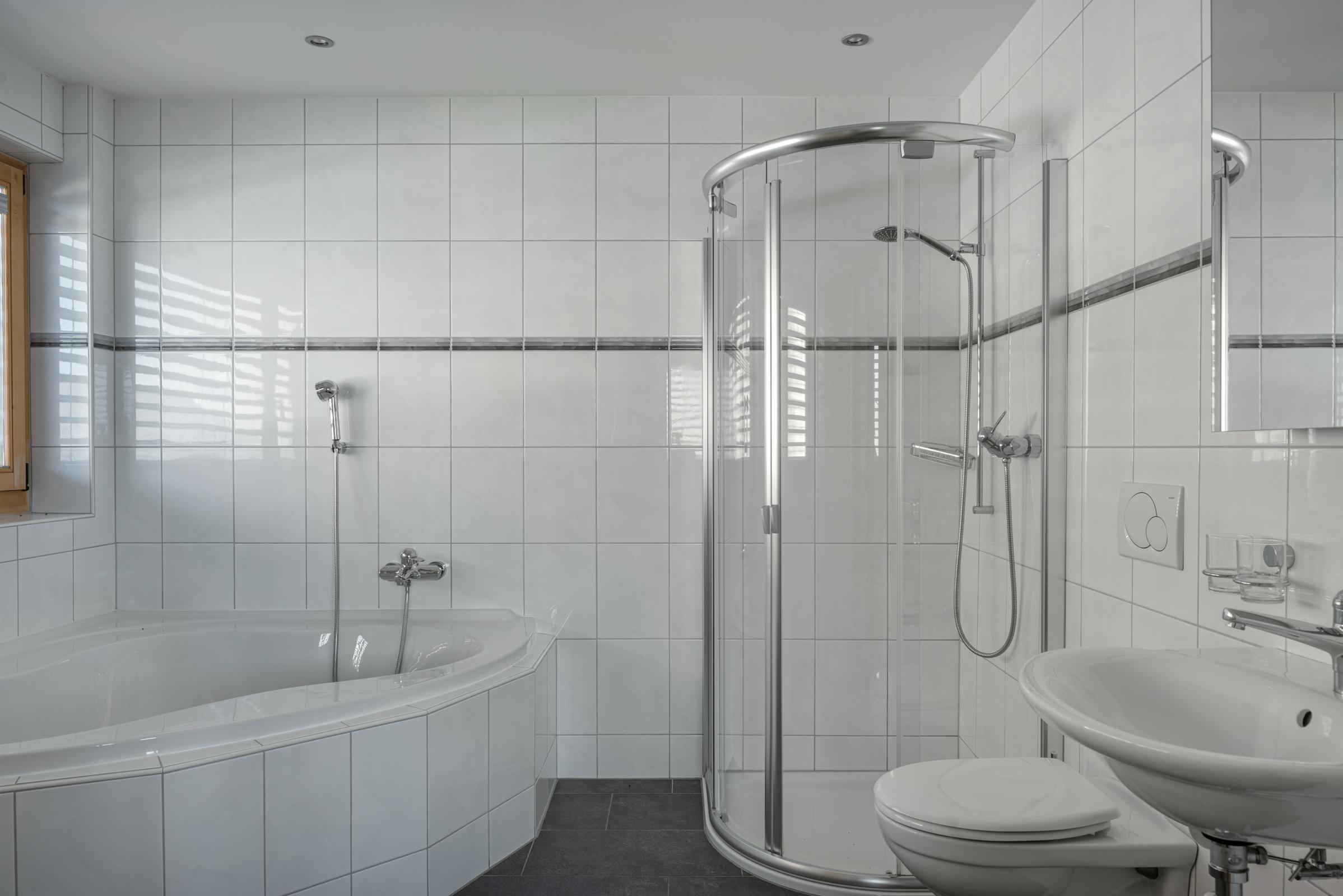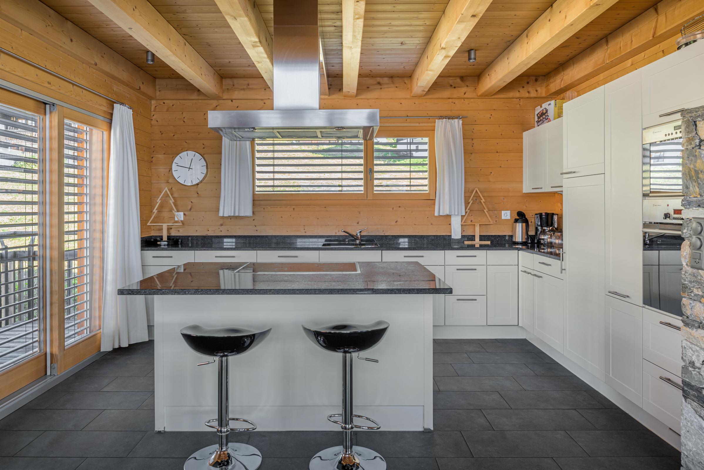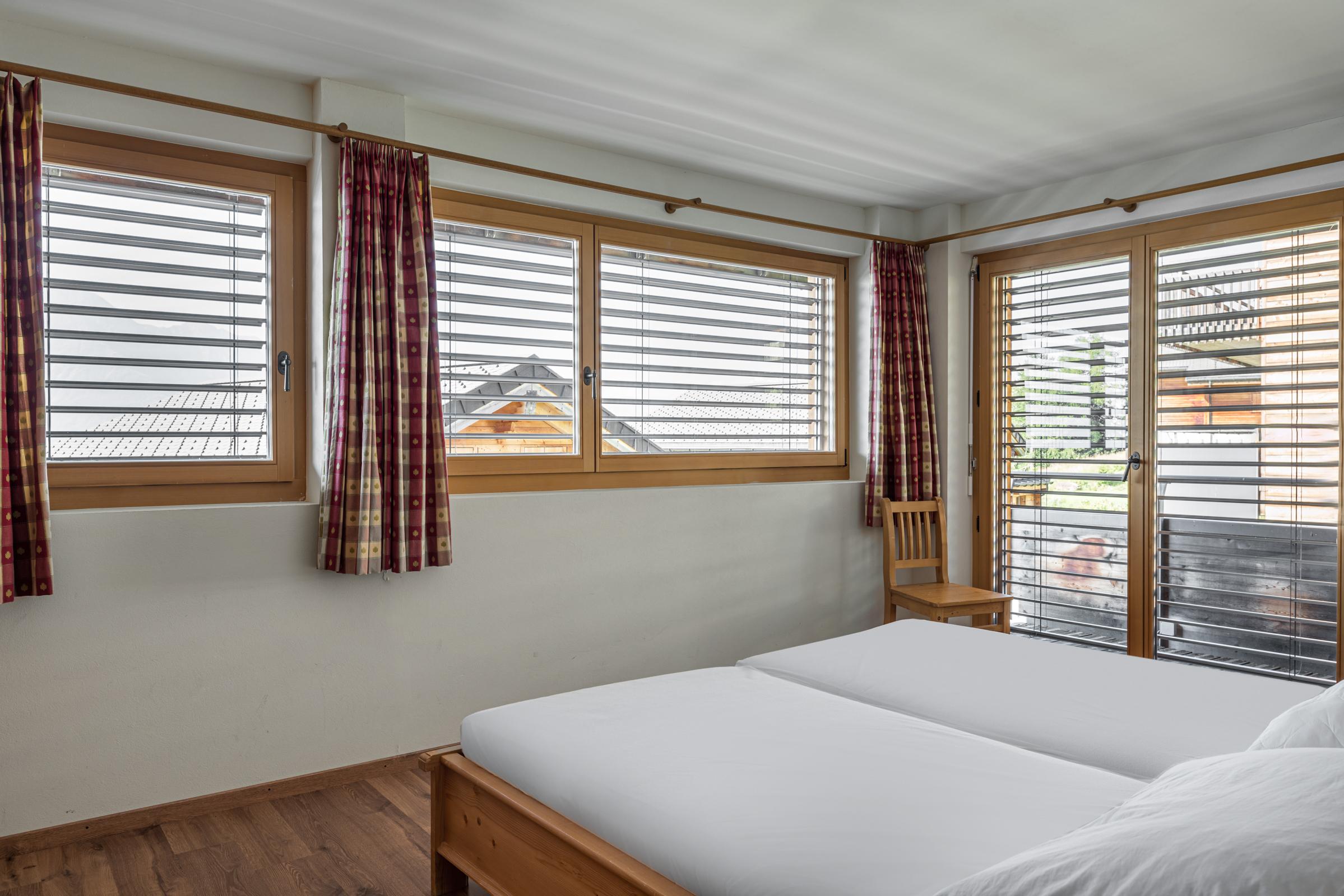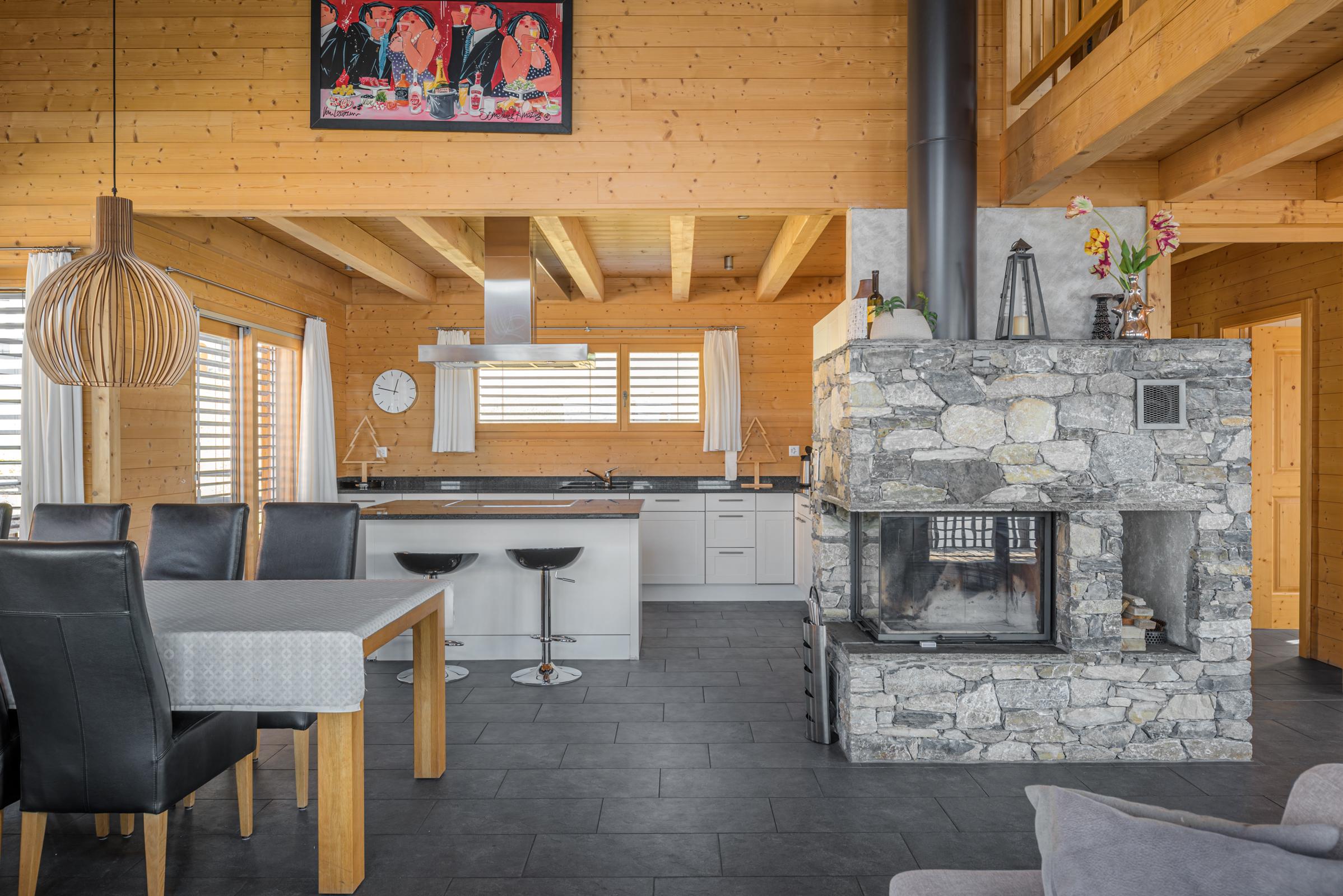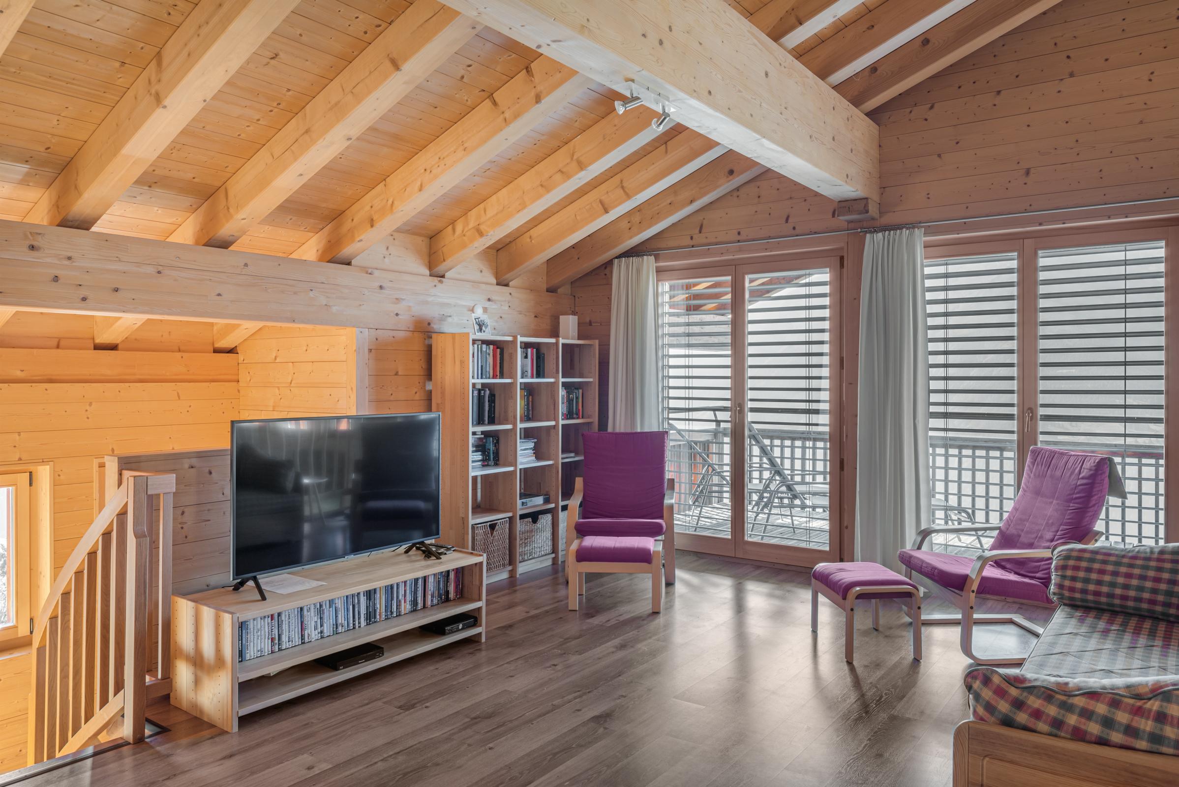 Das gemütliche Chalet erstreckt sich über drei Etagen und bietet Platz für grössere Gruppen oder Familien. Der Eingang im ersten Stock führt direkt ins Entrée mit Tages-WC und einem praktischen Skiraum samt Skischuhtrockner. Im Obergeschoss befindet sich eine offene Galerie mit zusätzlicher Sitzecke, TV und Schlafmöglichkeit. Die verschiedenen Schlafzimmer sind auf das Erd- und Obergeschoss verteilt, wobei mehrere Duschen, WCs sowie eine private Sauna für Komfort sorgen. Der nach Südwesten ausgerichtete Balkon und ein weiterer Balkon im Obergeschoss bieten einen schönen Ausblick und sonnige Stunden.