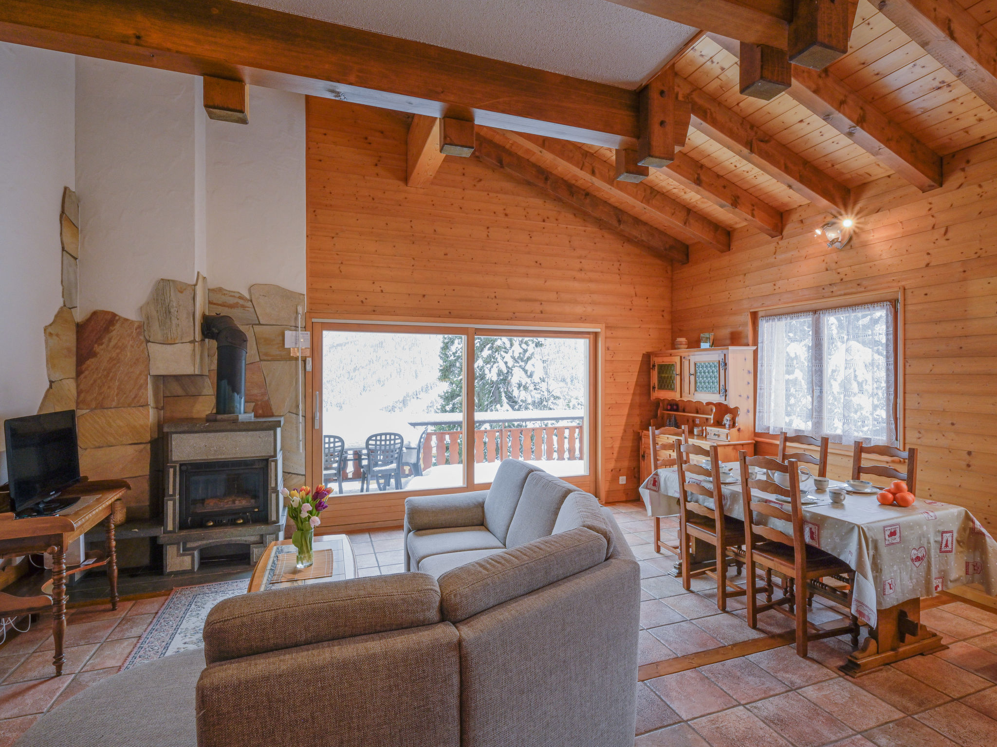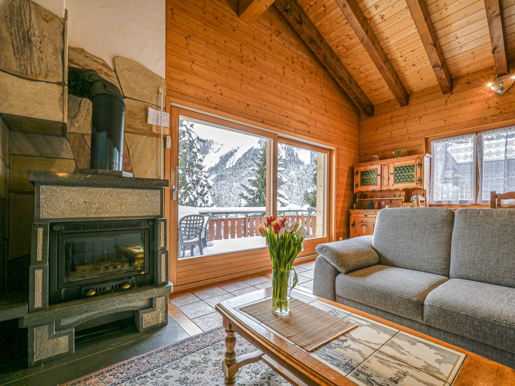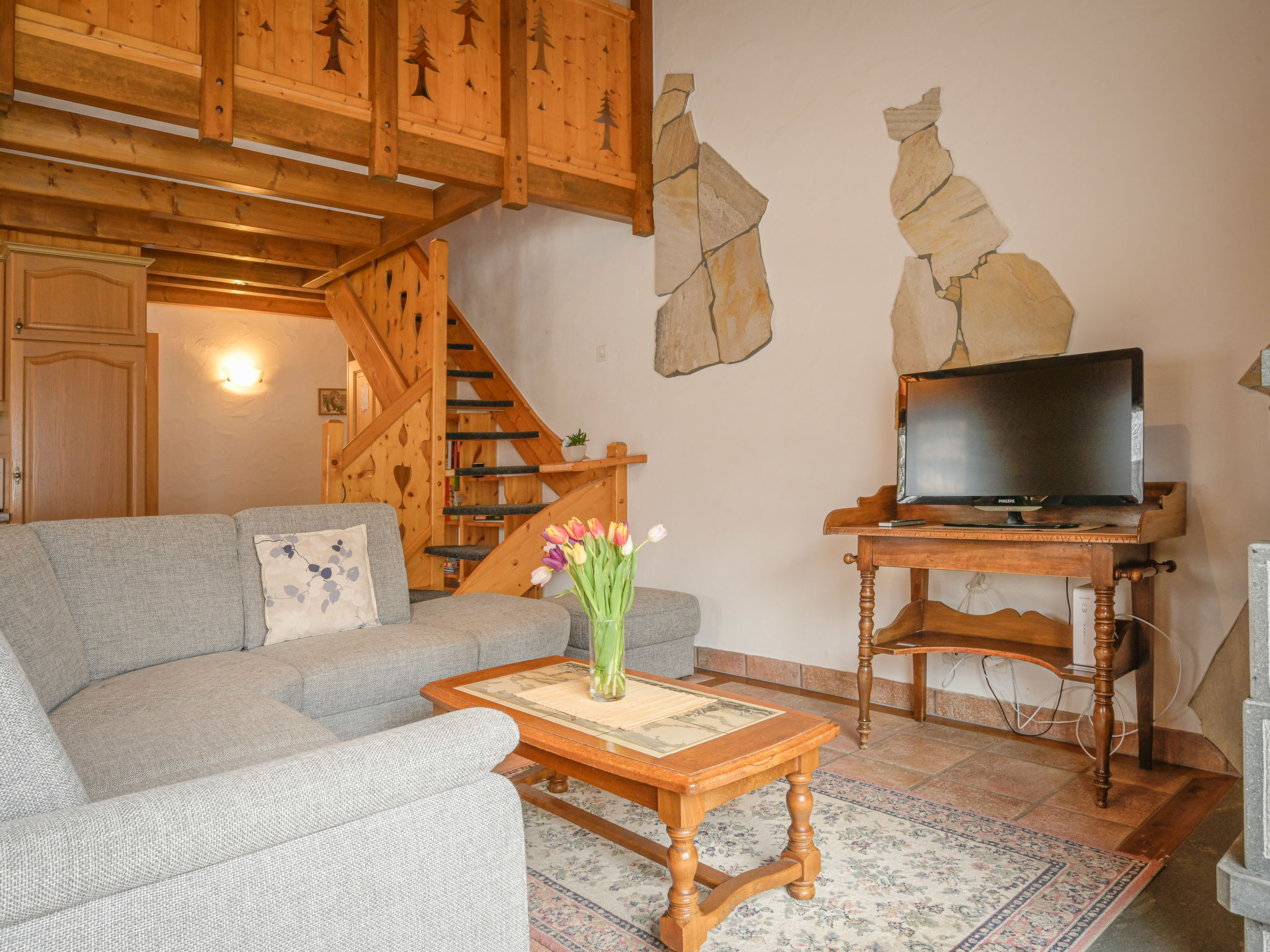 "Heida A 4", 3-Zimmer-Wohnung 75 m2 im 2. Stock, Südwestlage. Komfortabel und geschmackvoll eingerichtet: Wohn-/Esszimmer 30 m2 mit Schiebetür, Panoramafenster mit Schwedenofen, Kabel-TV und Flachbildschirm. Ausgang zum Balkon. 1 Zimmer mit 1 franz. Bett (140 cm), Radio. 1 Zimmer mit 1 Doppelbett und Radio. Galerie 10 m2 mit 1 Bett (90 cm). Kochnische (4 Kochplatten, Backofen, Geschirrspüler, Toaster, Mikrowelle, elektrische Kaffeemaschine, Kapseln für die Kaffeemaschine (Nespresso) extra, Racletteofen, Fondue Set (Chinoise, Käse)). Dusche/WC, sep. WC. Balkon 12 m2. Terrassenmöbel, Liegestühle. Sehr schöne Sicht auf die Berge und das Tal. Zur Verfügung: Babybett bis 2 Jahre. Internet (WLAN, gratis). Garage Nr. 4. Bitte beachten: Nichtraucher-Unterkunft. Maximal 1 kleines Haustier/Hund erlaubt. Anstelle eines abgeschlossenen Schlafzimmers befinden sich manche Schlafplätze in einem offenen Bereich (Galerie, Nische etc.).