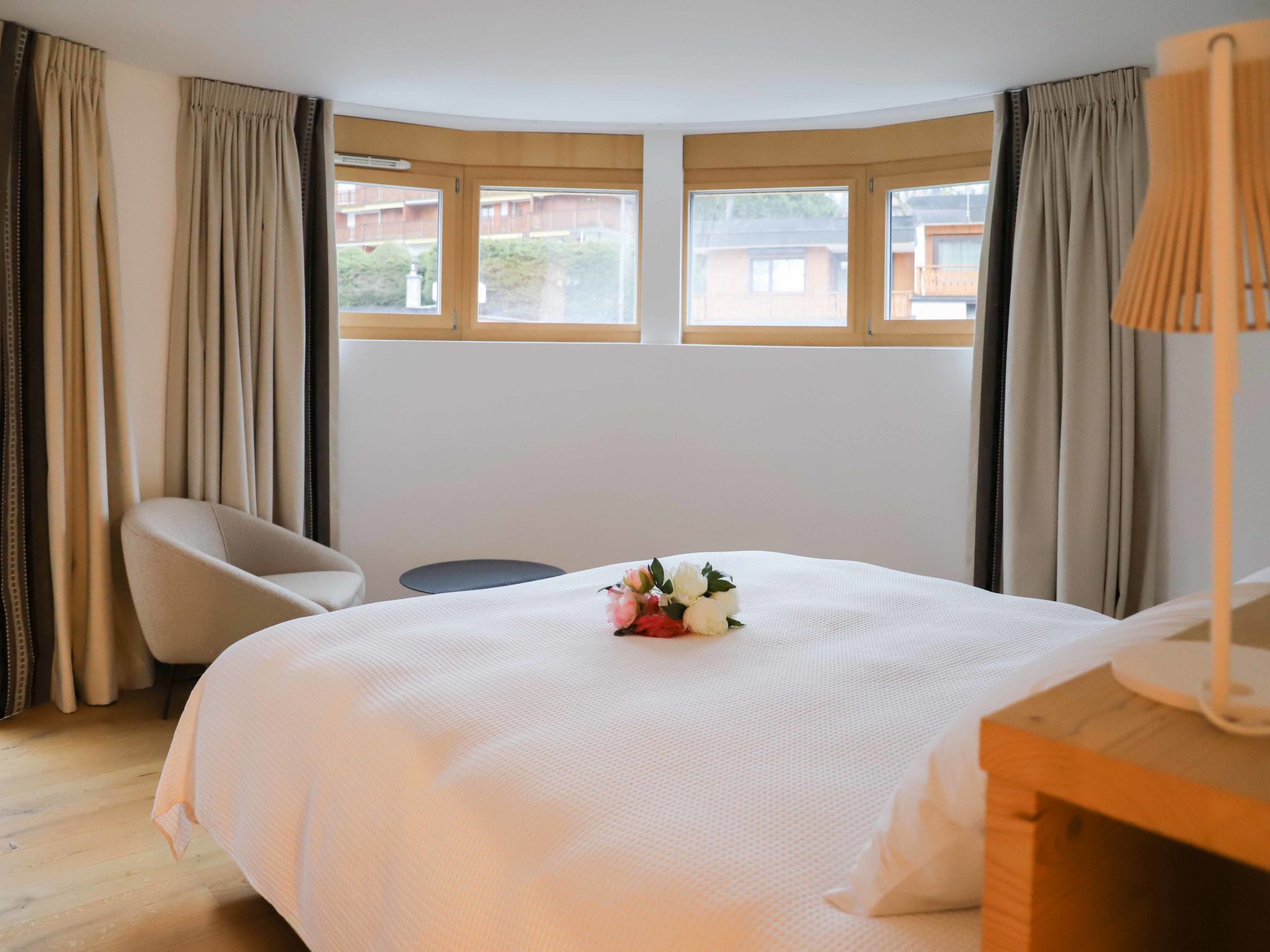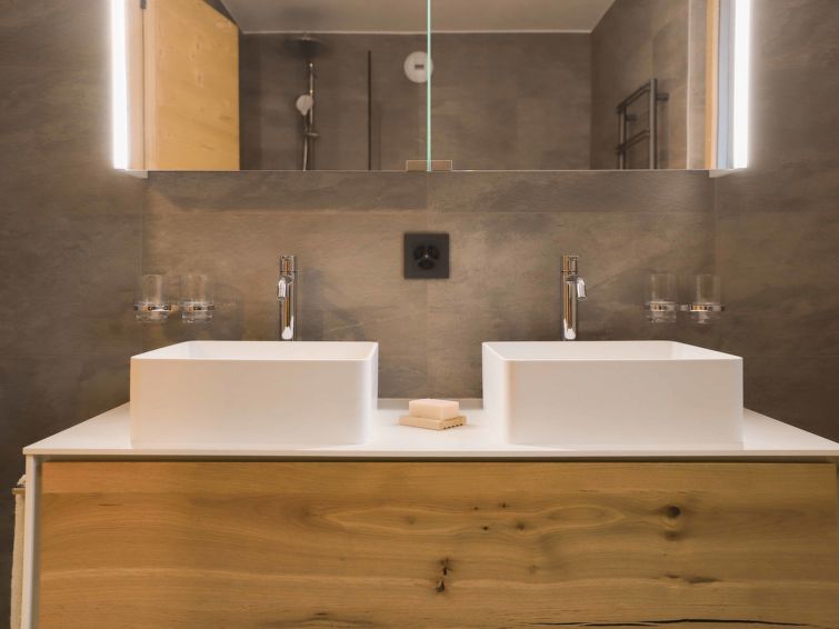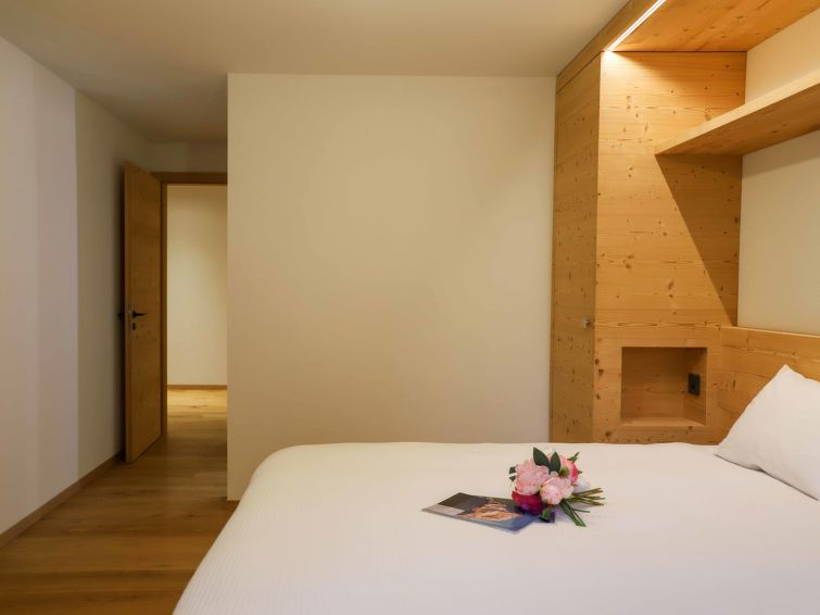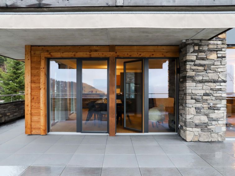 "Hédonia A7", 4-Zimmer-Wohnung 150 m2 im 1. Stock, Südlage. Geräumig, modern und geschmackvoll eingerichtet: Wohn-/Esszimmer mit offenem Kamin, Esstisch und TV (Flachbildschirm). Ausgang zum Balkon, Richtung Süden und Richtung Westen. 1 Zimmer mit 1 franz. Bett (1 x 180 cm), Dusche/WC und Doppelwaschbecken. Ausgang zum Balkon, Richtung Westen. 1 Zimmer mit 1 franz. Bett (1 x 160 cm), Dusche/WC. Ausgang zum Balkon, Richtung Westen. 1 Zimmer mit 2 Betten (90 cm), Bad/WC. Ausgang zum Balkon, Richtung Westen. Grosse, offene Küche (Backofen, Geschirrspüler, 4 Induktionskochplatten, Tiefkühler). Sep. WC. Balkon 52 m2, Südlage und Westlage. Sehr schöne Sicht auf die Berge. Zur Verfügung: Waschmaschine, Wäschetrockner. Internet (Wireless LAN, gratis). Garage Nr. 12. Bitte beachten: Nichtraucher-Unterkunft.