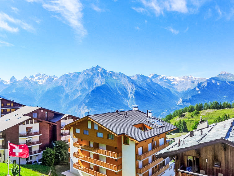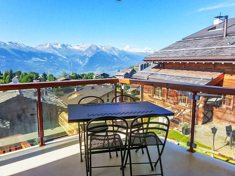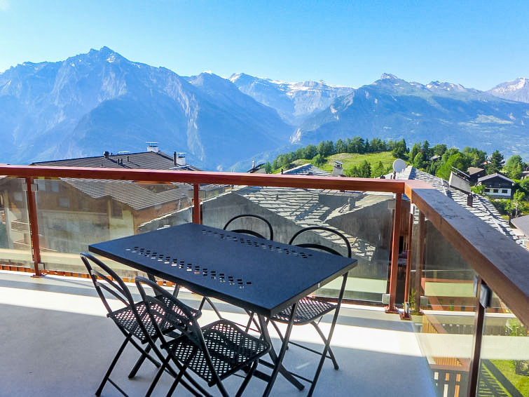 "Domaine des Reines B4", 4-Zimmer-Wohnung 97 m2 im 2. Stock. Geräumig, komfortabel eingerichtet: grosses Wohn-/Esszimmer mit Panoramafenster mit Kabel-TV und DVD. Ausgang zum Balkon. 1 grosses Zimmer mit 1 franz. Bett (180 cm, Länge 200 cm), Dusche/WC. Ausgang zum Balkon. 1 Zimmer mit 1 franz. Bett (160 cm, Länge 200 cm). 1 kleines Zimmer mit 2 Betten (90 cm, Länge 190 cm). Offene Küche (Backofen, Geschirrspüler, 4 Glaskeramikplatten, Toaster, Wasserkocher, elektrische Kaffeemaschine, Kapseln für die Kaffeemaschine (Nespresso) extra, Racletteofen, Fondue Set (Chinoise, Käse)) mit offenem Kamin. Bad/WC. Fussbodenheizung. Grosser Balkon 25 m2, Nordlage und Ostlage. Balkonmöbel. Sehr schöne Sicht auf die Berge und das Tal. Zur Verfügung: Babybett, Haartrockner. Internet (Wireless LAN, gratis). Garage Nr. B4, Höhe 200 cm, Breite 240 cm. Bitte beachten: Nichtraucher-Unterkunft, Nichtraucher-Haus. Jugendgruppe nur auf Anfrage.