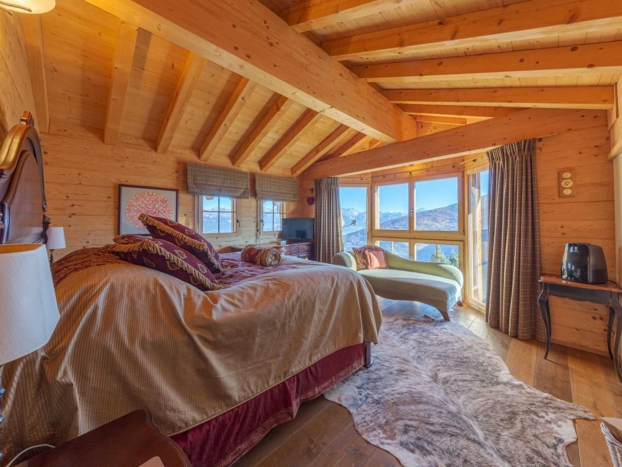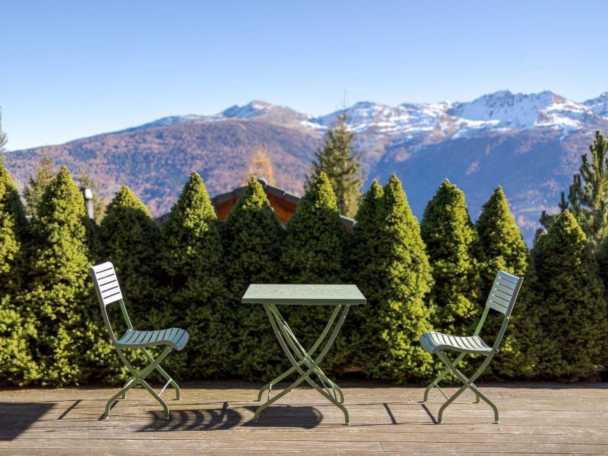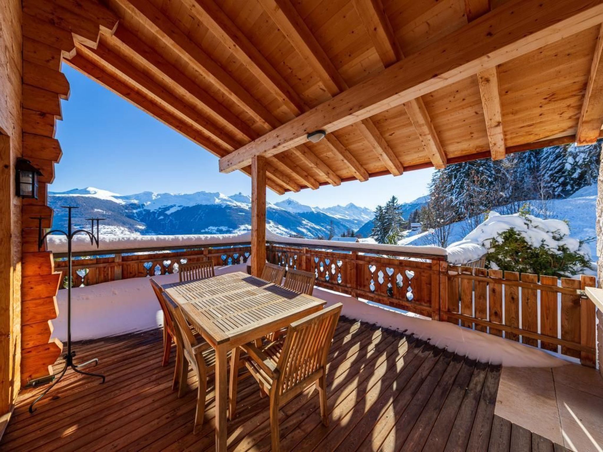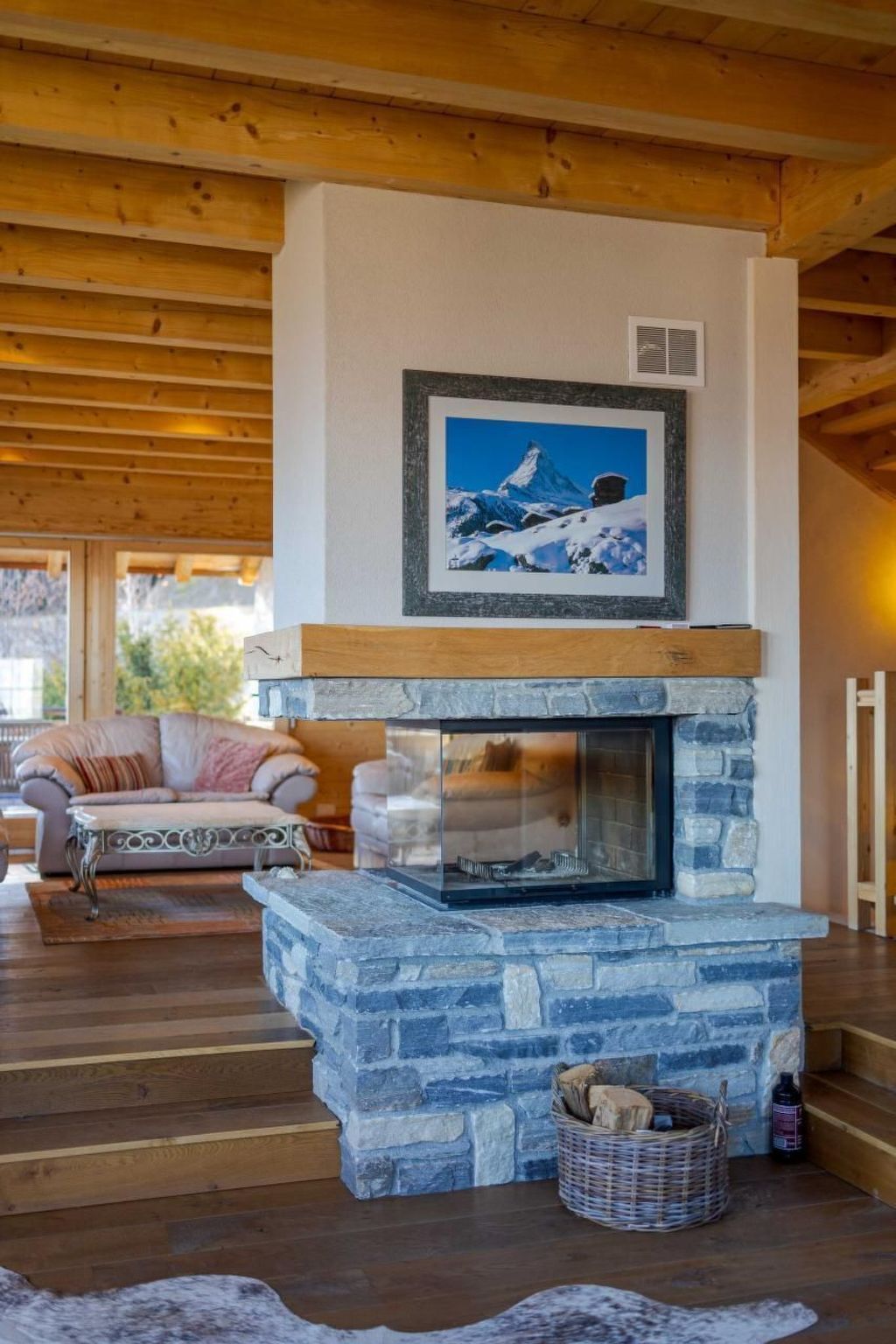 Es wurde in einer ruhigen Umgebung gebaut und schmiegt sich an den Berg mit einem Wald auf der Rückseite und einem atemberaubenden Panoramablick über das Val d'Hérens und das Rhonetal bis hin zu den Berner Alpen auf der Vorderseite. Beobachten Sie, wie die Sonne oder der Mond hinter den Bergen aufgeht oder untergeht und dabei vier 4000er-Gipfel, darunter das Matterhorn und die Dent Blanche, beleuchtet.