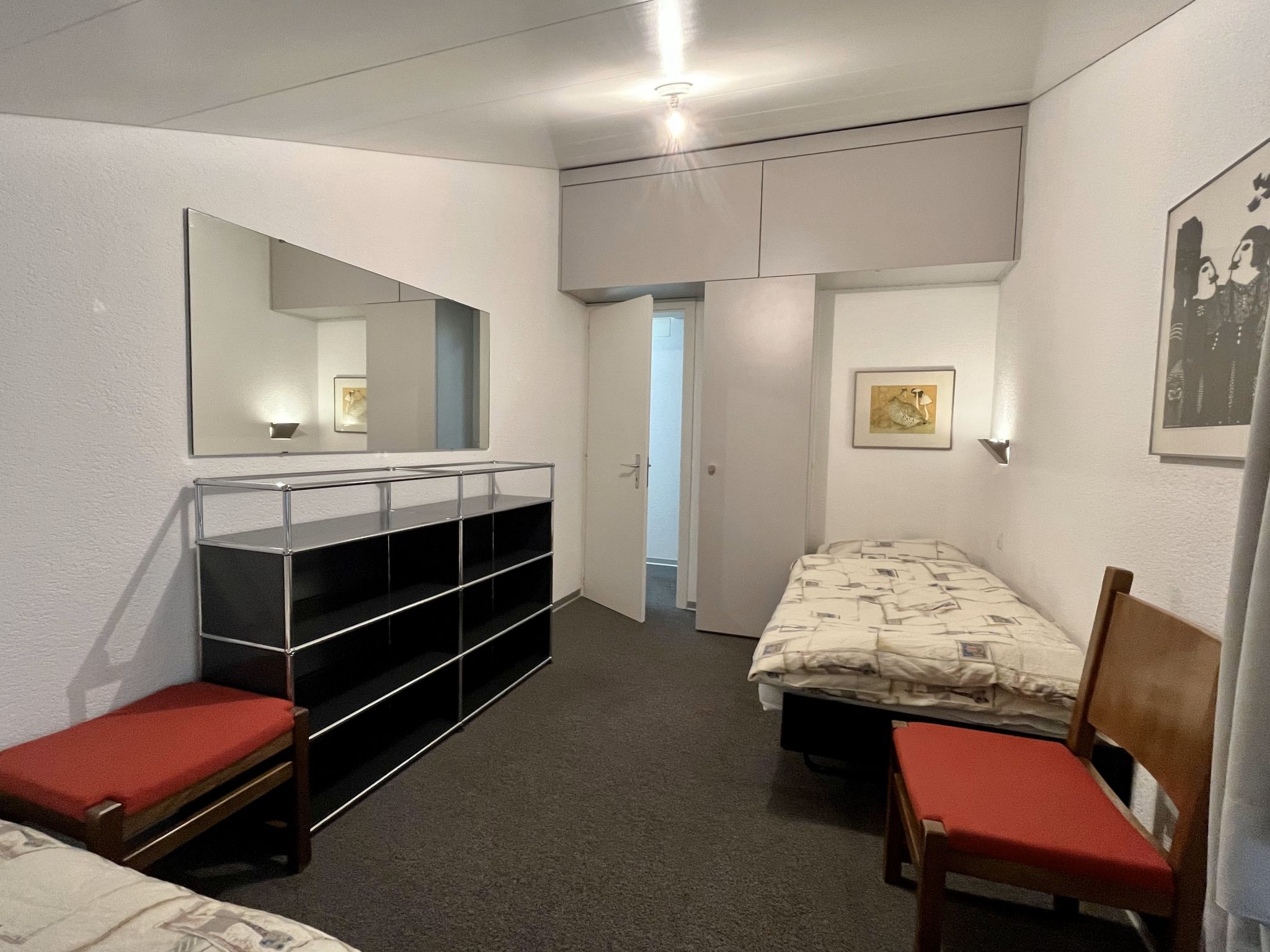 "Ringstrasse Apt 421", 2-Zimmer-Wohnung 68 m2 im 4. Stock. Komfortabel und modern eingerichtet: Wohn-/Esszimmer mit 2 Wandschrankbetten (90 cm, Länge 200 cm), Kabel-TV (Flachbildschirm), Stereoanlage. Ausgang zum Balkon. 1 Zimmer mit 1 Bett (90 cm, Länge 200 cm), 1 franz. Bett (140 cm, Länge 200 cm). Küche (Backofen, Geschirrspüler, 4 Glaskeramikplatten, elektrische Kaffeemaschine, Kapseln für die Kaffeemaschine (Nespresso) extra). Bad/WC, Dusche/WC. Balkon. Terrassenmöbel. Schöne Sicht auf die Berge, das Tal und die Landschaft. Zur Verfügung: Internet (WLAN, gratis). Bitte beachten: Nichtraucher-Unterkunft.