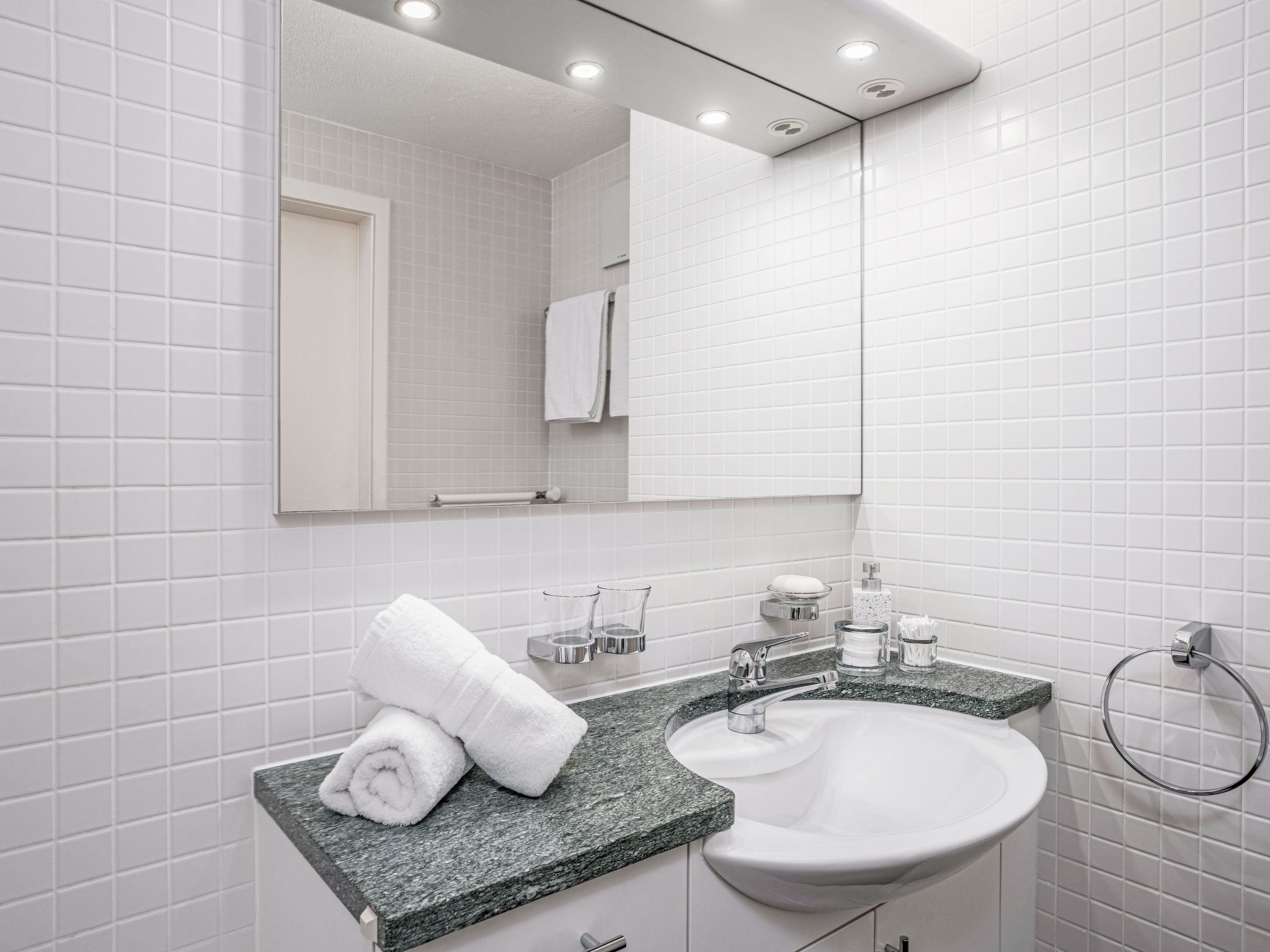 "Double Room Modern", 1-Zimmer-Wohnung 35 m2 im 2. Stock, Südlage. Renoviert: Wohn-/Esszimmer mit 1 Doppelbett (1 x 160 cm, Länge 200 cm), Sat-TV und Radio. Kochnische (Backofen, elektrische Kaffeemaschine, Kapseln für die Kaffeemaschine (Nespresso) extra). Bad/WC. Ölheizung. Balkon, Südlage. Herrliche Sicht auf den See, die Berge und die Ortschaft. Zur Verfügung: Internet (Wireless LAN, gratis). Bitte beachten: Nichtraucher-Unterkunft. Maximal 1 Haustier/Hund erlaubt. NL-00004955