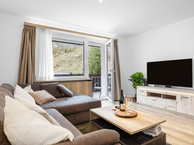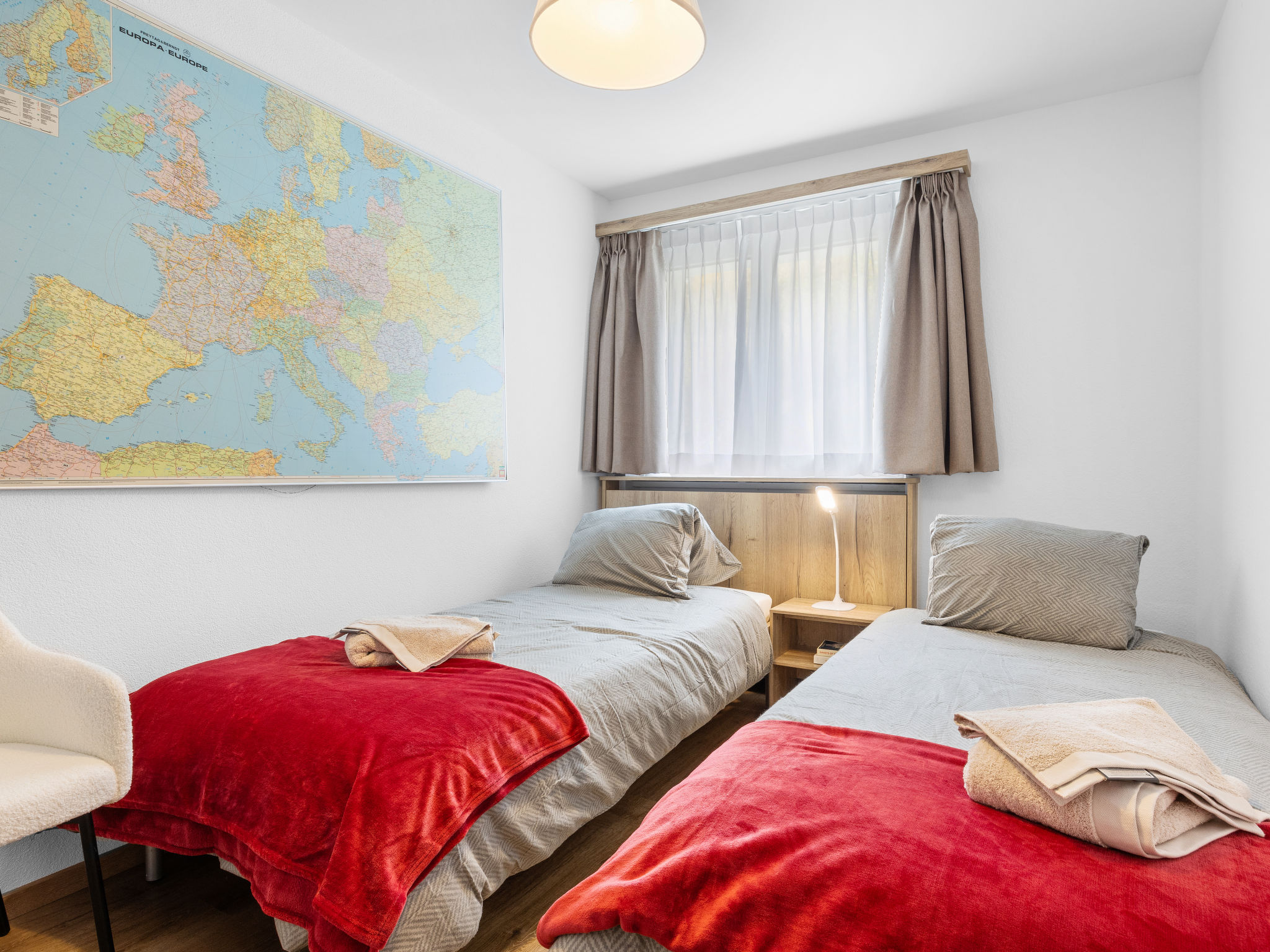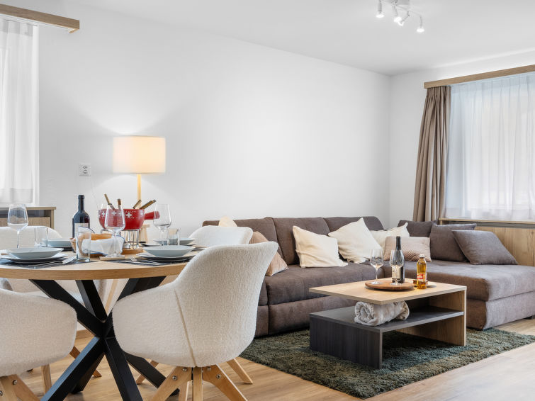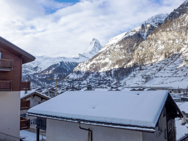 3-Zimmer-Wohnung 72 m2 im 1. Stock, Südlage. Hell, schön und gemütlich eingerichtet: Wohnzimmer mit Kabel-TV. Ausgang zum Balkon, Richtung Süden. 1 Zimmer mit 2 Betten (90 cm, Länge 200 cm). 1 Zimmer mit 1 Doppelbett (1 x 160 cm, Länge 200 cm). Küche (Backofen, Geschirrspüler, 4 Glaskeramikplatten, Toaster, Wasserkocher, Mikrowelle, Tiefkühler, elektrische Kaffeemaschine). Dusche/WC. Heizung. Balkon, Südlage. Balkonmöbel. Schöne Sicht auf das Matterhorn. Zur Verfügung: Internet (Wireless LAN, gratis). Bitte beachten: Nichtraucher-Unterkunft.