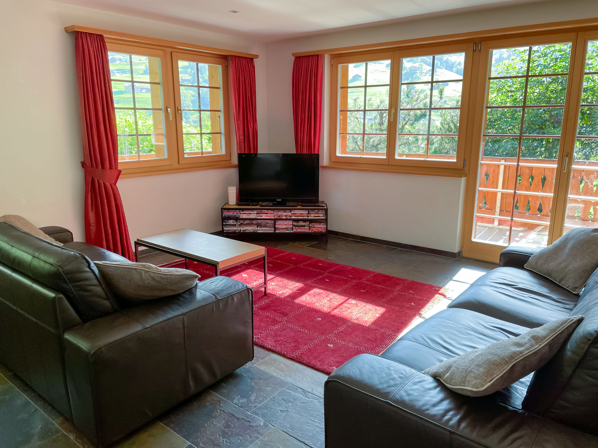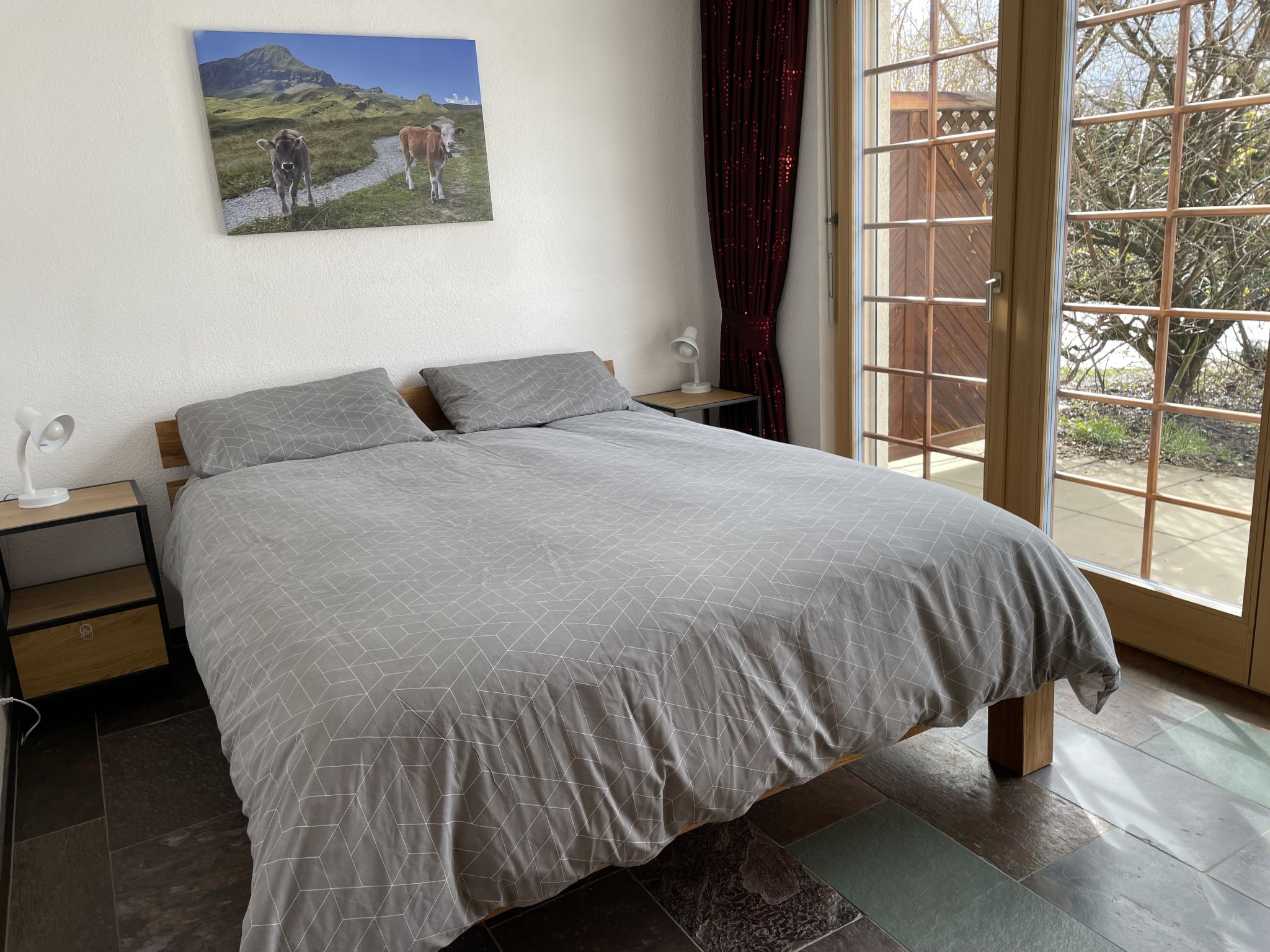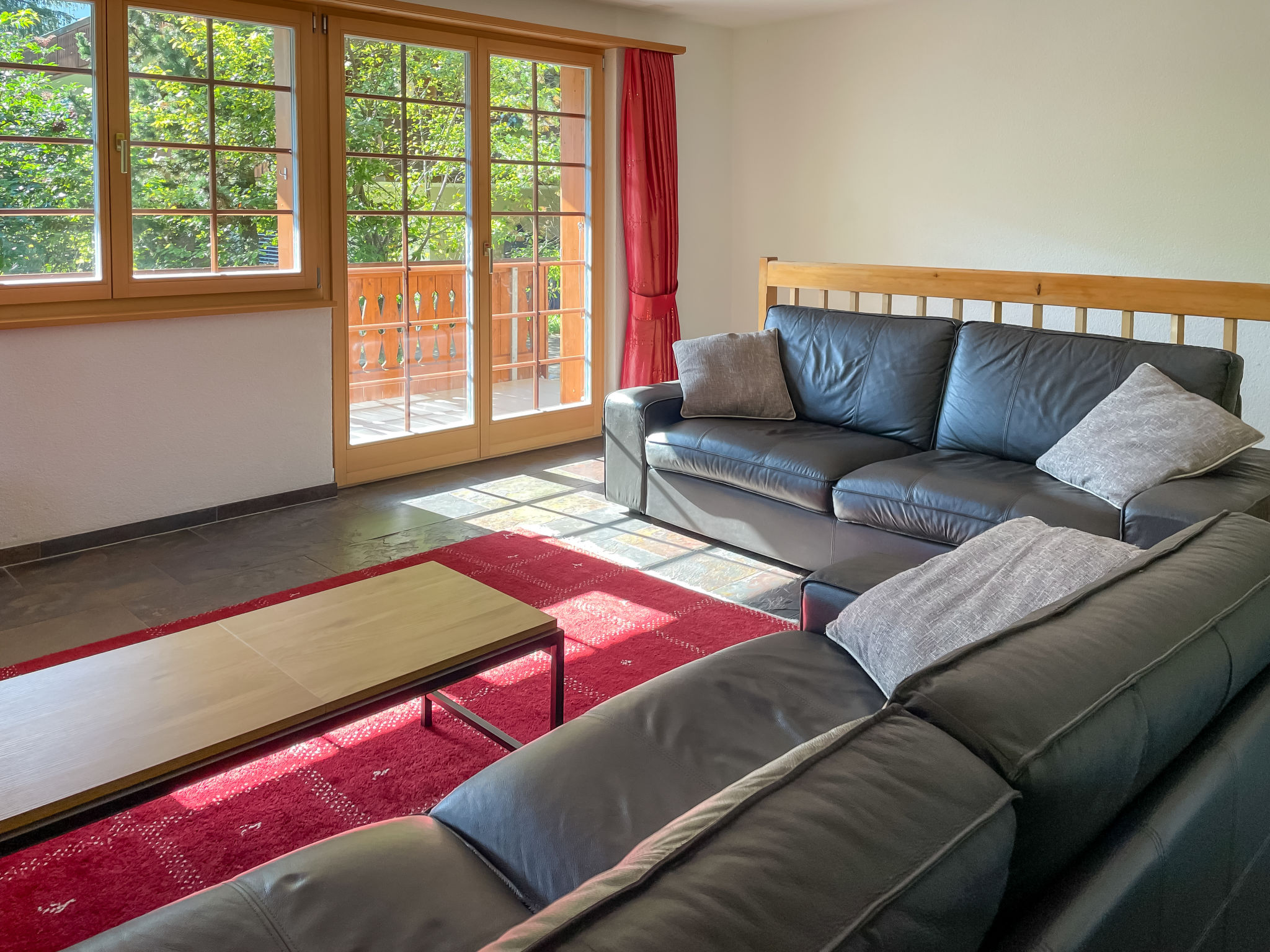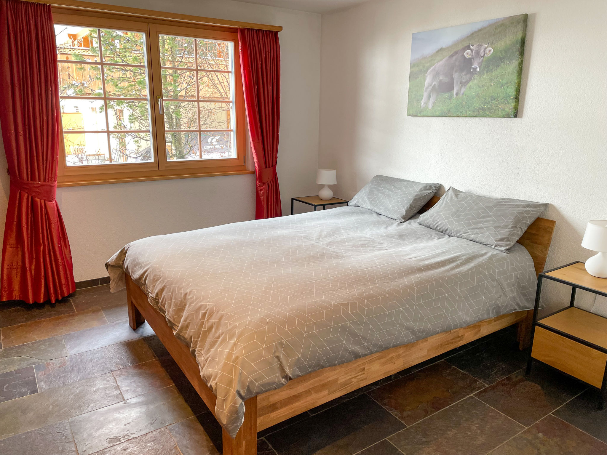 4-Zimmer-Wohnung 113 m2 auf 2 Stockwerken, im Erdgeschoss, Südlage. Modern und gemütlich eingerichtet: Wohn-/Esszimmer mit Kabel-TV (Flachbildschirm), Radio, CD und DVD. Ausgang zum Balkon, Richtung Süden und Richtung Westen. 1 Zimmer mit 1 franz. Bett (160 cm, Länge 200 cm). Offene Küche (Backofen, Geschirrspüler, 4 Glaskeramikplatten, Toaster, Wasserkocher, Mikrowelle, elektrische Kaffeemaschine, Kapseln für die Kaffeemaschine (Nespresso) extra, Racletteofen, Fondue Set (Käse)). Dusche/WC. Bodenheizung. Unteres Geschoss: 1 Zimmer mit 2 Betten (90 cm, Länge 200 cm). Ausgang zur Terrasse, Richtung Süden und Richtung Westen. 1 Zimmer mit 1 franz. Bett (160 cm, Länge 200 cm). Ausgang zur Terrasse, Richtung Süden und Richtung Westen. Bad/WC. Parkettboden, Natursteinboden. Balkon, Südlage und Westlage, Südlage und Westlage, Rasen. Balkonmöbel. Herrliche Sicht auf die Berge und Eigernordwand. Zur Verfügung: Waschmaschine, Wäschetrockner, Haartrockner. Internet (Wireless LAN, gratis). Parkplatz Nr. 7 Bedford (überdacht, 1 Auto) beim Haus. Bitte beachten: Nichtraucher-Unterkunft. Feuerlöscher.