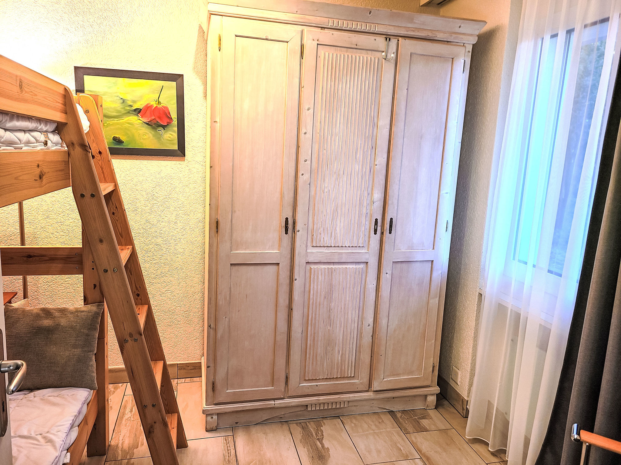 "Collina Verde B", 3-Zimmer-Wohnung 68 m2, im Erdgeschoss. Hell, schön und modern eingerichtet: offenes grosses Wohn-/Esszimmer mit Schwedenofen, Kabel-TV, Flachbildschirm, Radio, DVD, E-Heizung und Boiler. Ausgang zum Gartensitzplatz. 1 Kinderzimmer mit 1 x 2 Etagenbetten (90 cm, Länge 200 cm). 1 Doppelzimmer mit 1 Doppelbett (2 x 90 cm, Länge 200 cm), Kabel-TV und Flachbildschirm. Offene Küche (Backofen, 4 Glaskeramikplatten, elektrische Kaffeemaschine, Kapseln für die Kaffeemaschine (Nespresso mitbringen)). Dusche/WC. Gartensitzplatz 20 m2. Terrassenmöbel, Liegestühle (2). Eingeschränkte Sicht auf die Berge und die Landschaft. Zur Verfügung: Internet (WLAN, gratis). Garage Nr. 108. Bitte beachten: Nichtraucher-Unterkunft. Maximal 1 Haustier/Hund erlaubt. 'Nespresso Kaffeemaschine - Kapseln müssen mitgebracht werden. NL-00004786