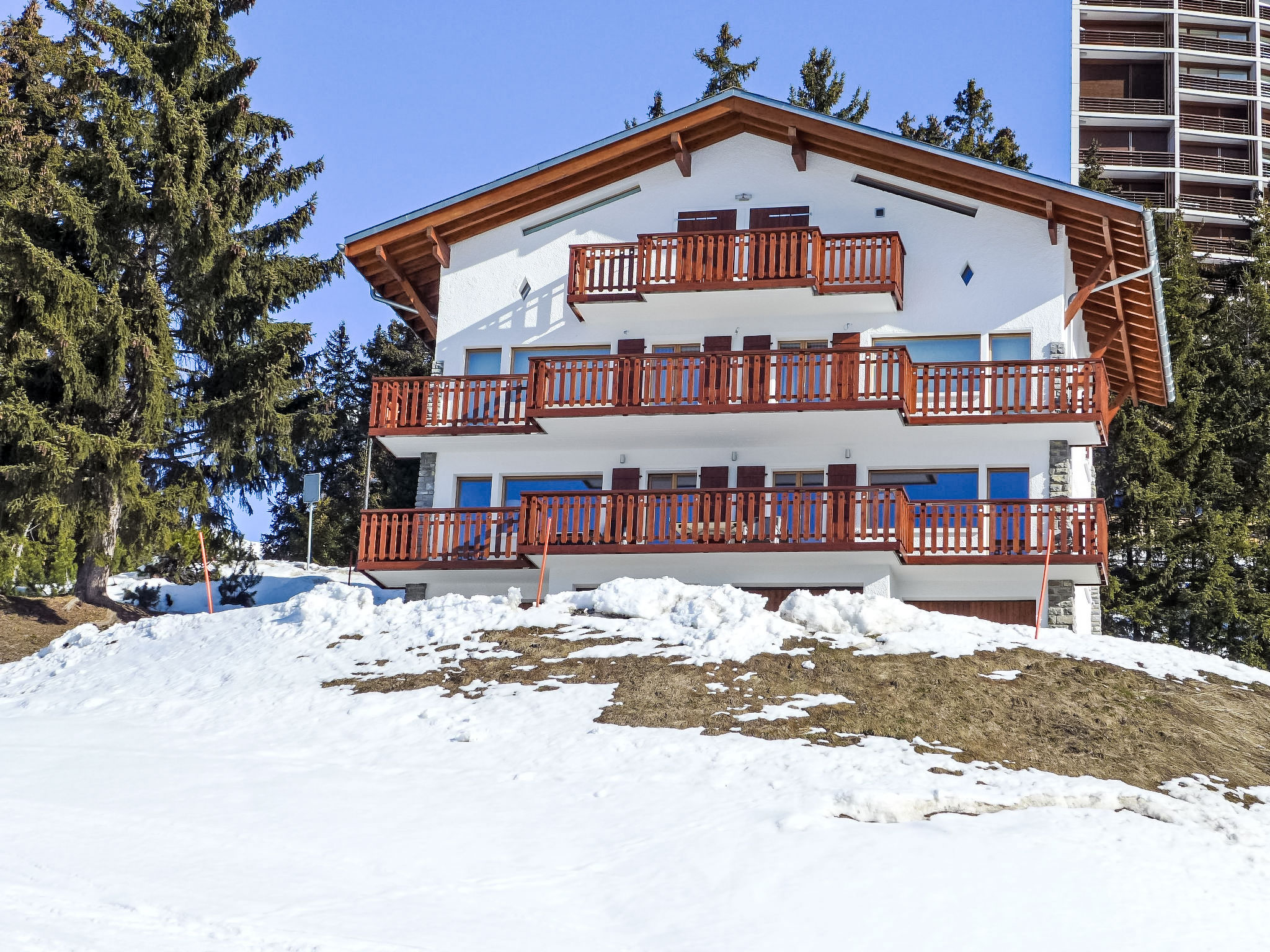 Komfortables Dreifamilienhaus "Les Aiguilles Vertes", auf 4 Stockwerken, Baujahr 1962, renoviert im Jahre 2015. Im Ortsteil Vermala, 1.7 km vom Zentrum von Montana, ruhige, erhöhte Lage, 1.5 km vom See, 1.1 km vom Skigebiet, Richtung Südwesten. Zur Mitbenutzung: naturbelassenes Grundstück 1'273 m2. Im Hause: Skiraum, Zentralheizung, Waschmaschine, Wäschetrockner (zur Mitbenutzung), Skischuhtrockner. Zufahrt (Rampe). Einzelgarage. Einkaufsgeschäft 1.7 km, Supermarkt 1.9 km, Restaurant 1.5 km, Bäckerei 2 km, Bushaltestelle "Vermala Centre" 200 m, Bahnstation "Funiculaire Montana Gare" 2.1 km, Badesee "Moubra" 2.7 km, See Grenon 1.5 km. Golfplatz (18 Loch) 2.8 km, Skisportanlagen 1.1 km. Bekannte Skigebiete sind gut erreichbar: Etang Long 2.9 km. Bitte beachten: Gratis Skibus. Weitere Unterkünfte sind buchbar.