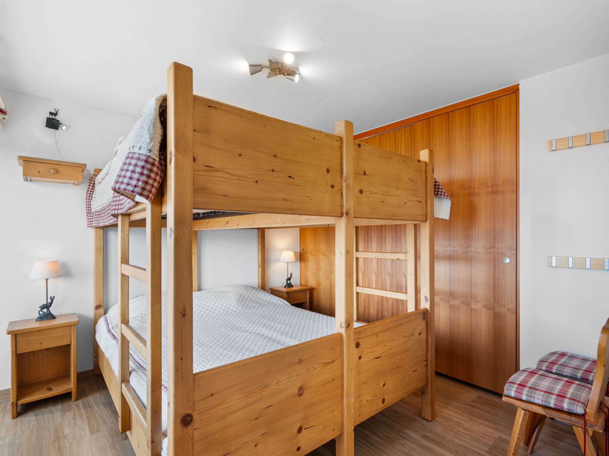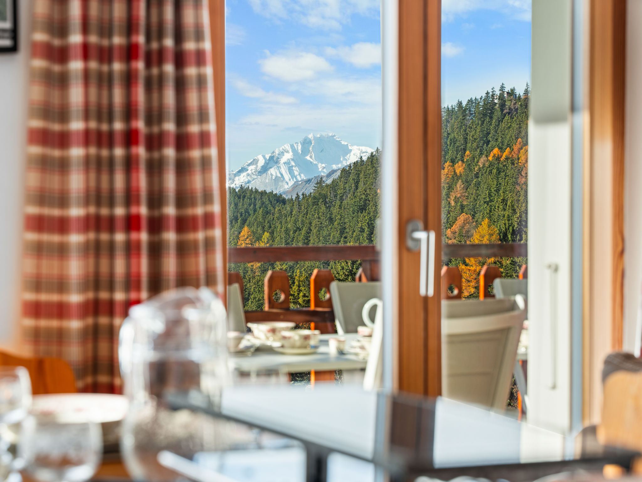 "Les Aiguilles Vertes Rez supérieur", 4-Zimmer-Wohnung 70 m2 im 1. Stock. Objekt geeignet für 6 Erwachsene + 2 Kinder. Komfortabel und modern eingerichtet: Wohn-/Esszimmer mit Kabel-TV. Ausgang zum Balkon, Richtung Süden und Richtung Westen. 1 Zimmer mit 1 Doppelbett (2 x 90 cm, Länge 200 cm), Bad/WC. 1 Zimmer mit 1 Doppelbett (2 x 90 cm, Länge 200 cm). 1 Zimmer mit 2 x 2 Etagenbetten (80 cm, Länge 200 cm). Ausgang zum Balkon. Offene Küche (Backofen, Geschirrspüler, 4 Induktionskochplatten, Toaster, Wasserkocher, Tiefkühler, elektrische Kaffeemaschine, Kapseln für die Kaffeemaschine (Nespresso) extra, Racletteofen, Kombinationsmikrowelle, Fondue Set (Chinoise, Käse)). Dusche/WC. Grosser Balkon 20 m2, Südwestlage. Balkonmöbel, Liegestühle (2). Sehr schöne Sicht auf die Berge und die Landschaft. Zur Verfügung: Kinderhochstuhl, Babybett, Haartrockner. Internet (WLAN, gratis). Garage Nr. 4, Höhe 200 cm, Breite 220 cm. Bitte beachten: Nichtraucher-Unterkunft. 1 Haustier/Hund erlaubt. Faltbares Babybett ohne Bettwäsche und ohne Decke.