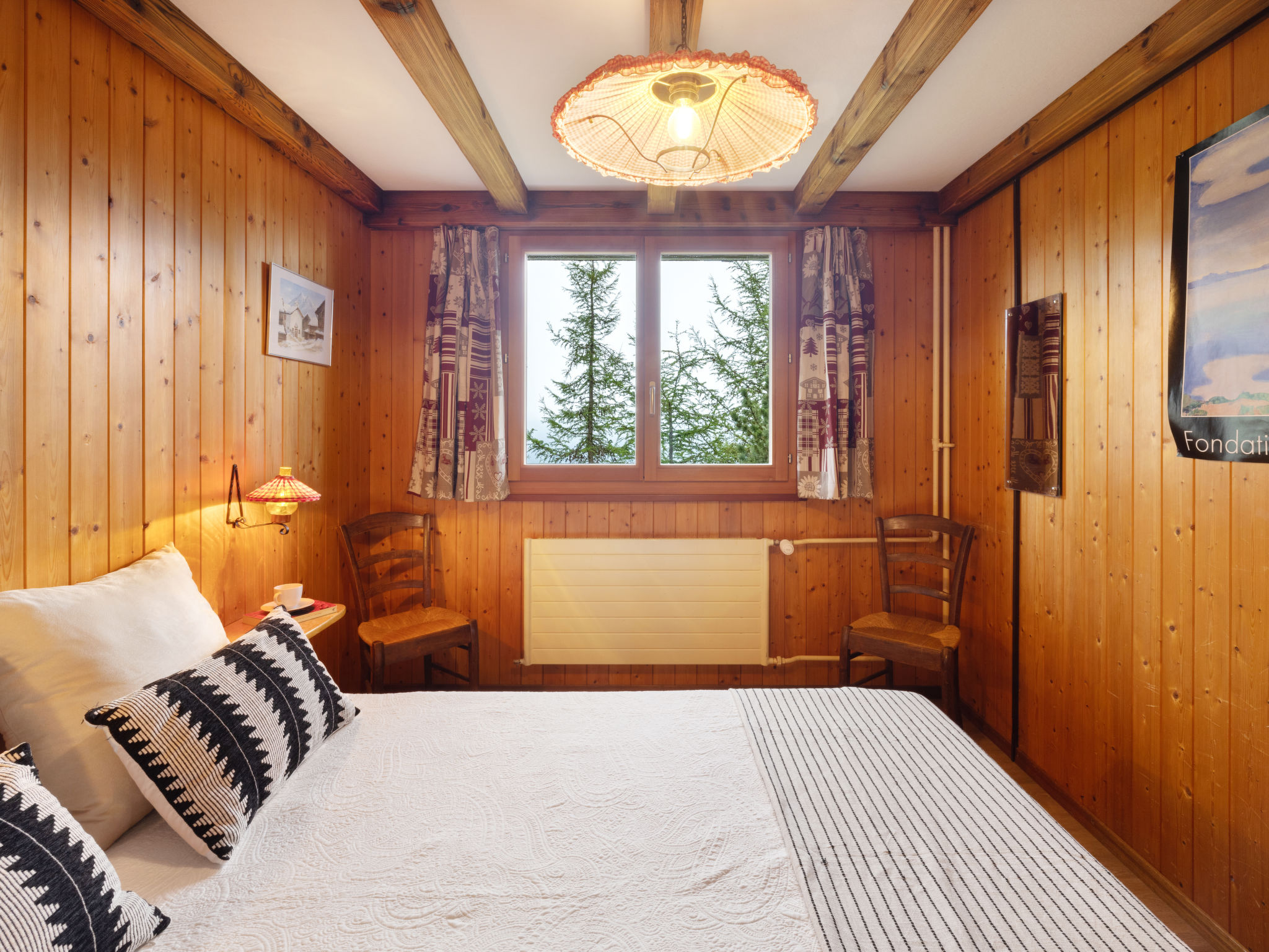 "Haimavati", 3-Zimmer-Wohnung 60 m2, im Erdgeschoss, Südlage. Teilweise renoviert im Jahre 2019, zweckmässig und schön eingerichtet: Wohn-/Esszimmer. Ausgang zum Garten. 1 Zimmer mit 1 franz. Bett (1 x 160 cm, Länge 200 cm). 1 Zimmer mit 2 Betten (90 cm, Länge 200 cm). Kochnische (Backofen, 3 Glaskeramikplatten, Mikrowelle, Fondue Set (Käse)). Bad. Kleiner Garten. Terrassenmöbel, Gartengrill, Wintergarten. Panoramasicht auf die Berge und das Tal. Zur Verfügung: Internet (Wireless LAN, gratis). Bitte beachten: Nichtraucher-Unterkunft.