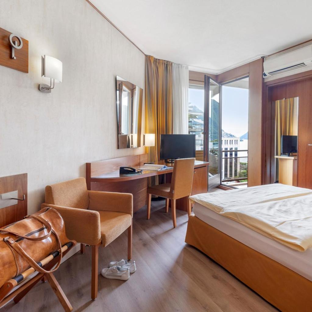 Das familiengeführte Hotel Delfino verfügt über eine privilegierte Lage nahe dem Seeufer und unweit der Fußgängerzone, die in das Herz der Stadt von Lugano führt. Parkplätze in einer Garage stehen Ihnen vor Ort gegen Aufpreis zur Verfügung.