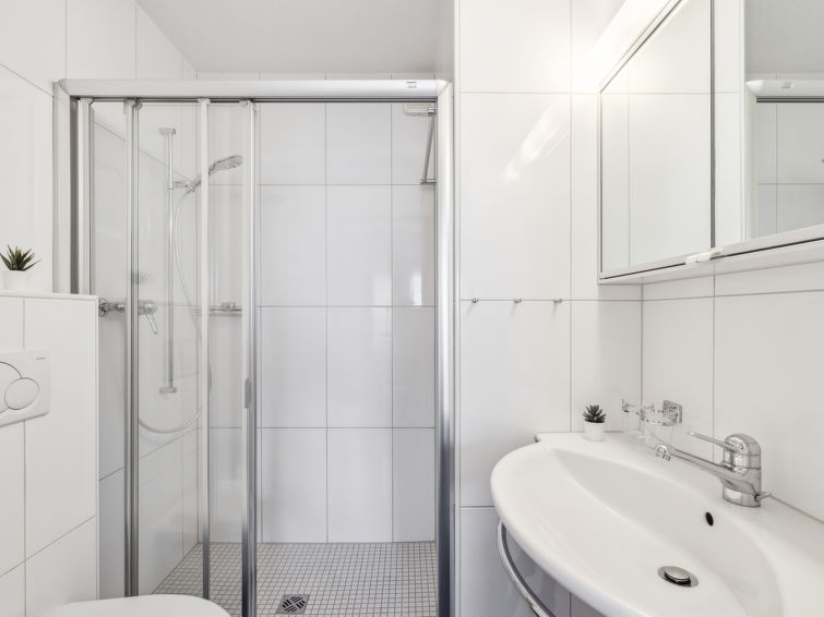1-Zimmer-Wohnung 28 m2, im Erdgeschoss. Gemütlich eingerichtet: Wohn-/Esszimmer mit 2 Wandschrankbetten und Sat-TV (Flachbildschirm), Radio. Ausgang zum Gartensitzplatz. Kochnische (Geschirrspüler, 4 Glaskeramikplatten). Dusche/WC. Gartensitzplatz, Ostlage. Schöne Sicht auf die Berge, die Landschaft und die Ortschaft. Zur Verfügung: Internet (Wireless LAN, gratis). Bitte beachten: Nichtraucher-Unterkunft.