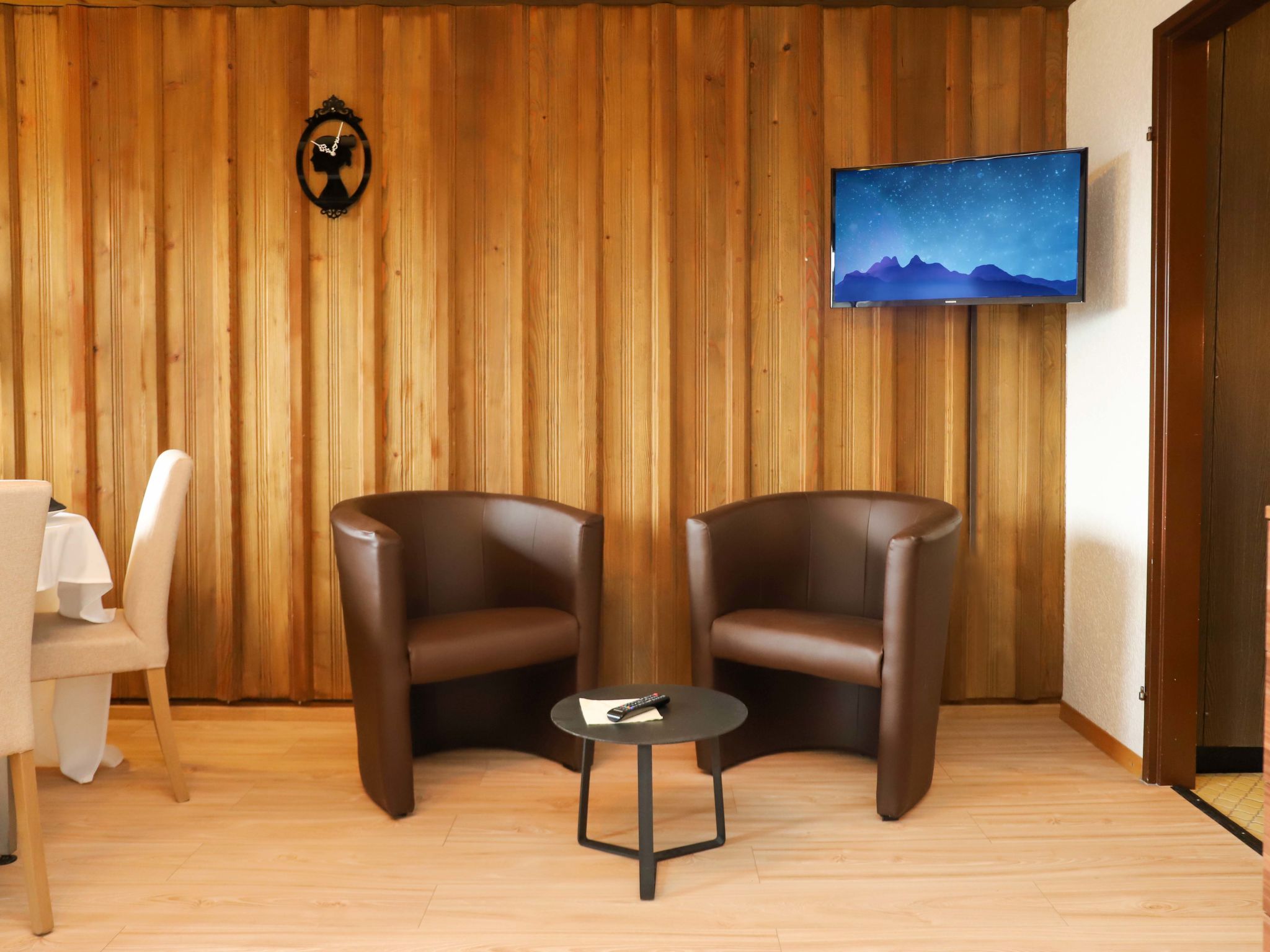 "Gamat 30", 1-Zimmer-Wohnung 40 m2 im 2. Stock, Südlage. Zweckmässig eingerichtet: Wohn-/Schlafzimmer mit 1 franz. Bett (160 cm, Länge 200 cm), TV (Flachbildschirm). Ausgang zum Balkon. Küche im Eingang (2 Kochplatten, Mini-Backofen, Toaster, Wasserkocher, Mikrowelle, elektrische Kaffeemaschine, Racletteofen, Fondue Set (Käse)). Bad/WC. Balkon 12 m2, Südlage. Schöne Sicht auf die Berge. Zur Verfügung: Haartrockner. Internet (Wireless LAN, gratis). Garage Nr. 25. Bitte beachten: Kühlschrank ohne Gefrierfach.