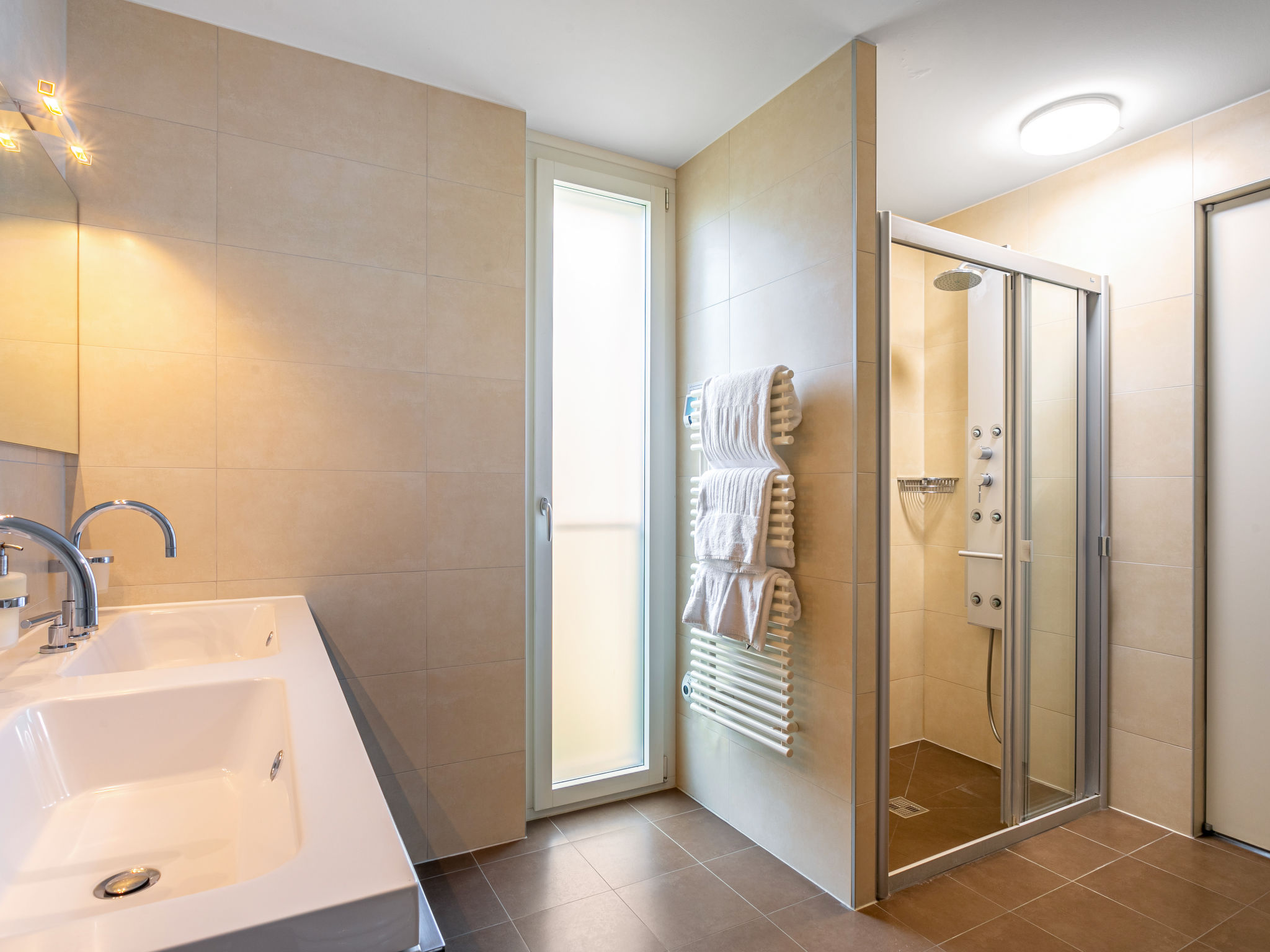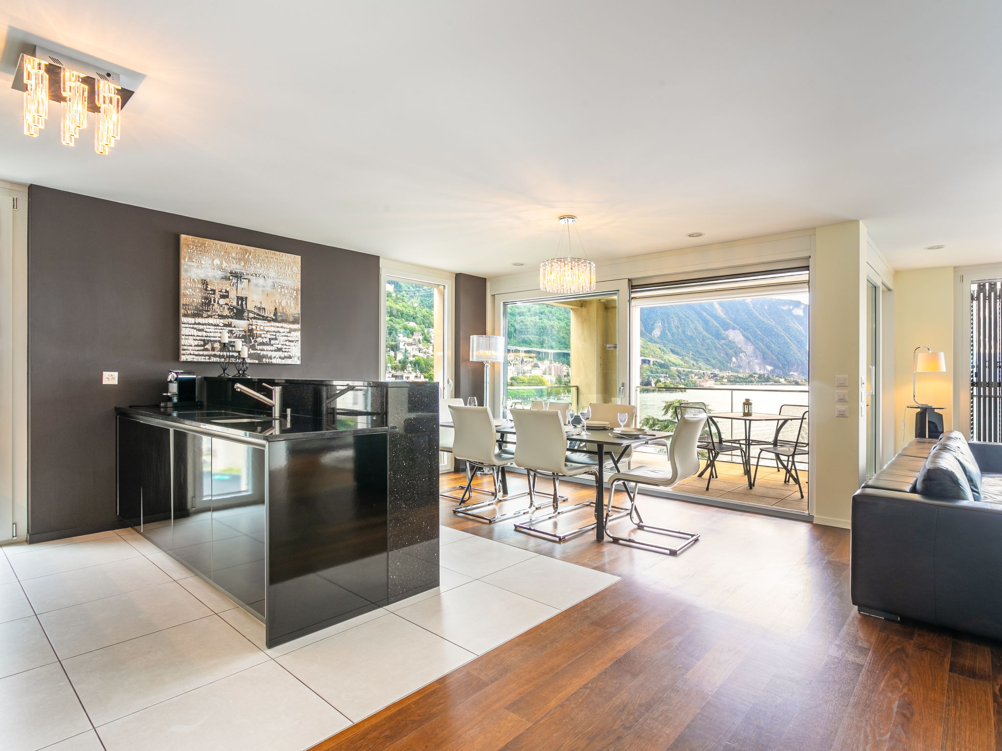 "Le Belvédère D2.6", 3-Zimmer-Wohnung 120 m2 im 2. Stock. Hell, komfortabel und luxuriös eingerichtet: Wohn-/Esszimmer mit Panoramafenster mit offenem Kamin (nur Deko), Kabel-TV, Internationale TV-Sender und elektrischem Rollladen. Ausgang zum Balkon. 1 Zimmer mit 1 Doppelbett (160 cm, Länge 200 cm), Bad/Dusche/WC, Sprudelbad, TV und elektrischem Rollladen. 1 Zimmer mit 1 Doppelbett (160 cm, Länge 200 cm), Kabel-TV. Offene Küche (Backofen, Geschirrspüler, 4 Glaskeramikplatten, Toaster, Wasserkocher, Mikrowelle, elektrische Kaffeemaschine, Kapseln für die Kaffeemaschine (Nespresso) extra). Dusche/WC, sep. WC. G-Heizung, Bodenheizung. Balkon 14 m2. Balkonmöbel. Herrliche Panoramasicht auf den See, die Berge und die Landschaft. Zur Verfügung: Waschmaschine, Wäschetrockner, Bügeleisen. Internet (WLAN, gratis). Garage Nr. 144. Bitte beachten: Nichtraucher-Unterkunft.