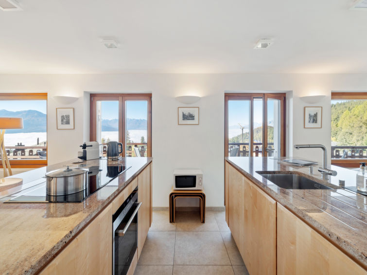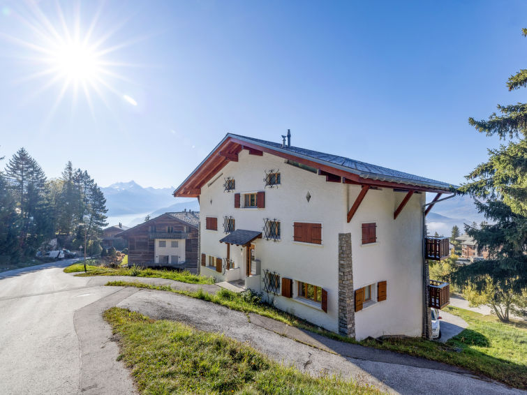 Komfortables Dreifamilienhaus "Les Aiguilles Vertes", auf 4 Stockwerken, Baujahr 1962, renoviert im Jahre 2015. Im Ortsteil Vermala, 1.7 km vom Zentrum von Montana, ruhige, erhöhte Lage, 1.5 km vom See, 1.1 km vom Skigebiet, Richtung Südwesten. Zur Mitbenutzung: naturbelassenes Grundstück 1'273 m2. Im Hause: Skiraum, Zentralheizung, Waschmaschine, Wäschetrockner (zur Mitbenutzung), Skischuhtrockner. Zufahrt (Rampe). Einzelgarage. Einkaufsgeschäft 1.7 km, Supermarkt 1.9 km, Restaurant 1.5 km, Bäckerei 2 km, Bushaltestelle "Vermala Centre" 200 m, Bahnstation "Funiculaire Montana Gare" 2.1 km, Badesee "Moubra" 2.7 km, See Grenon 1.5 km. Golfplatz (18 Loch) 2.8 km, Skisportanlagen 1.1 km. Bekannte Skigebiete sind gut erreichbar: Etang Long 2.9 km. Bitte beachten: Gratis Skibus.