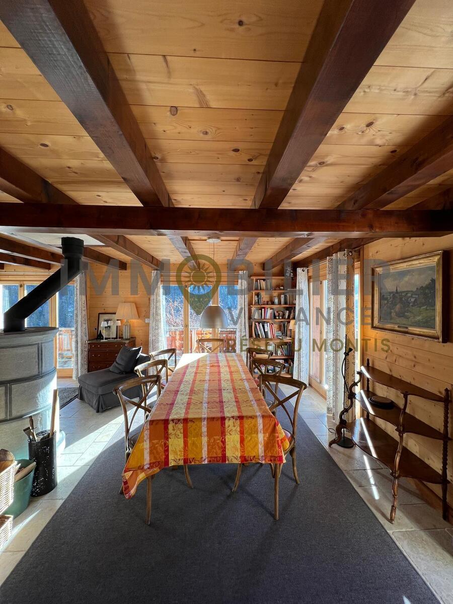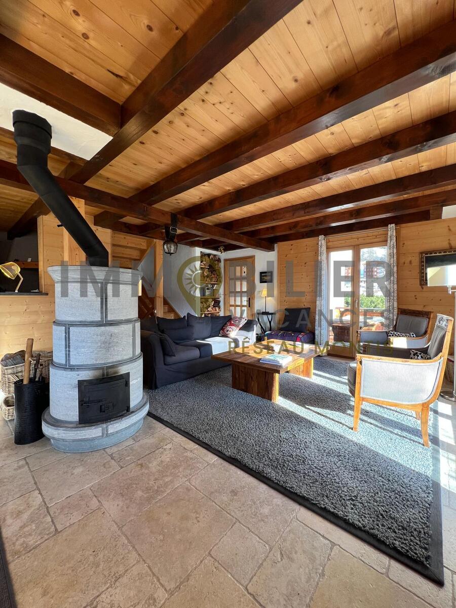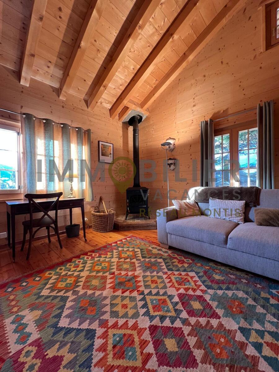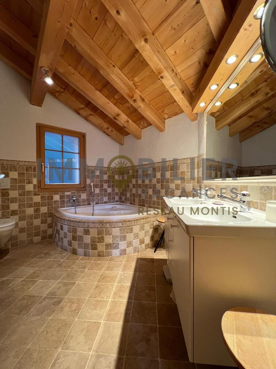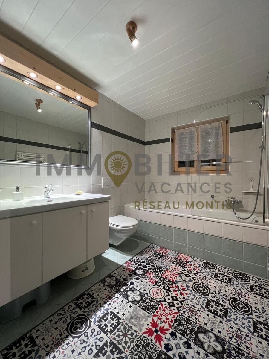 Wunderschönes Chalet mit freiem Blick für 8 Personen – 4 Schlafzimmer – 3 Badezimmer – Garage für 2 Autos.Shuttlebus-Haltestelle in ca. 150 m Entfernung zum Skigebiet.Der Zugang zur Unterkunft erfolgt über eine Treppe mit 65 Stufen von der Garage aus.Aufteilung der Räume:Im Erdgeschoss:Eingangsbereich mit separater Garderobe, Gästetoilette mit Dusche und Waschbecken.Großes, helles Wohnzimmer mit Specksteinofen (Holz steht zur Verfügung).Zum Wohnzimmer hin offene Küche (mit Geschirrspüler, Nespresso- und Filterkaffeemaschine, Mikrowelle und Backofen, Wasserkocher, Toaster und Schneidemaschine).Terrasse mit Aussicht und großem Balkon (+ Grill)Im 1. Stock:Wohnzimmer mit TV + WLAN, Ofen und Schreibtisch1 Elternschlafzimmer mit Badezimmer (Eckbadewanne, Doppelwaschbecken und Toilette) + Ankleidezimmer und Schreibtisch1 Schlafzimmer mit 2 nebeneinander stehenden Einzelbetten + KleiderschrankIm Untergeschoss:1 Badezimmer (mit Badewanne und WC)1 Waschküche (mit Waschmaschine und Trockner)2 Doppelzimmer mit mehreren SchränkenHaustiere sind nicht gestattet.