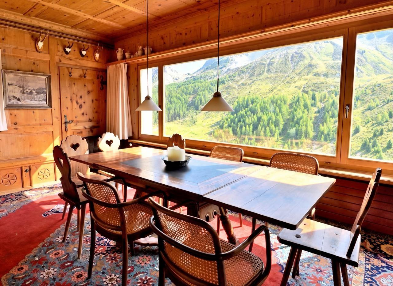Willkommen in einem der charmantesten und authentischsten Häuser in Arosa, im beliebten Innerarosa. Dieses Chalet verbindet echtes Schweizer Berggefühl mit Komfort – warm, gemütlich und authentisch zugleich. Schon beim Eintreten spürt man den besonderen Charakter des Hauses. Die durchgehende Holzvertäfelung schafft eine unvergleichliche Atmosphäre und bringt den alpinen Charme voll zur Geltung. Der grosszügige Wohn- und Essbereich begeistert mit einem traumhaften Panoramablick auf die Bergwelt. Vom Wohnzimmer aus gelangt man direkt nach draussen – perfekt, um die frische Bergluft jederzeit zu geniessen. Trotz aller Tradition ist das Haus technisch und funktional auf dem neuesten Stand: zeitlose Badezimmer und eine komplett ausgestattete Küche fügen sich harmonisch ins Gesamtbild ein. Insgesamt stehen 3 Schlafzimmer im Obergeschoss sowie 3 modernisierte Badezimmer zur Verfügung, davon zwei im Obergeschoss und eines im Erdgeschoss.