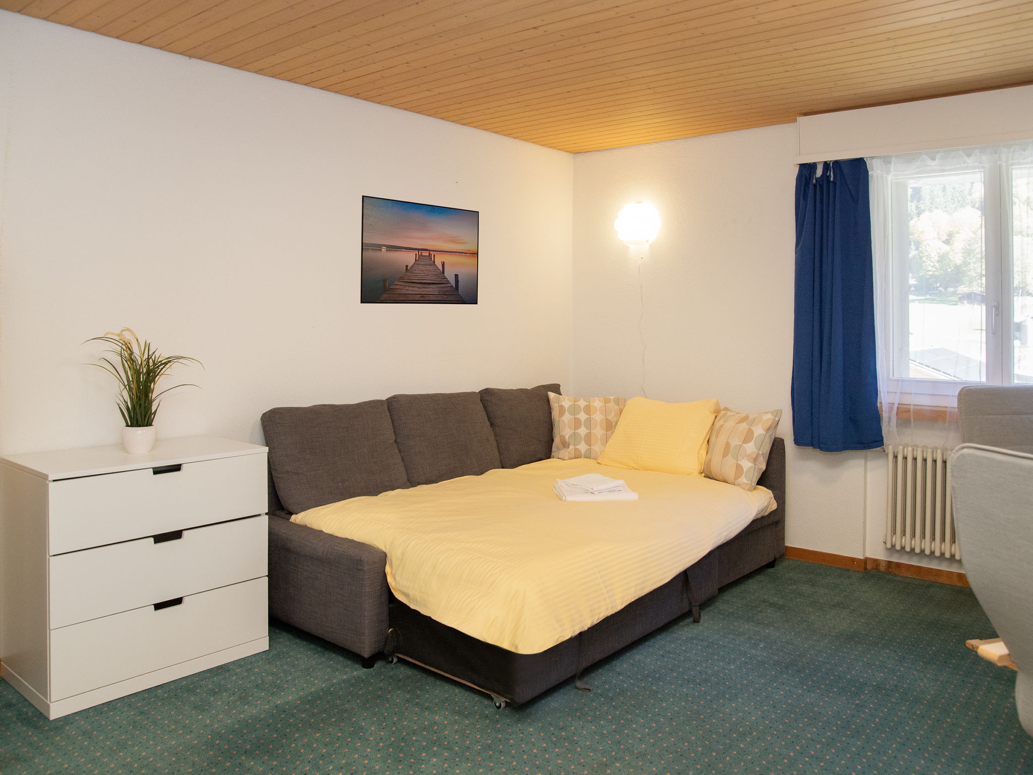"BeKb-Gebäude Apt 07", 2-Zimmer-Wohnung im Dachgeschoss. Gemütlich eingerichtet: Wohn-/Esszimmer mit 1 Diwanbett (140 cm, Länge 200 cm), Kabel-TV. 1 Zimmer mit 1 Bett (90 cm, Länge 190 cm), 1 Doppelbett (160 cm, Länge 190 cm). Küche (4 Kochplatten, Backofen, Geschirrspüler, Toaster, Wasserkocher, Racletteofen, Fondue Set (Käse)). Bad/WC. Teppichboden. Sehr schöne Sicht auf die Berge und die Ortschaft. Zur Verfügung: Haartrockner. Internet (WLAN, gratis). Bitte beachten: geeignet für Familien. Nichtraucher-Haus.