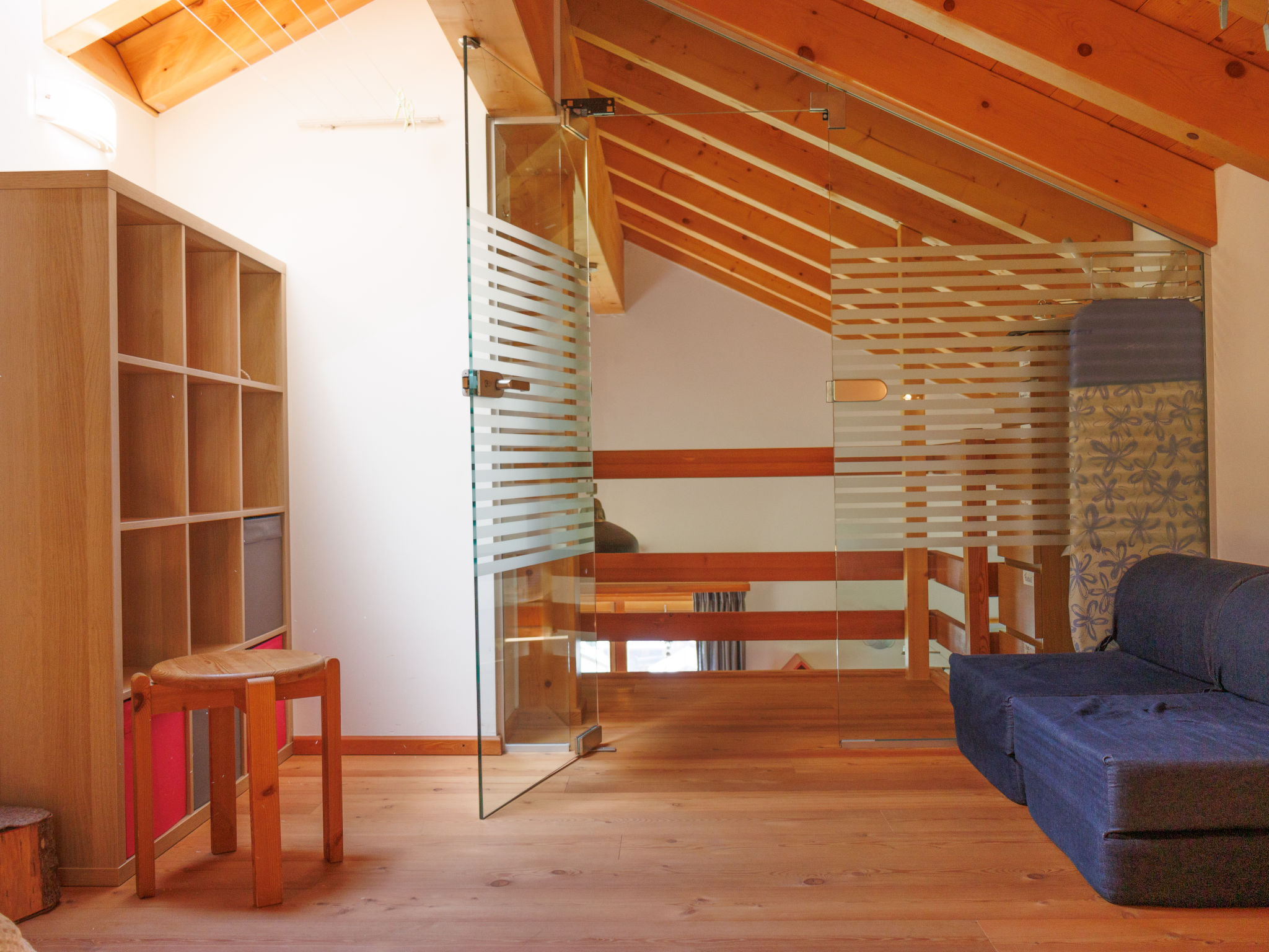 "Ryad C", 4-Zimmer-Wohnung 85 m2, im Obergeschoss, Südlage. Komfortabel und geschmackvoll eingerichtet: Wohn-/Esszimmer mit Schwedenofen, Kabel-TV und E-Heizung. Ausgang zum Balkon, Richtung Süden. 1 Zimmer mit 1 Doppelbett (2 x 90 cm, Länge 200 cm). 1 kleines Zimmer mit 1 Ausziehbett (2 Pers. 2 x 90 cm, Länge 200 cm). Offene Küche (Backofen, Geschirrspüler, 4 Glaskeramikplatten, Toaster, Wasserkocher, Mikrowelle, Tiefkühler, elektrische Kaffeemaschine, Kapseln für die Kaffeemaschine (Nespresso), Racletteofen, Fondue Set (Käse)). Bad/WC, sep. WC. Warmluftheizung. Obergeschoss: 1 Zimmer mit 2 Betten (90 cm, Länge 200 cm). Parkettboden. Balkon. Balkonmöbel. Sehr schöne Sicht auf die Berge, die Landschaft und die Ortschaft. Zur Verfügung: Bügeleisen, Haartrockner, Holz (gratis). Internet (Wireless LAN, gratis). Parkplatz Nr. Ryad C beim Haus. Bitte beachten: Nichtraucher-Unterkunft.