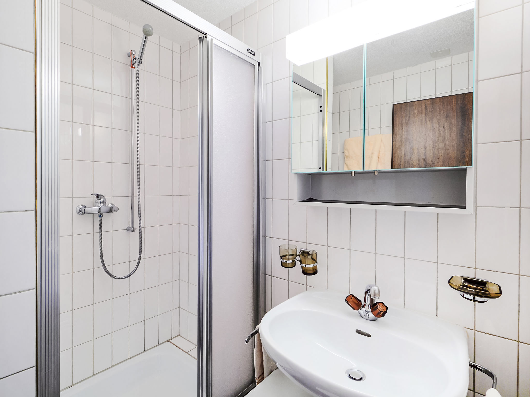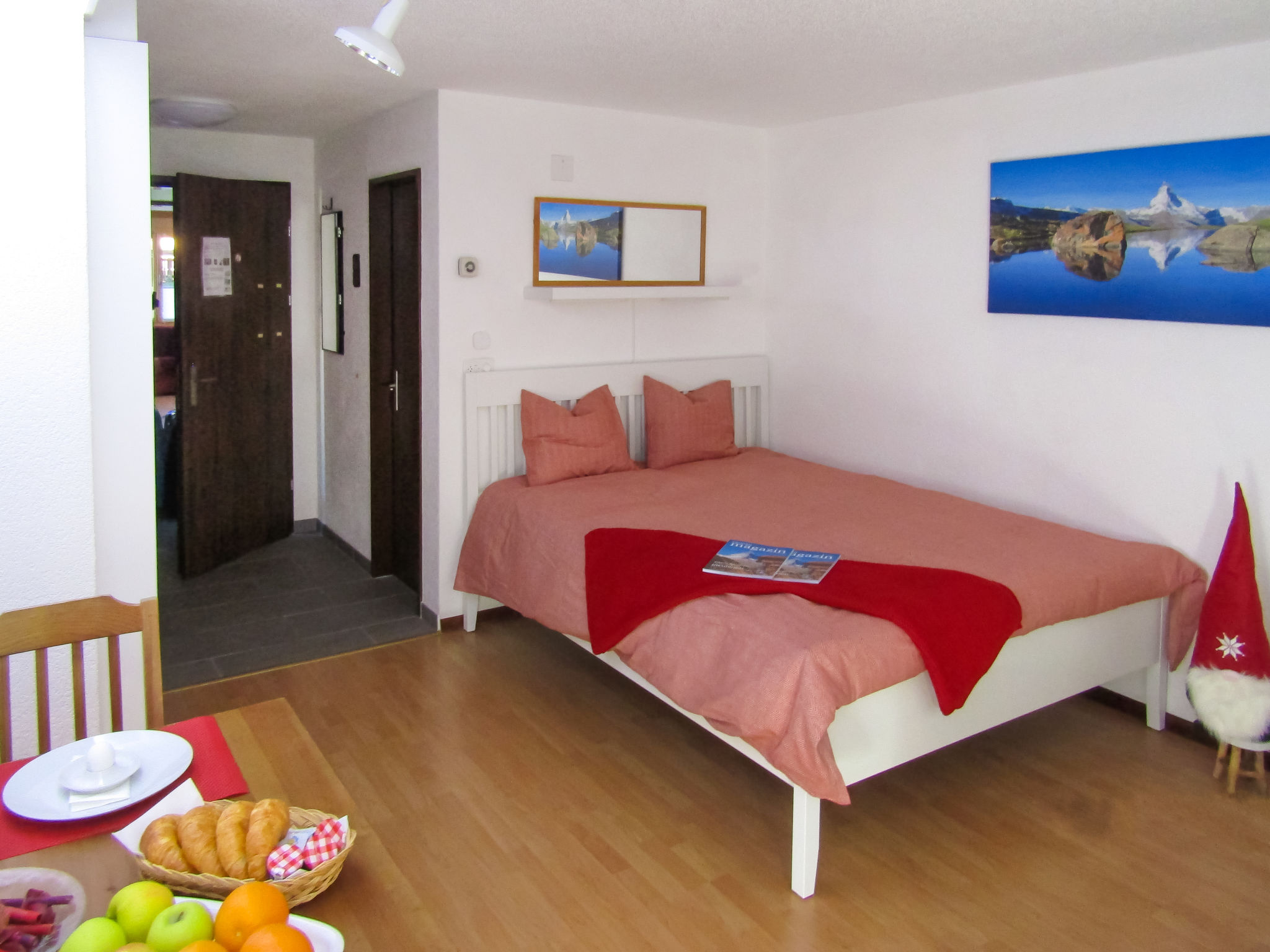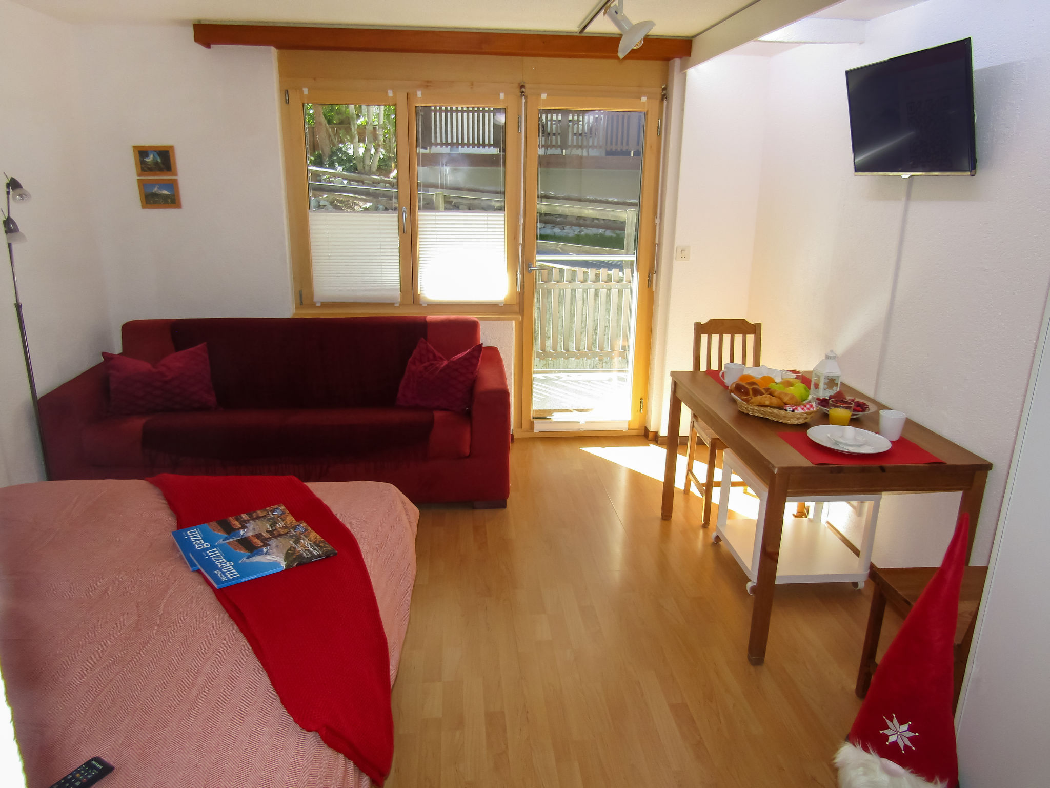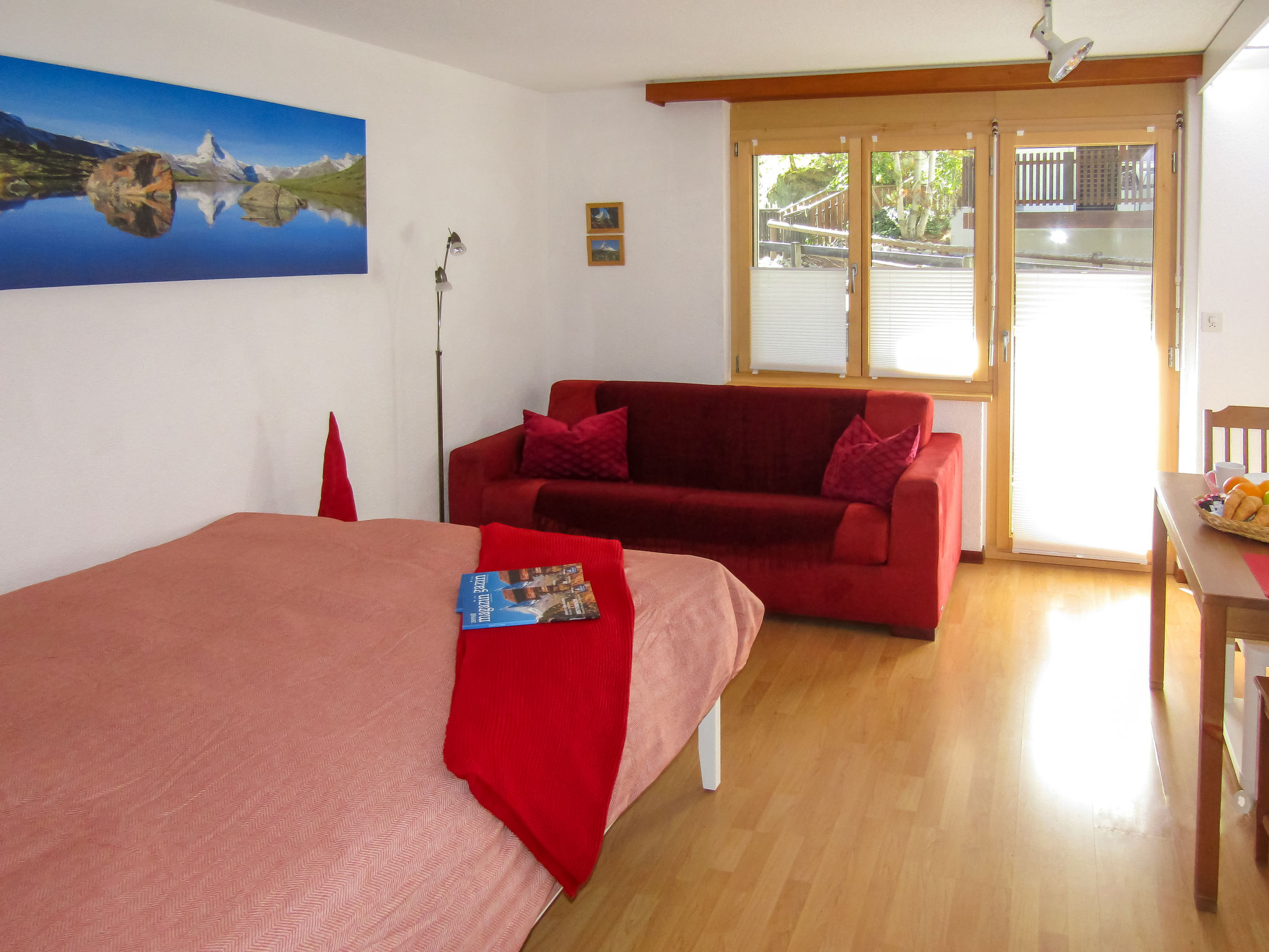 1-Zimmer-Wohnung 25 m2 im 1. Stock. Teilweise renoviert im Jahre 2021, geschmackvoll und gemütlich eingerichtet: Wohn-/Schlafzimmer mit 1 Doppelbett (160 cm, Länge 200 cm), Esstisch, TV und Radio. Ausgang zum Balkon. Offene Küche im Eingang (3 Kochplatten, Backofen, Toaster, Wasserkocher, Tiefkühler, elektrische Kaffeemaschine, Fondue Set (Käse)). Dusche/WC. Balkon 7 m2, Südlage und Westlage. Balkonmöbel. Seitliche Sicht auf die Berge. Zur Verfügung: Haartrockner. Internet (Wireless LAN, gratis). Bitte beachten: Nichtraucher-Unterkunft. Kann gut zusammen mit Ref-Nr. CH3920.210.1 als 2-Zimmer-Wohnung gemietet werden. Wohnungen direkt nebeneinander (gleiche Haupteingangs-, jedoch separate Wohnungseingangstüre).