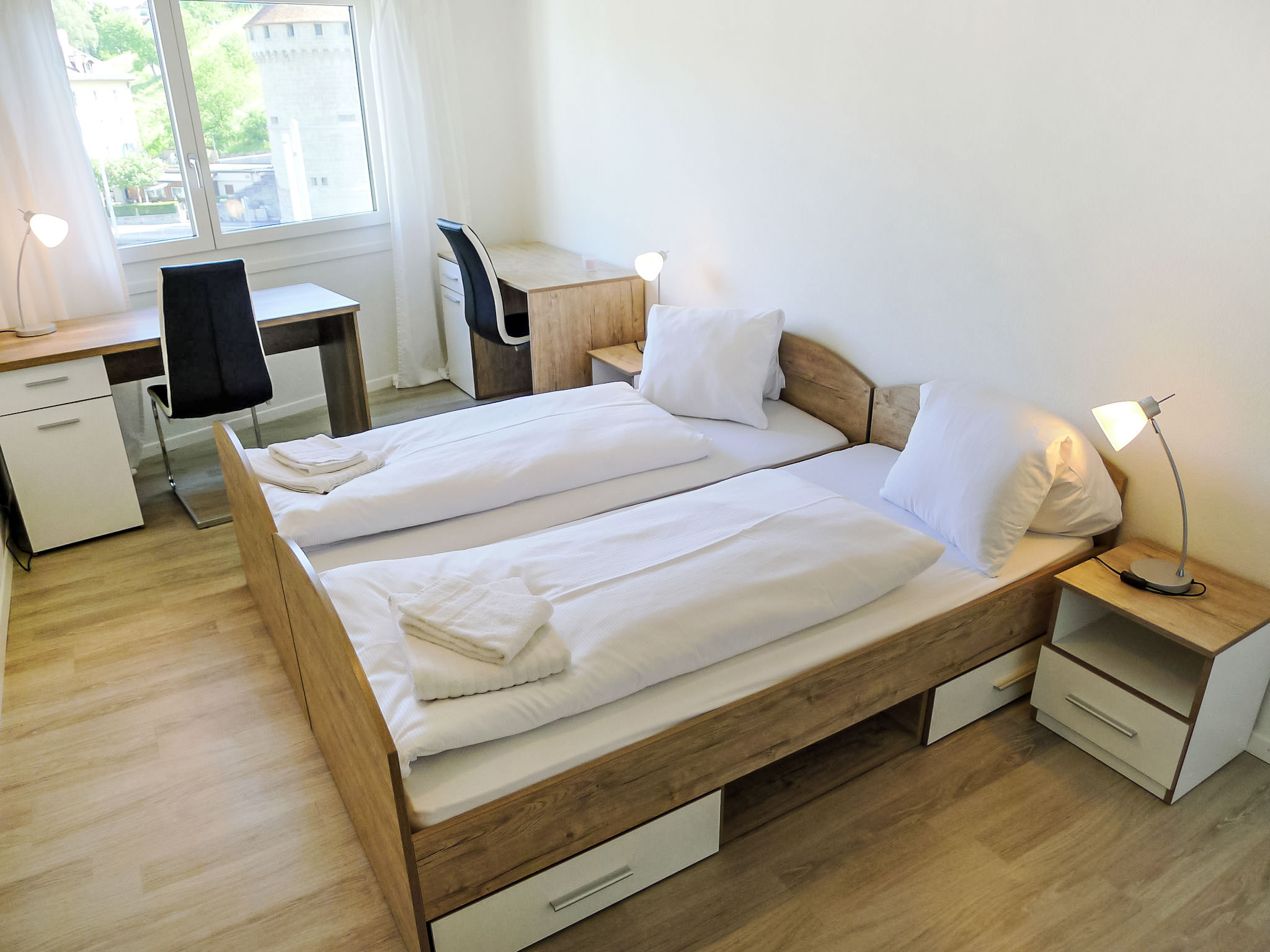 Komfortables Appartementhaus "BHMS City Campus". Im Ortszentrum von Luzern, zentrale Lage, 500 m vom See, 50 m vom Fluss. Im Hause: Wireless LAN, Fahrstuhl, Zentralheizung, Waschmaschine (zur Mitbenutzung, extra). Frühstück Vollpension Halbpension möglich (extra). Zufahrt bis zum Haus. Gemeinschaftsgarage (extra) beim Haus, öffentliches Parkhaus in 30 m. E-Ladestation. Einkaufsgeschäft 50 m, Restaurant 100 m, Bushaltestelle 100 m, Bahnstation "Luzern" 1 km. Bekannte Seen in der Umgebung sind gut erreichbar: Vierwaldstättersee 500 m. Bitte beachten: Autobahn in der Nähe. Hauptstrasse in der Nähe. Das Foto ist nur ein Wohnungsbeispiel. Weitere Unterkünfte sind buchbar. Bitte wenden Sie sich für Informationen betreffend Schule direkt an die BHMS Luzern. Unterkunft wird auch von Studenten benutzt.