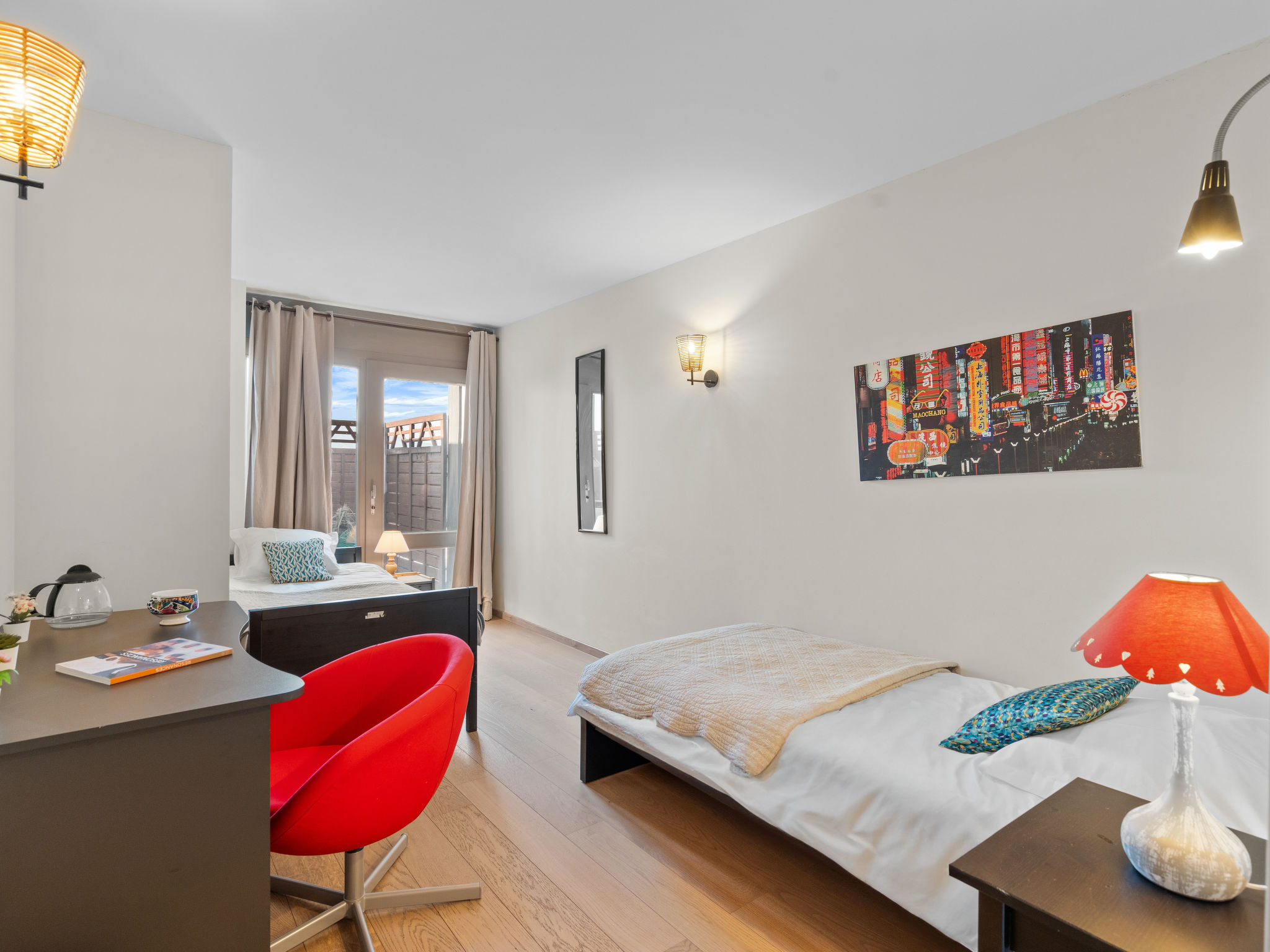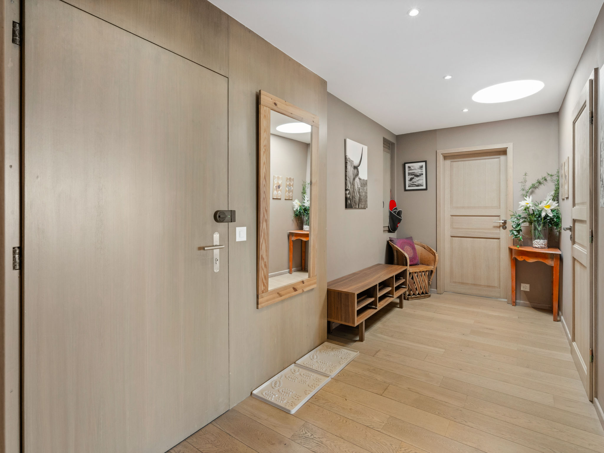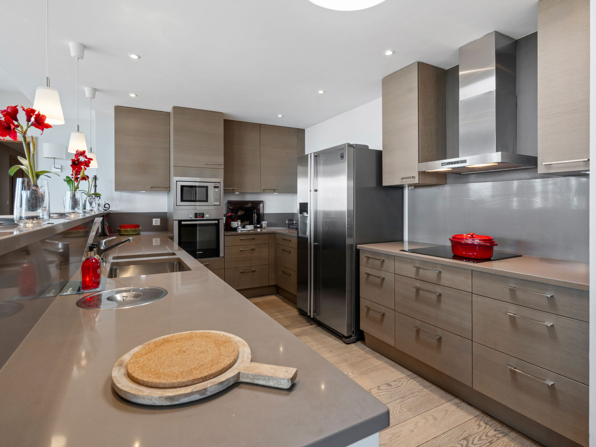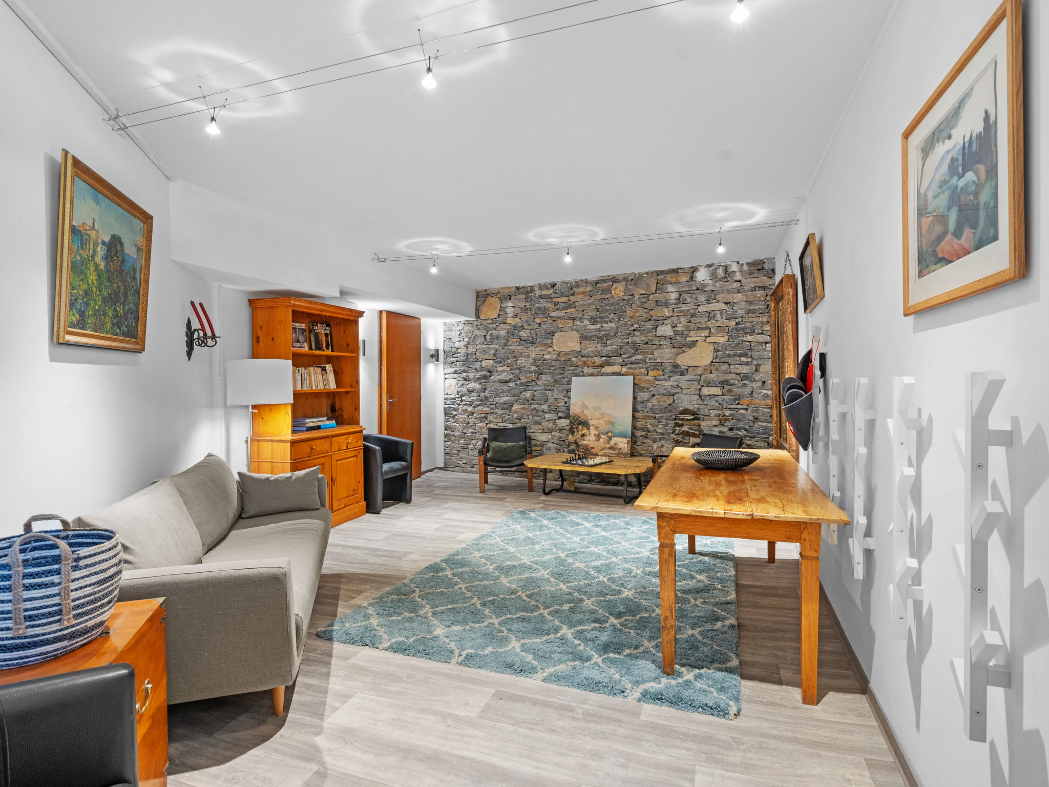 "Jeanne D'Arc LOFT COMBI", 10-Zimmer-Maisonette-Wohnung 350 m2, Südlage. Geräumig, komfortabel und geschmackvoll eingerichtet: grosses Wohn-/Esszimmer mit offenem Kamin, Esstisch und Kabel-TV. Ausgang zur Terrasse. 1 Zimmer mit 1 franz. Bett (160 cm, Länge 200 cm), Bad/WC, Doppelwaschbecken und Kabel-TV. 1 Zimmer mit 2 Betten (80 cm, Länge 200 cm), Dusche/WC. 1 Zimmer mit 2 Betten (80 cm, Länge 200 cm), Dusche/WC. Ausgang zur Terrasse. 1 Zimmer mit 2 Betten (90 cm, Länge 190 cm), Dusche/WC. 1 Zimmer mit 1 franz. Bett (160 cm, Länge 200 cm), Bad/WC und Doppelwaschbecken. Ausgang zur Terrasse. 1 Zimmer mit 1 Doppelbett (2 x 90 cm, Länge 200 cm), Dusche/WC. Ausgang zur Terrasse. Offene Küche (Backofen, Geschirrspüler, 4 Glaskeramikplatten, Toaster, Wasserkocher, Mikrowelle, Tiefkühler, elektrische Kaffeemaschine, Kapseln für die Kaffeemaschine (Nespresso) extra, Racletteofen, Fondue Set (Chinoise)) mit Bar. Sep. WC. Unteres Geschoss: (Wendeltreppe) grosses Spielzimmer mit Bar. Grosser Salon. Sep. WC, Sauna. Grosse Terrasse 50 m2, Südlage, grosse Terrasse 50 m2, Südlage und Ostlage. Terrassenmöbel, Gartengrill (mobil). Sehr schöne Panoramasicht auf den See, die Berge, das Tal und die Landschaft. Zur Verfügung: Waschmaschine, Wäschetrockner, Bügeleisen, Haartrockner. Internet (WLAN, gratis). Garage Nr. 21 (1 Auto) in 350 m, Höhe 200 cm, Breite 290 cm. Bitte beachten: geeignet für Familien. Nichtraucher-Haus. Eigener Eingang, kein Fahrstuhl. Kombination (Verbindungstür) aus 2 Wohnungen. Elektrischer Treppenlift zur Verfügung.
