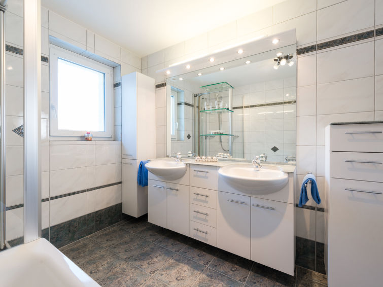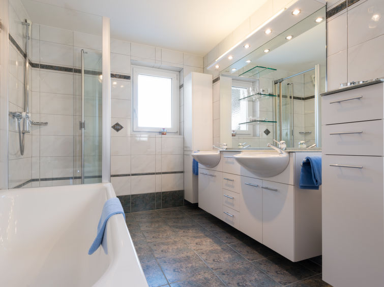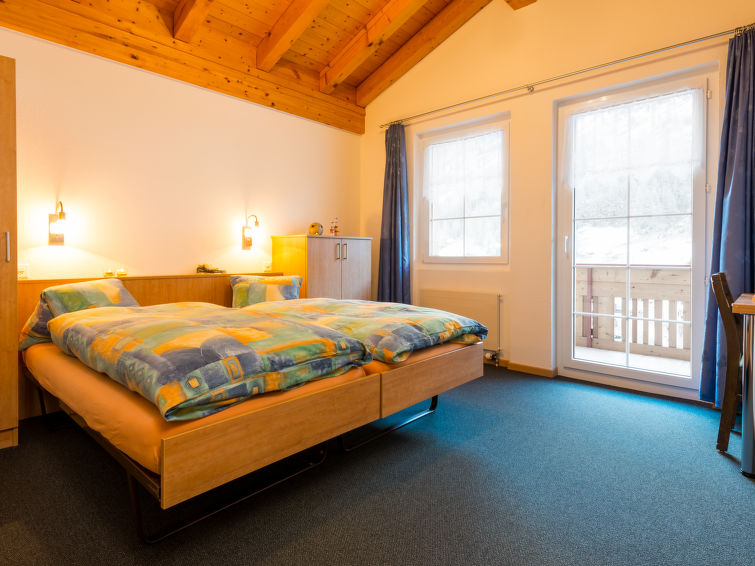 "Haus Piccolo", 7-Zimmer-Chalet 230 m2 auf 3 Stockwerken. Teilweise renoviert im Jahre 2020, komfortabel und modern eingerichtet: 1 Zimmer mit 2 Betten, Dusche/WC und Sat-TV (Flachbildschirm). Obergeschoss: Wohn-/Esszimmer mit Esstisch und Sat-TV (Flachbildschirm), Stereoanlage und DVD. Ausgang zum Garten, zur Terrasse. 1 Doppelzimmer mit 1 Doppelbett. Ausgang zum Balkon, Richtung Osten. Offene Küche (Backofen, Geschirrspüler, 4 Glaskeramikplatten, Toaster, Mikrowelle, elektrische Kaffeemaschine, Kapseln für die Kaffeemaschine (Nespresso), Racletteofen, Fondue Set (Käse)). Bad/Dusche/WC, Doppelwaschbecken. Dachgeschoss: 2 Doppelzimmer, jedes Zimmer mit 2 Betten. Ausgang zum Balkon, Richtung Osten. 1 Doppelzimmer mit 2 Betten. Ausgang zum Garten, Richtung Westen. 1 kleines Zimmer mit 2 Betten. Dusche/WC. Gartensitzplatz. Terrassenmöbel, Gartengrill, Abstellkammer. Sehr schöne Sicht auf die Berge. Zur Verfügung: Waschmaschine (extra), Babybett, Haartrockner. Internet (Wireless LAN, gratis). Blu-Ray Player. Parkplatz (3 Autos) in 70 m. Bitte beachten: Nichtraucher-Unterkunft. 1 Haustier/Hund erlaubt.