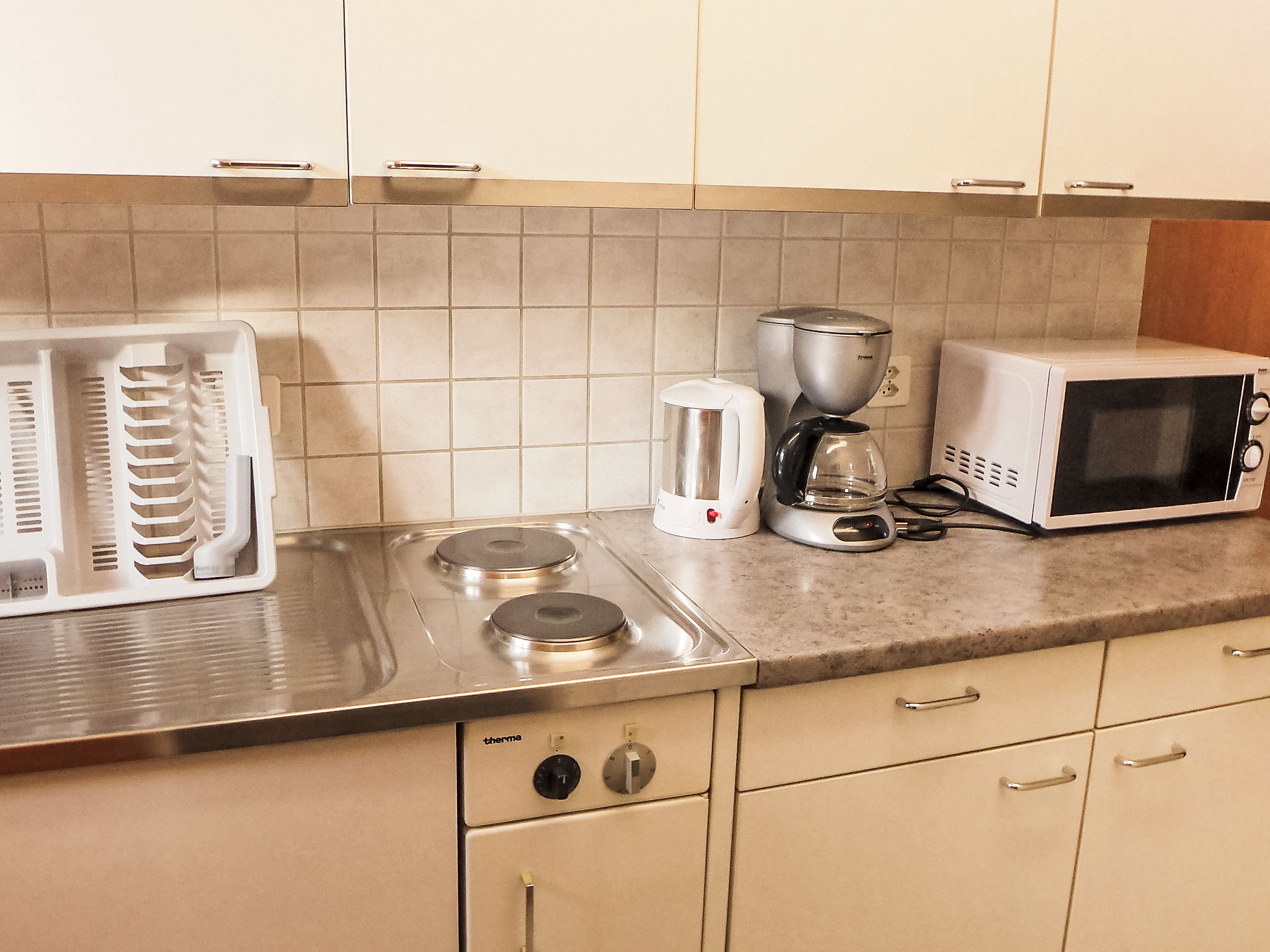 1-Zimmer-Wohnung 23 m2, im ebenerdigen Untergeschoss, Südlage. Gemütlich eingerichtet: Wohn-/Schlafzimmer mit 2 Betten (90 cm, Länge 200 cm), Kabel-TV (Flachbildschirm), Radio. Ausgang zum Gartensitzplatz, Richtung Süden und Richtung Westen. Küche (2 Kochplatten, Toaster, Wasserkocher, Mikrowelle, elektrische Kaffeemaschine, Kapseln für die Kaffeemaschine (Nespresso) extra). Dusche/WC. Gartensitzplatz, Südlage und Westlage. Terrassenmöbel, Liegestühle (2). Herrliche Sicht auf die Berge und Eigernordwand. Zur Verfügung: Haartrockner. Internet (WLAN, gratis). Parkplatz beim Haus. Bitte beachten: Nichtraucher-Unterkunft. Maximal 1 Haustier/Hund erlaubt. Eigener Eingang, Feuerlöscher.