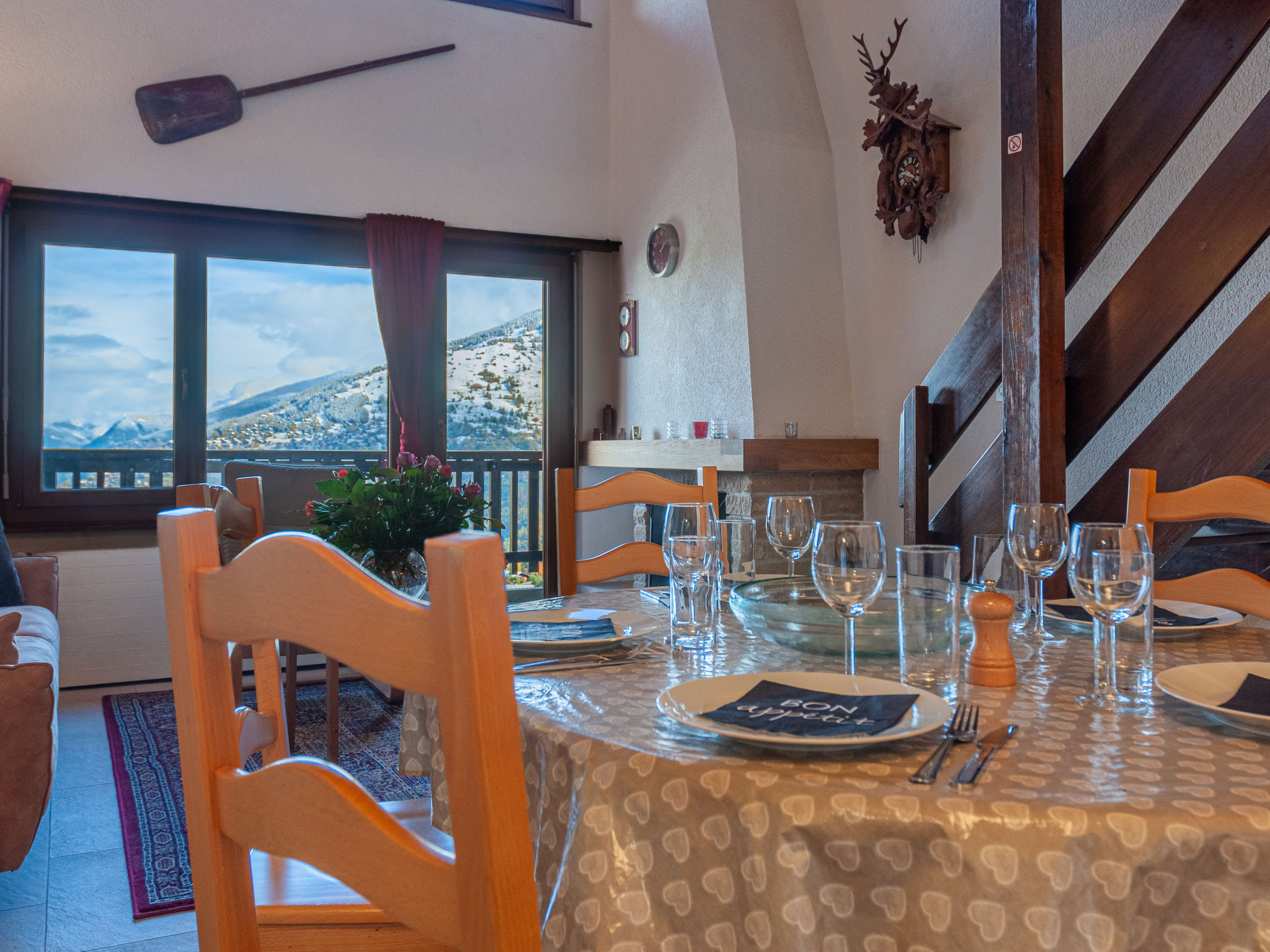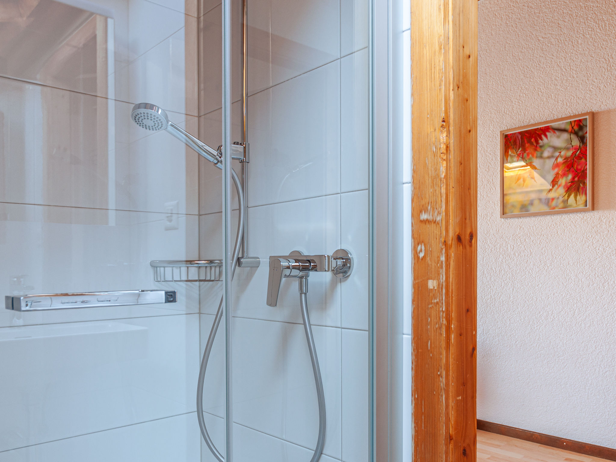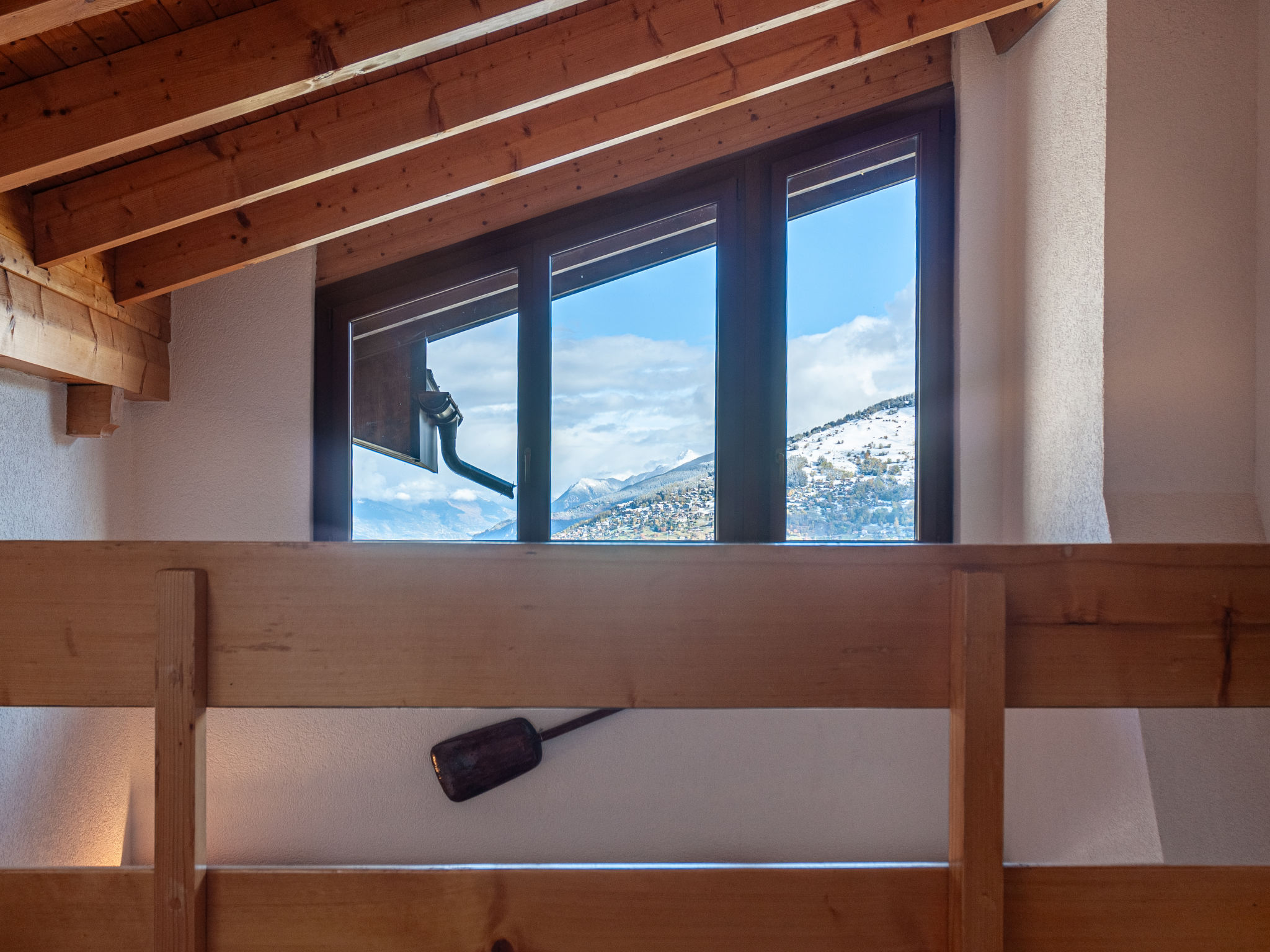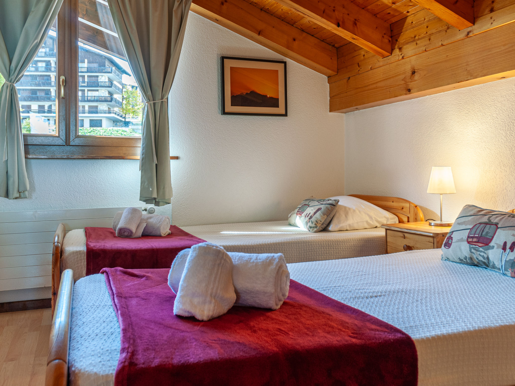 "Anemone 9", 3-Zimmer-Attikawohnung 75 m2 auf 2 Stockwerken. Schön eingerichtet: Wohn-/Esszimmer mit Panoramafenster mit offenem Kamin. Ausgang zum Balkon. 1 Zimmer mit 1 franz. Bett (160 cm, Länge 200 cm). Ausgang zum Balkon. Küche (Backofen, Geschirrspüler, Toaster, Wasserkocher, Mikrowelle, elektrische Kaffeemaschine, Kapseln für die Kaffeemaschine (Nespresso) extra, Fondue Set (Käse)). Dusche/WC. Dachgeschoss: offene Galerie mit 1 Bett (90 cm, Länge 190 cm), Kabel-TV und DVD. 1 Zimmer mit 2 Betten (90 cm, Länge 200 cm). Dusche/WC. Balkon, Südwestlage Balkon, Nordostlage. Panoramasicht auf die Berge und das Tal. Zur Verfügung: Internet (WLAN, gratis). Bitte beachten: Nichtraucher-Unterkunft. Anstelle eines abgeschlossenen Schlafzimmers befinden sich manche Schlafplätze in einem offenen Bereich (Galerie, Nische etc.).