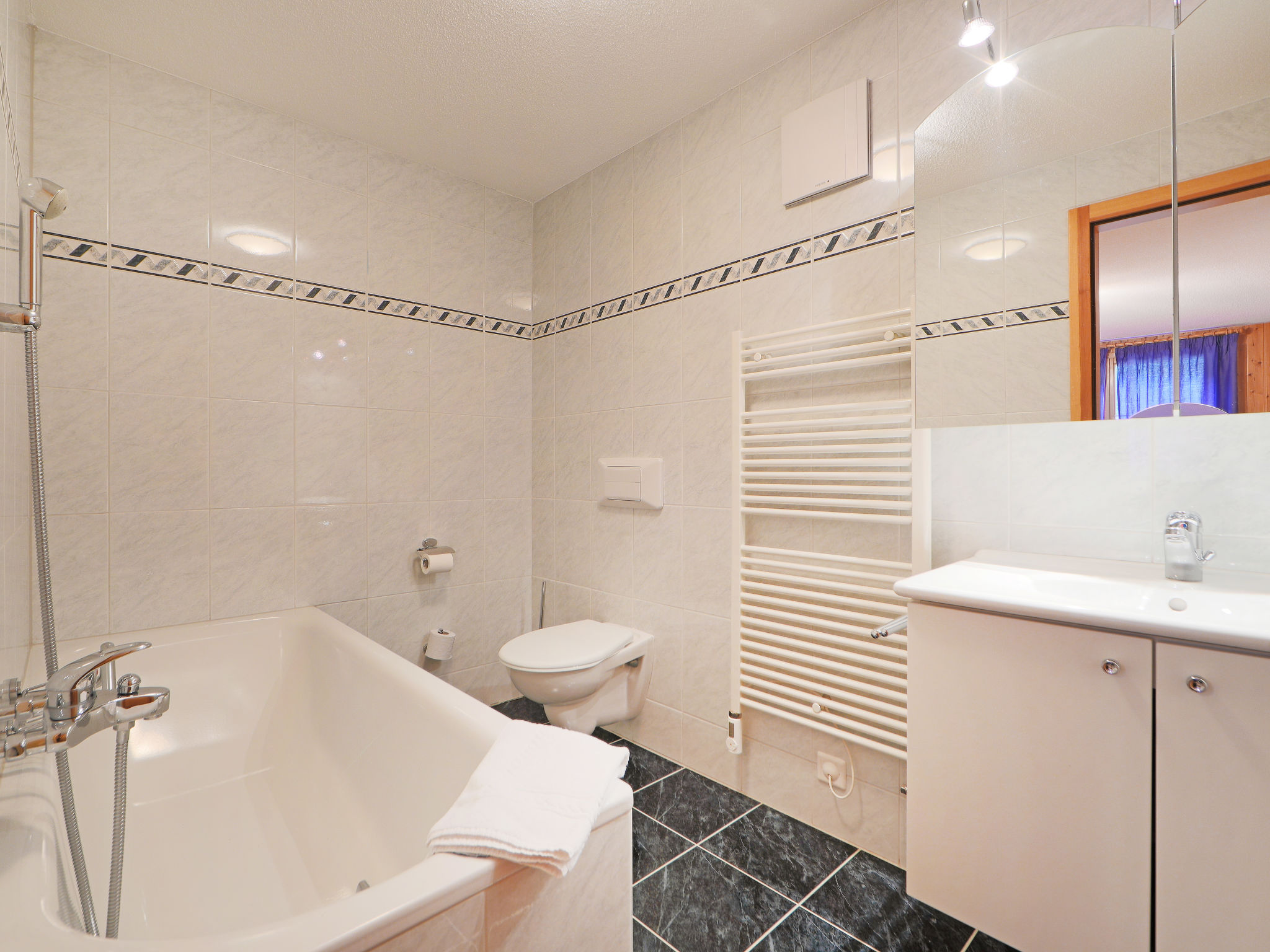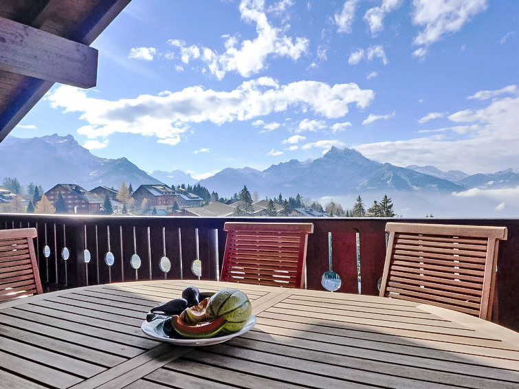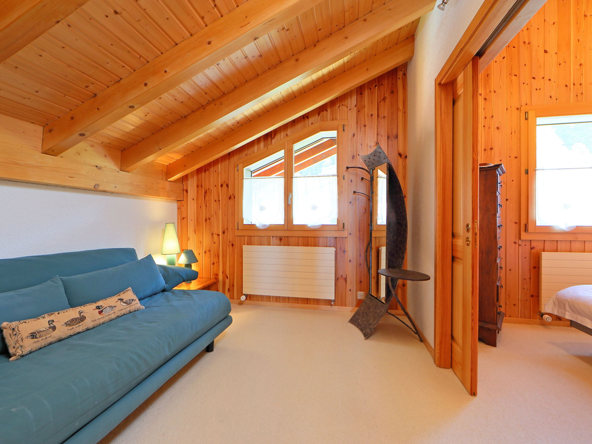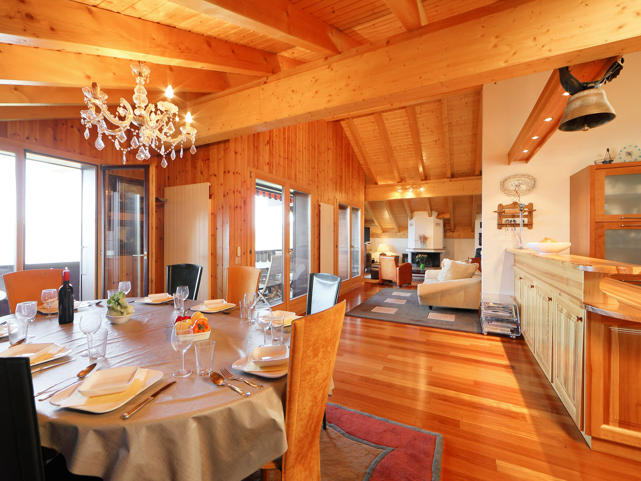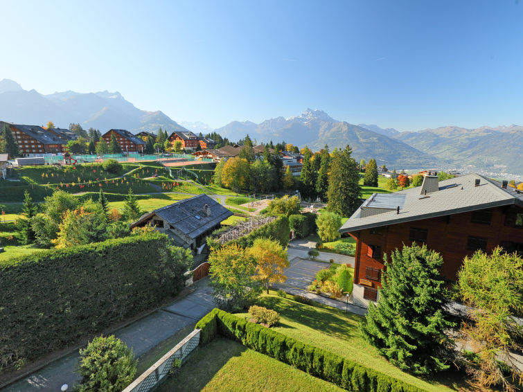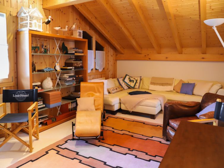 "Sunset B 11", 8-Zimmer-Attikawohnung 240 m2 auf 2 Stockwerken im 5. Stock, Südlage. Geräumig, abgeschrägt, sehr komfortabel und geschmackvoll eingerichtet: abgeschrägtes grosses Wohn-/Esszimmer, Deckenhöhe 210 - 500 cm mit Panoramafenster mit offenem Kamin, Esstisch und TV (Flachbildschirm). Ausgang zum Balkon, Richtung Süden. 1 Zimmer mit 2 Betten (90 cm, Länge 200 cm), Bad/WC. 1 Zimmer mit 1 Diwanbett (150 cm). Salon mit TV (Flachbildschirm), DVD. Grosse, offene Küche (Backofen, Geschirrspüler, 4 Glaskeramikplatten, Toaster, Mikrowelle, Tiefkühler, elektrische Kaffeemaschine, Kapseln für die Kaffeemaschine (Nespresso) extra, Racletteofen, Fondue Set (Käse)). Sep. WC. Unteres Geschoss: 1 Zimmer mit 2 Betten (90 cm, Länge 200 cm), Bad/Dusche/WC. Ausgang zum Balkon, Richtung Süden. 1 Zimmer mit 1 franz. Bett (1 x 160 cm, Länge 200 cm). 1 Zimmer mit 2 Betten (90 cm, Länge 200 cm). Bad/WC, Dusche/WC. 2 grosse Balkone, Südlage. Balkonmöbel, Gartengrill. Sehr schöne Panoramasicht auf die Berge. Zur Verfügung: Waschmaschine. Internet (Wireless LAN, gratis). Garage Nr. 11 (2 Autos). Bitte beachten: Nichtraucher-Unterkunft. Raclettegerät : halber Laib Käse.