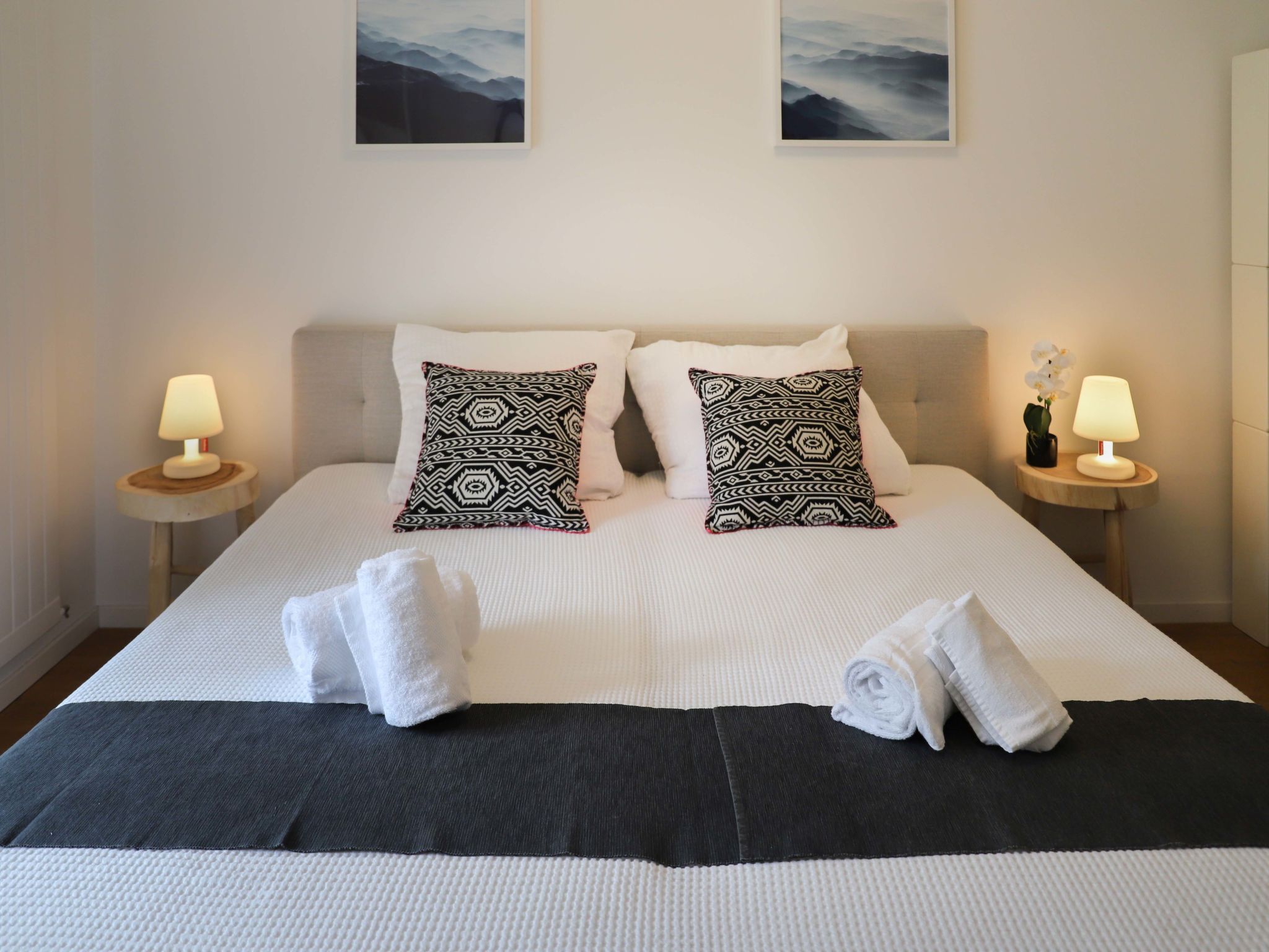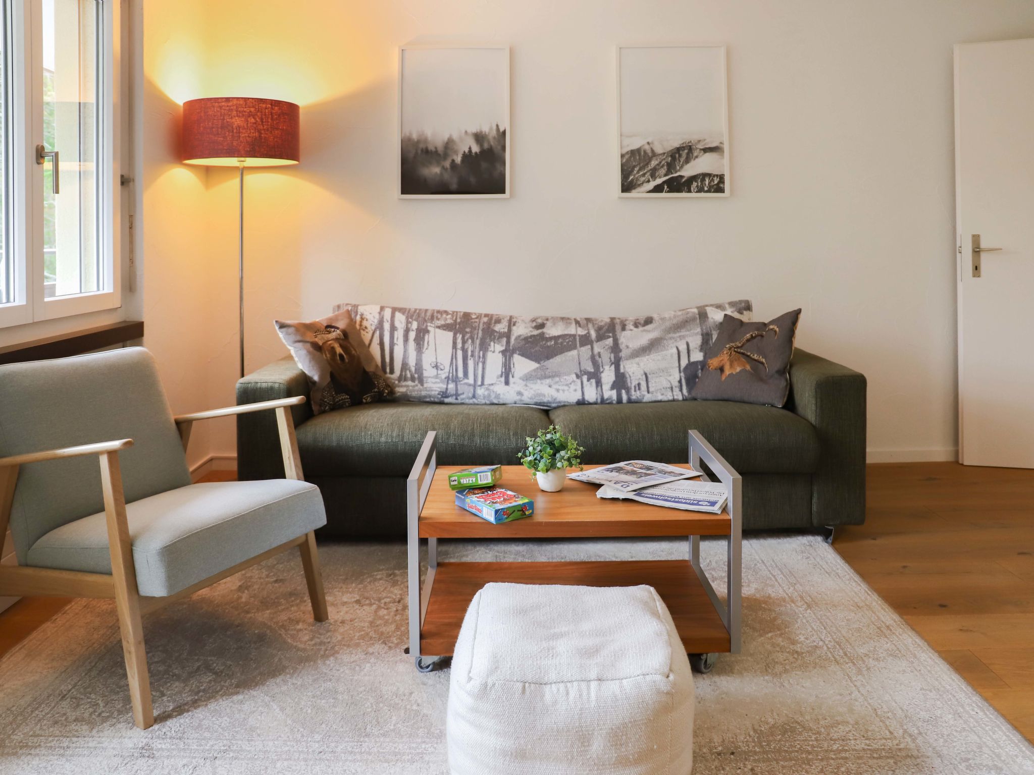 "Allod Park Haus C 202", 2-Zimmer-Wohnung 55 m2 im 2. Stock, Südostlage. Objekt geeignet für 2 Erwachsene + 1 Kind. Geräumig und hell, teilweise renoviert im Jahre 2019, sehr komfortabel und schön eingerichtet: Wohn-/Esszimmer mit Esstisch und Kabel-TV (Flachbildschirm). Ausgang zum Balkon, Richtung Südwesten. 1 Zimmer, Richtung Südosten mit 1 Doppelbett (2 x 90 cm). Ausgang zum Balkon, Richtung Südwesten. Küche (Backofen, Geschirrspüler, 4 Glaskeramikplatten, elektrische Kaffeemaschine, Kapseln für die Kaffeemaschine (Nespresso) extra). Dusche/WC, Doppelwaschbecken. Ölheizung. Holzdielenboden. Grosser Balkon, Südwestlage. Balkonmöbel. Sehr schöne Sicht auf die Berge, die Landschaft und Park. Bitte beachten: Nichtraucher-Unterkunft. 12758