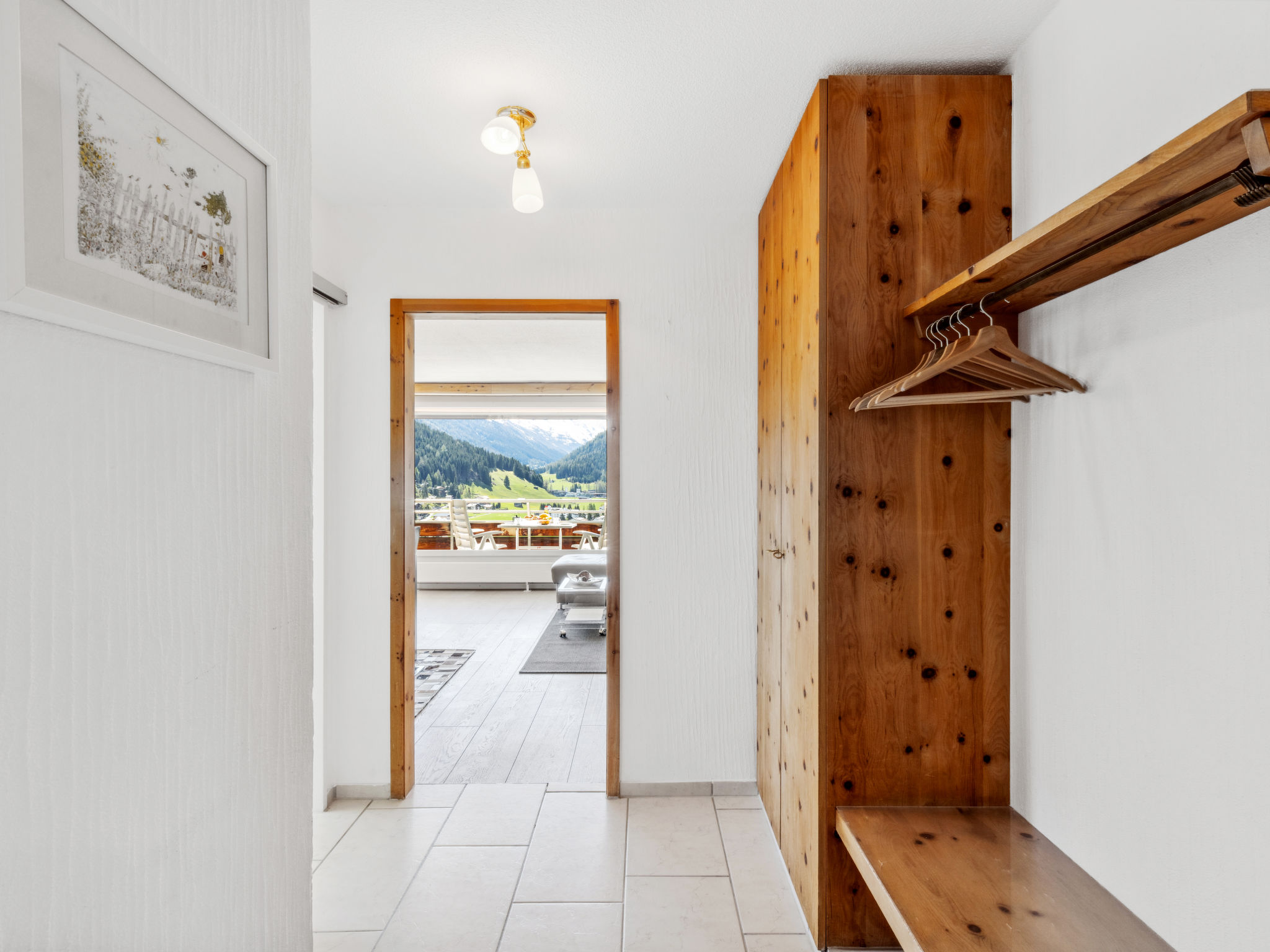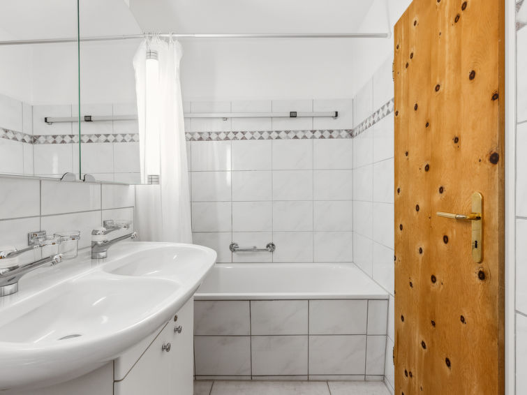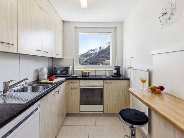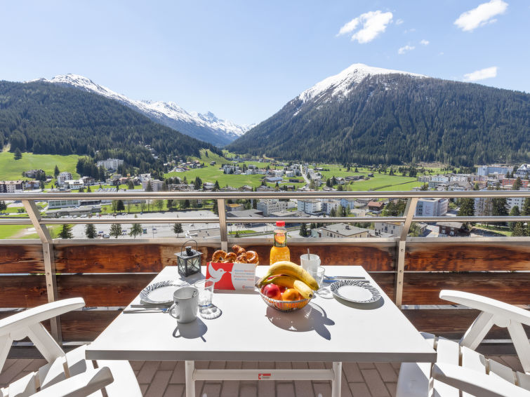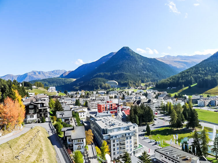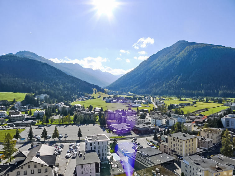 Davos: Appartementhaus "Guardaval (Utoring)". Im Ort, zentrale, ruhige, sonnige Lage am Hang, 1 km vom See, 300 m vom Skigebiet. Zur Mitbenutzung: Hallenbad. Im Hause: Empfang, Aufenthaltsraum mit TV, Wireless LAN, Sauna (extra). Spielzimmer, Fahrstuhl, Skiraum, Zentralheizung, Waschmaschine (zur Mitbenutzung). Brötchenservice und Getränkeservice. Schmale Zufahrt bis zum Haus. Parkplatz (überdacht, beschränkte Anzahl, extra), Gemeinschaftsgarage (extra). Einkaufsgeschäft 300 m, Restaurant 300 m, Bushaltestelle, Bahnstation "Davos Dorf" 400 m, Hallenbad 1 km, Badesee 1 km. Bergeisenbahn, Skisportanlagen, Skipisten, Skischule, Schlittelbahn 1.5 km, Langlaufloipe, Eisfeld 300 m. Bekannte Skigebiete sind gut erreichbar: Parsenn 300 m, Jakobshorn 1.5 km. Das Appartementhaus befindet sich oberhalb der Talstation der Parsennbahn und verfügt über eine herrliche Aussicht. Parkplatz + Garage (Reservierung bei Ankunft).