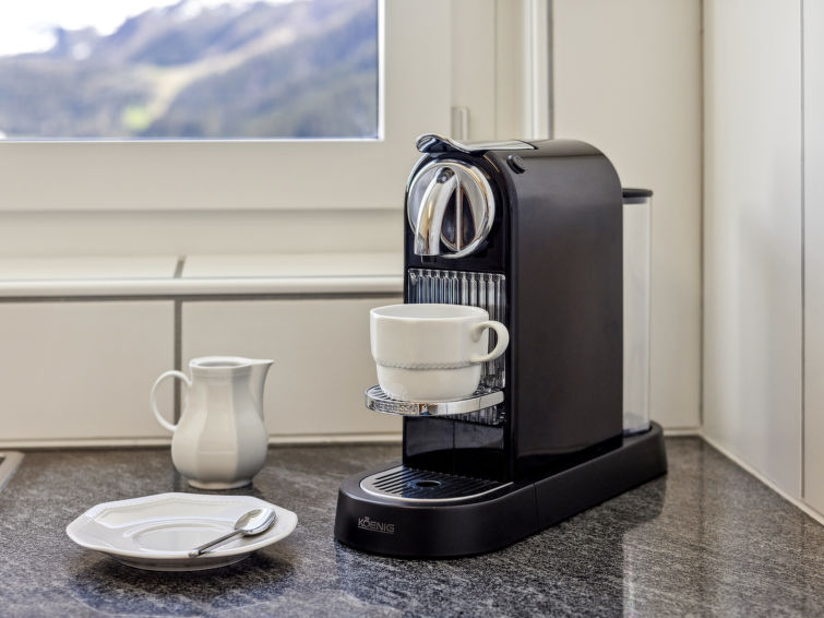 2-Zimmer-Wohnung 65 m2 im 6. Stock. Komfortabel und rustikal eingerichtet: Wohn-/Esszimmer mit 2 Wandschrankbetten und Kabel-TV (Flachbildschirm), Radio. Ausgang zum Balkon. 1 Zimmer mit 2 Betten und Kabel-TV (Flachbildschirm). Küche (Backofen, Geschirrspüler, 4 Glaskeramikplatten). Bad/WC, sep. WC. Balkon 7 m2, Südlage und Ostlage. Balkonmöbel. Schöne Sicht auf die Berge, die Landschaft und die Ortschaft. Zur Verfügung: Internet (WLAN, gratis). Parkplatz. Bitte beachten: Nichtraucher-Unterkunft. 11928