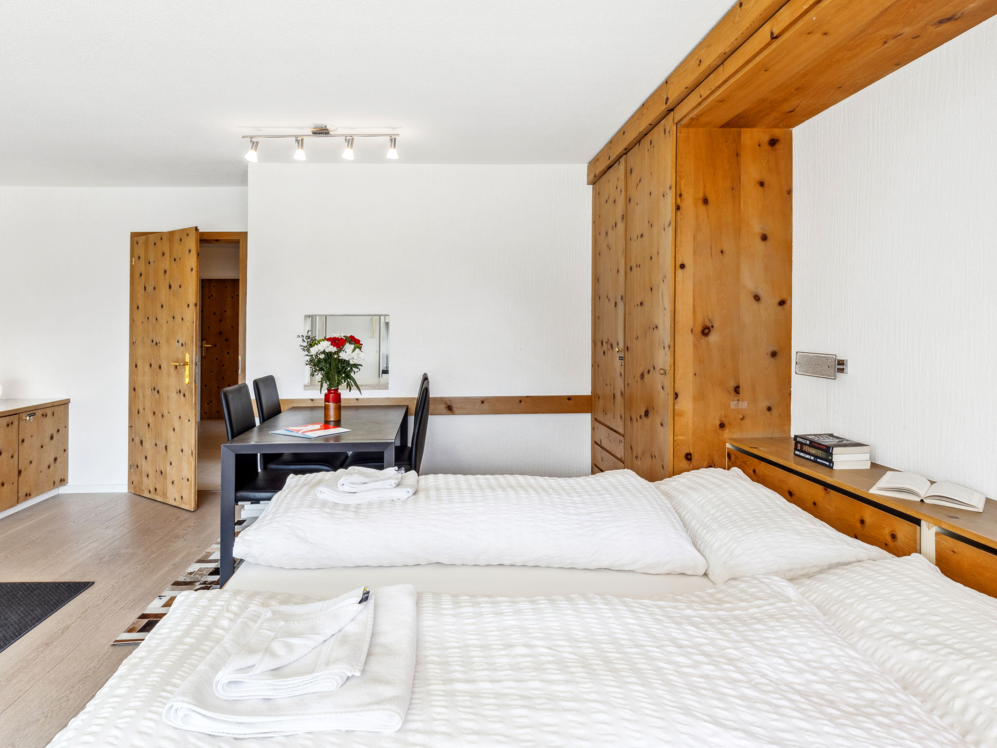 "Guardaval Apt 602", 2-Zimmer-Wohnung 65 m2 im 6. Stock. Komfortabel und rustikal eingerichtet: Wohn-/Esszimmer mit 2 Wandschrankbetten und Kabel-TV (Flachbildschirm), Radio. Ausgang zum Balkon. 1 Zimmer mit 2 Betten und Kabel-TV (Flachbildschirm). Küche (Backofen, Geschirrspüler, 4 Glaskeramikplatten). Bad/WC, sep. WC. Balkon 7 m2, Südlage und Ostlage. Balkonmöbel. Schöne Sicht auf die Berge, die Landschaft und die Ortschaft. Zur Verfügung: Internet (WLAN, gratis). Parkplatz. Bitte beachten: Nichtraucher-Unterkunft. 11928