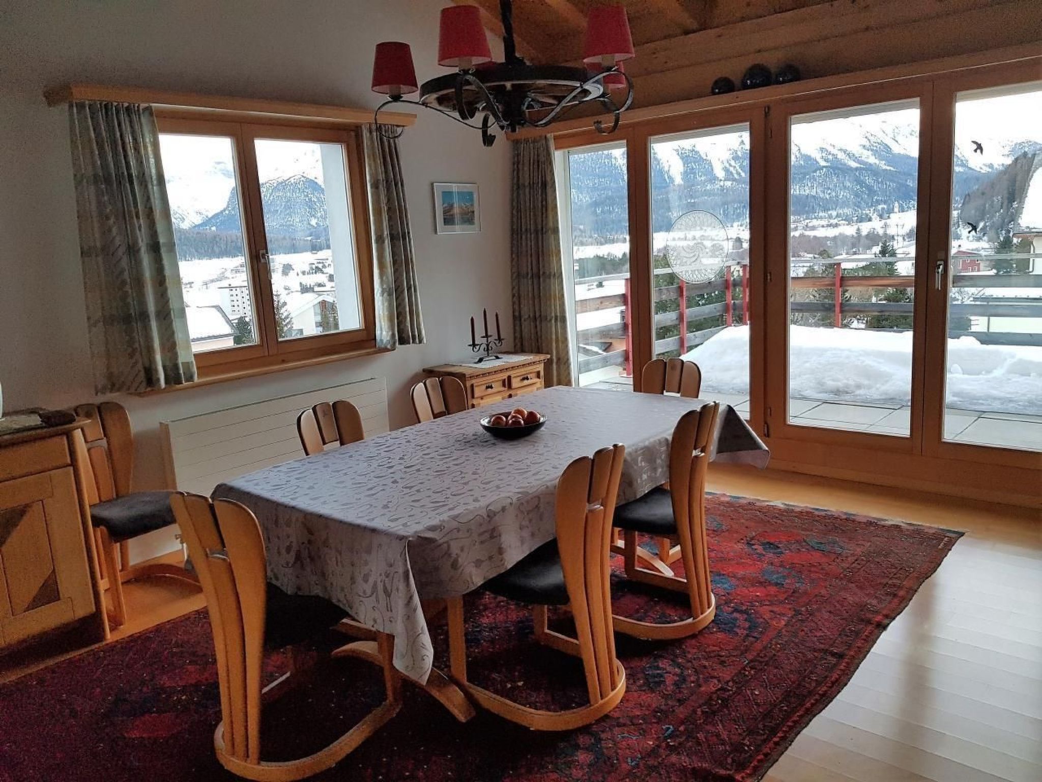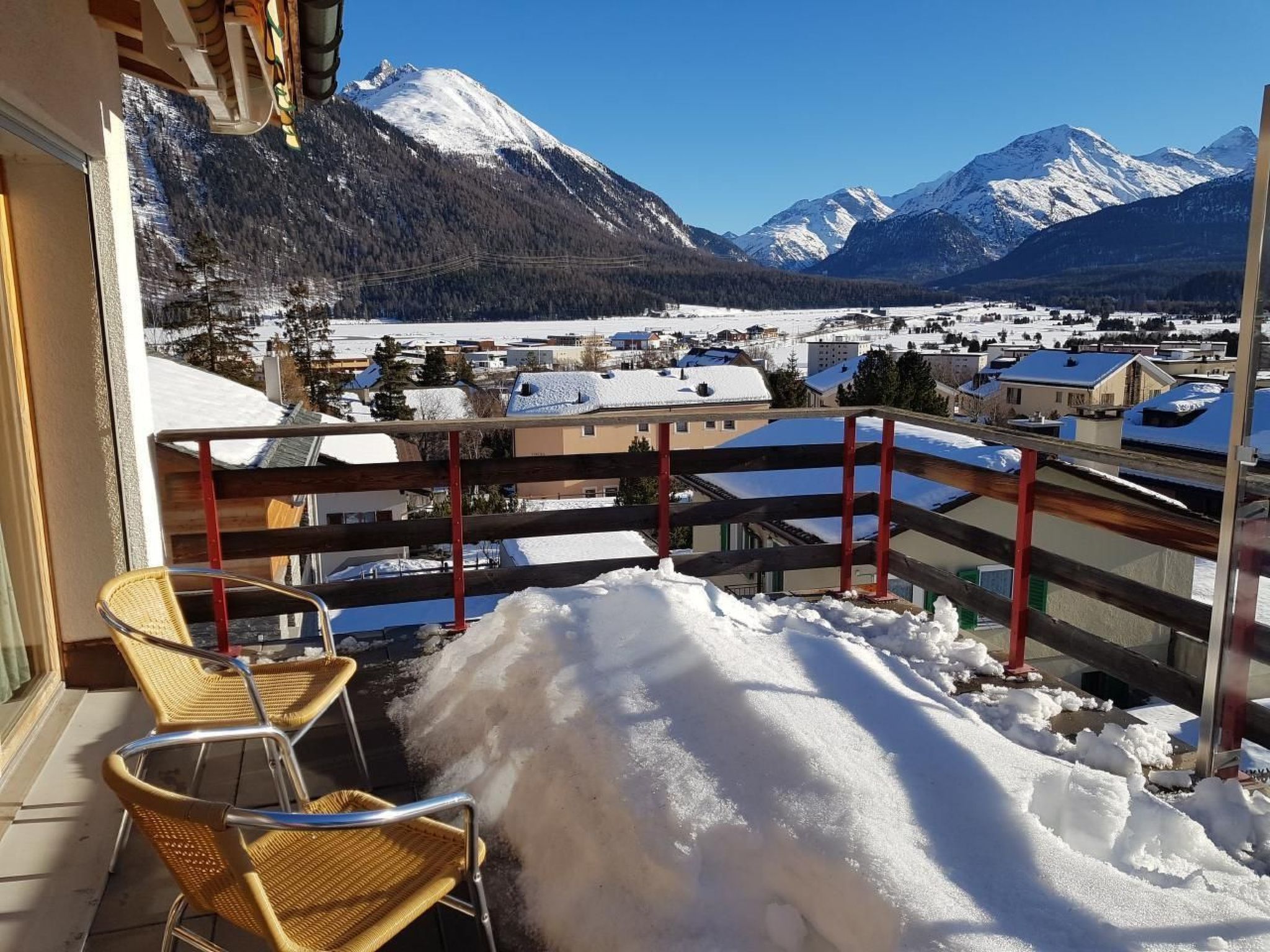 Ein wunderbares Panorama können Sie vom grosszügigen Wohnzimmer und der Terrasse dieser sonnigen, ruhig gelegenen Ferienwohnung rund um die Uhr geniessen. Ihr Blick schweift über die Weite des Tales in die faszinierende Engadiner Bergwelt bis hin zur Berninagruppe.