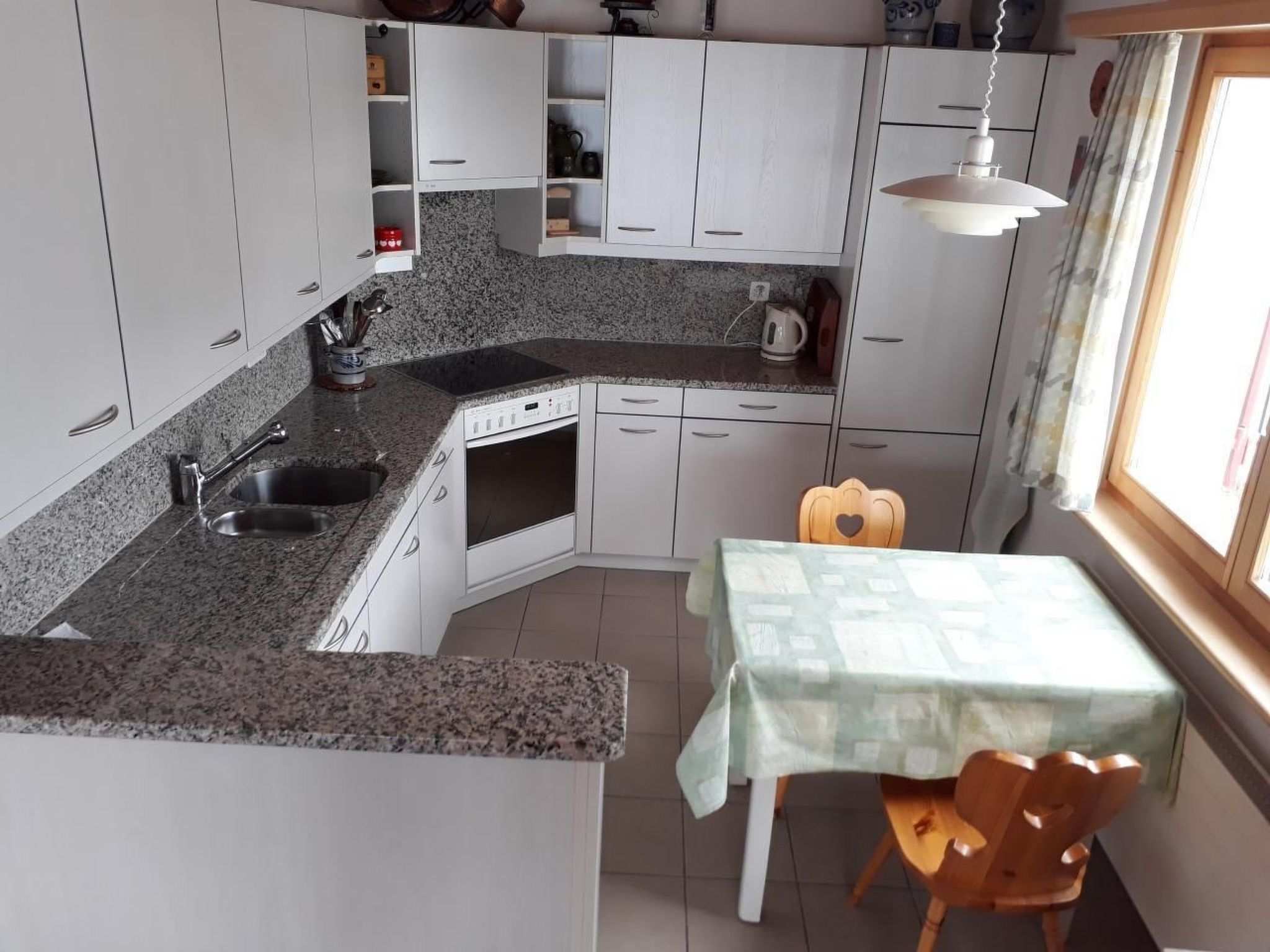 Die untere Wohnung ist dauervermietet. Bei längerer Mietdauer kann die Waschmaschine mitbenützt werden. Auf Wunsch steht ein Kinderstuhl zur Verfügung.