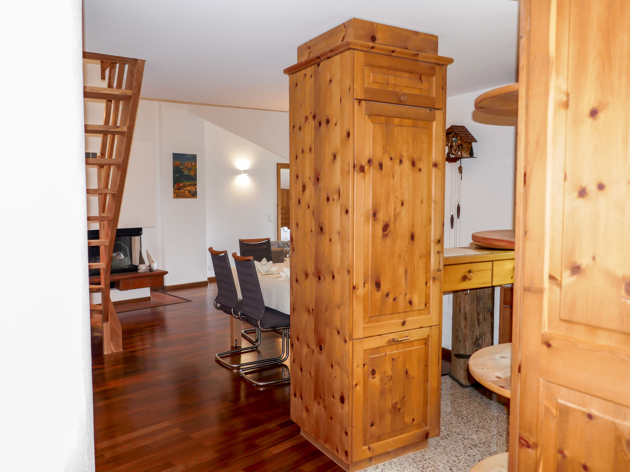"Chesa Polaschin E - E21 - Sils", 3-Zimmer-Wohnung 80 m2 auf 2 Stockwerken im 2. Stock. Geräumig, teilweise abgeschrägt, schön und gemütlich eingerichtet: Wohn-/Esszimmer mit offenem Kamin (nur Deko). 1 Zimmer mit 1 franz. Bett (1 x 160 cm, Länge 200 cm). Offene Küche (Backofen, Geschirrspüler, 4 Glaskeramikplatten, Toaster, Wasserkocher, elektrische Kaffeemaschine, Kapseln für die Kaffeemaschine (Nespresso) extra, Fondue Set (Chinoise)) mit Esstisch, TV (Flachbildschirm). Ausgang zum Balkon. Bad/WC, Dusche/WC. Heizung. Obergeschoss: Galerie mit 1 franz. Bett (1 x 160 cm, Länge 200 cm). Parkettboden. Balkonmöbel. Schöne Sicht auf die Berge. Zur Verfügung: Haartrockner. Internet (Wireless LAN, gratis). Garage Nr. 105, Höhe 230 cm, Breite 233 cm. Bitte beachten: nicht geeignet für Kinder unter 6 Jahren. Nichtraucher-Unterkunft, Nichtraucher-Haus. Maximal 1 Haustier/Hund erlaubt. Anstelle eines abgeschlossenen Schlafzimmers befinden sich manche Schlafplätze in einem offenen Bereich (Galerie, Nische etc.).