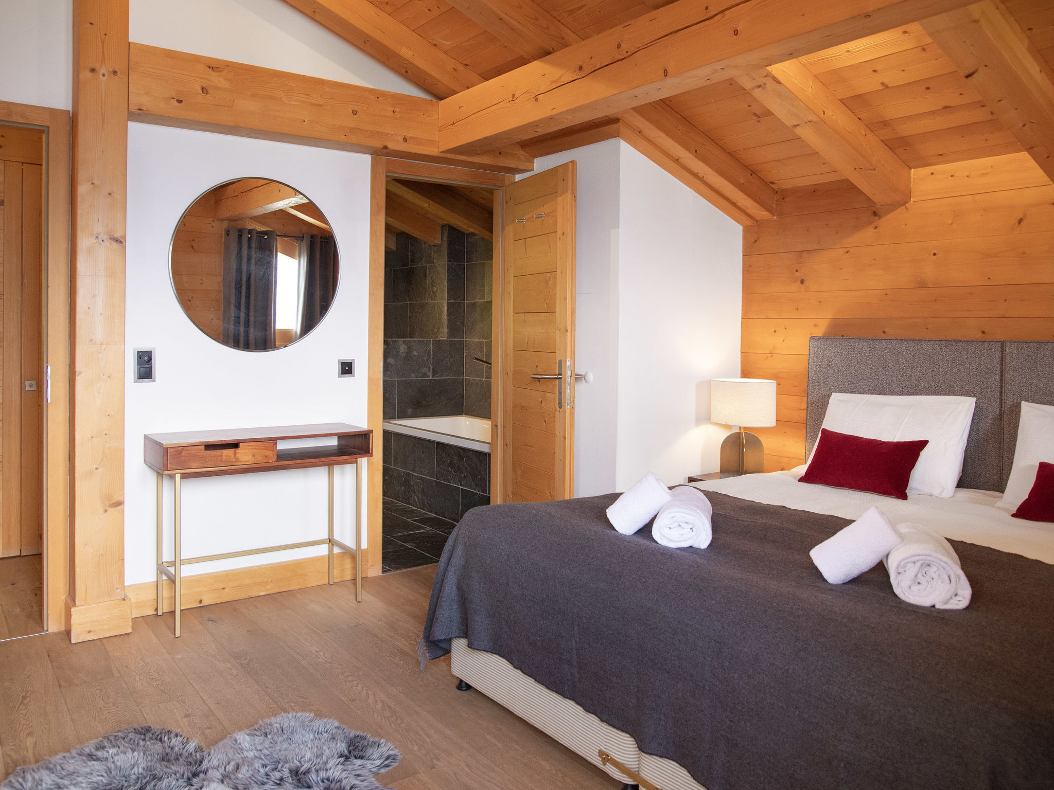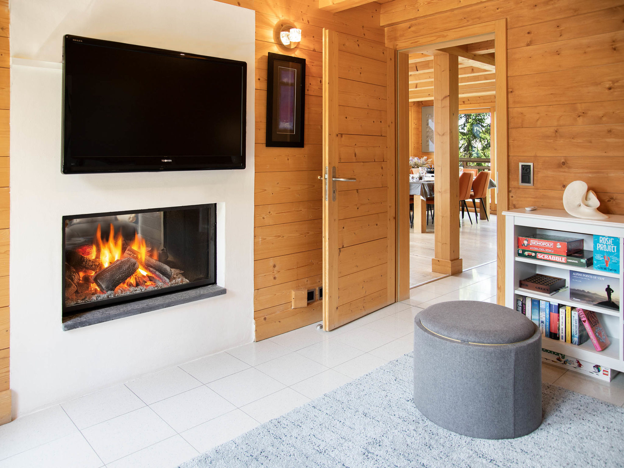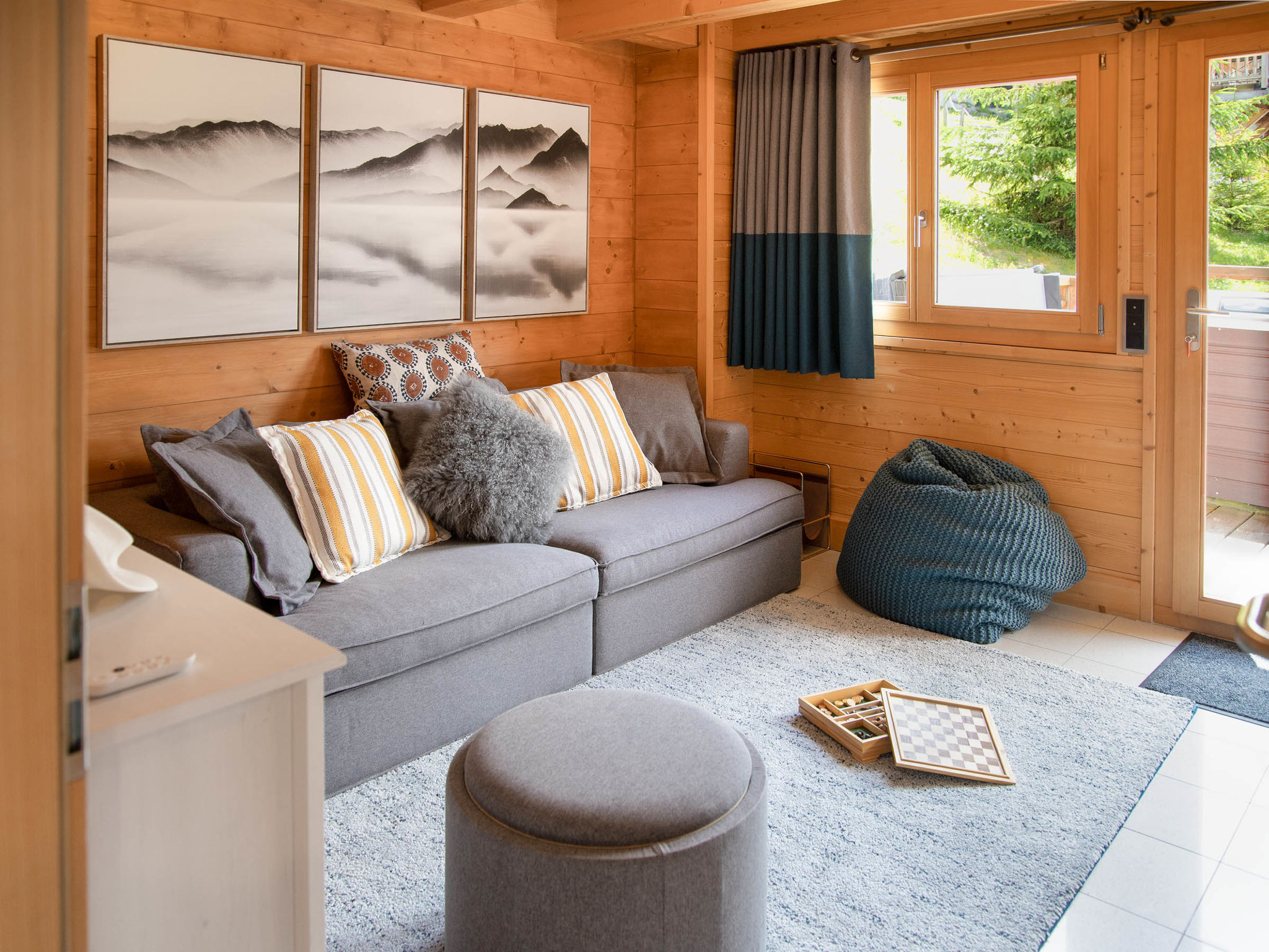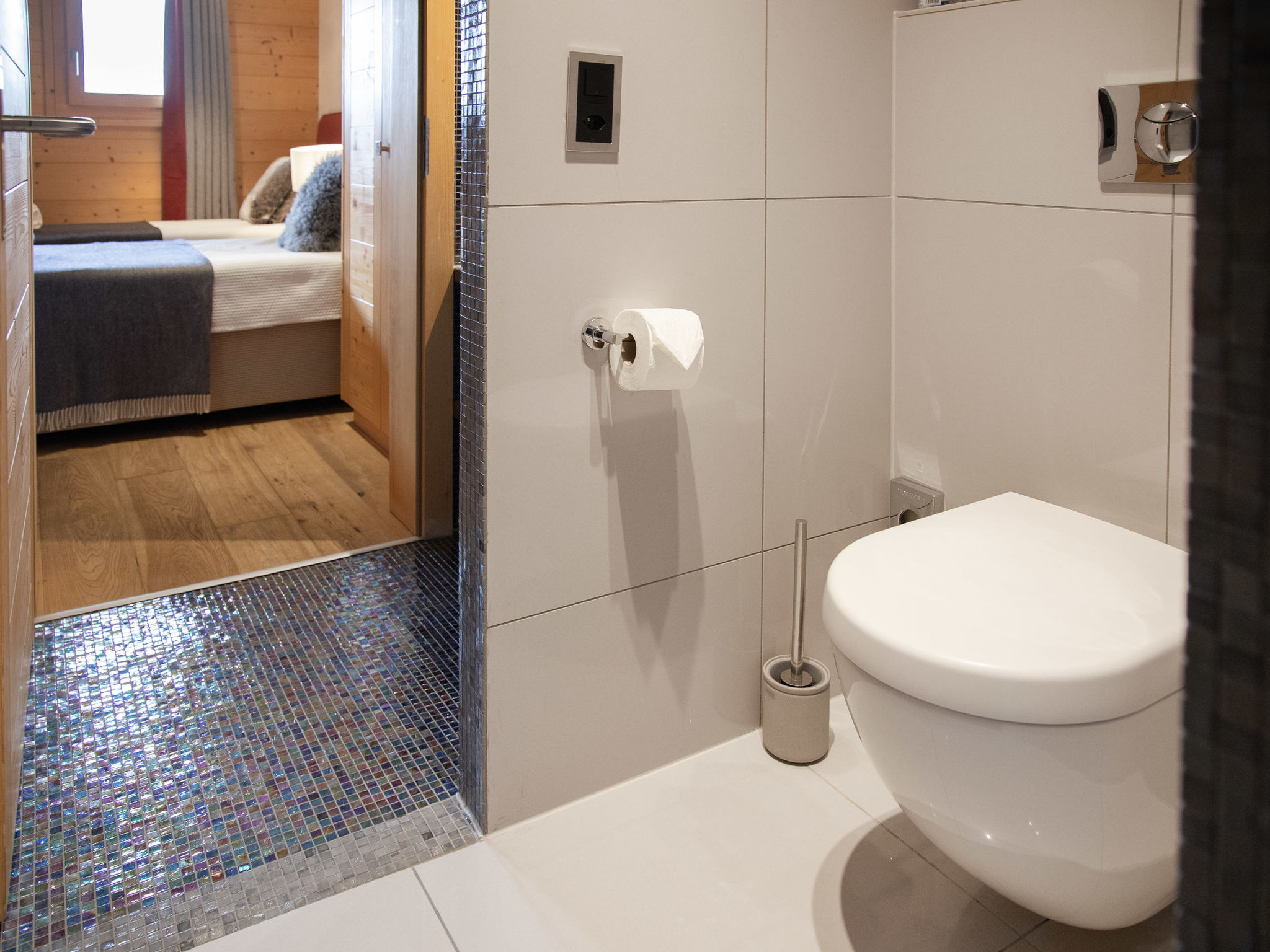 "Etoile", 6-Zimmer-Chalet 220 m2 auf 3 Stockwerken. Geräumig, komfortabel und geschmackvoll eingerichtet: Wohnzimmer mit offenem Kamin und Kabel-TV. Ausgang zur Terrasse, Richtung Osten. Wohn-/Esszimmer mit offenem Kamin und Kabel-TV. Ausgang zum Balkon, Richtung Norden. Offene Küche (Backofen, Geschirrspüler, 4 Induktionskochplatten, Toaster, Wasserkocher, Mikrowelle, elektrische Kaffeemaschine, Kapseln für die Kaffeemaschine (Nespresso) extra, Racletteofen, Fondue Set (Chinoise, Käse)). Unteres Geschoss: Eingang. 2 Zimmer, jedes Zimmer mit 2 Betten (90 cm, Länge 200 cm), Dusche/WC. Sep. WC. Fussbodenheizung. Obergeschoss: 2 Zimmer, jedes Zimmer mit 1 Doppelbett (2 x 90 cm, Länge 200 cm), Bad/Dusche/WC und Doppelwaschbecken. Ausgang zum Balkon, Richtung Norden. Balkon, Terrasse. Terrassenmöbel, Gartengrill. Herrliche Panoramasicht auf die Berge. Zur Verfügung: Waschmaschine, Wäschetrockner, Bügeleisen, Haartrockner. Internet (WLAN, gratis). Parkplatz (2 Autos), im Winter in 500 m. Bitte beachten: Nichtraucher-Unterkunft.
