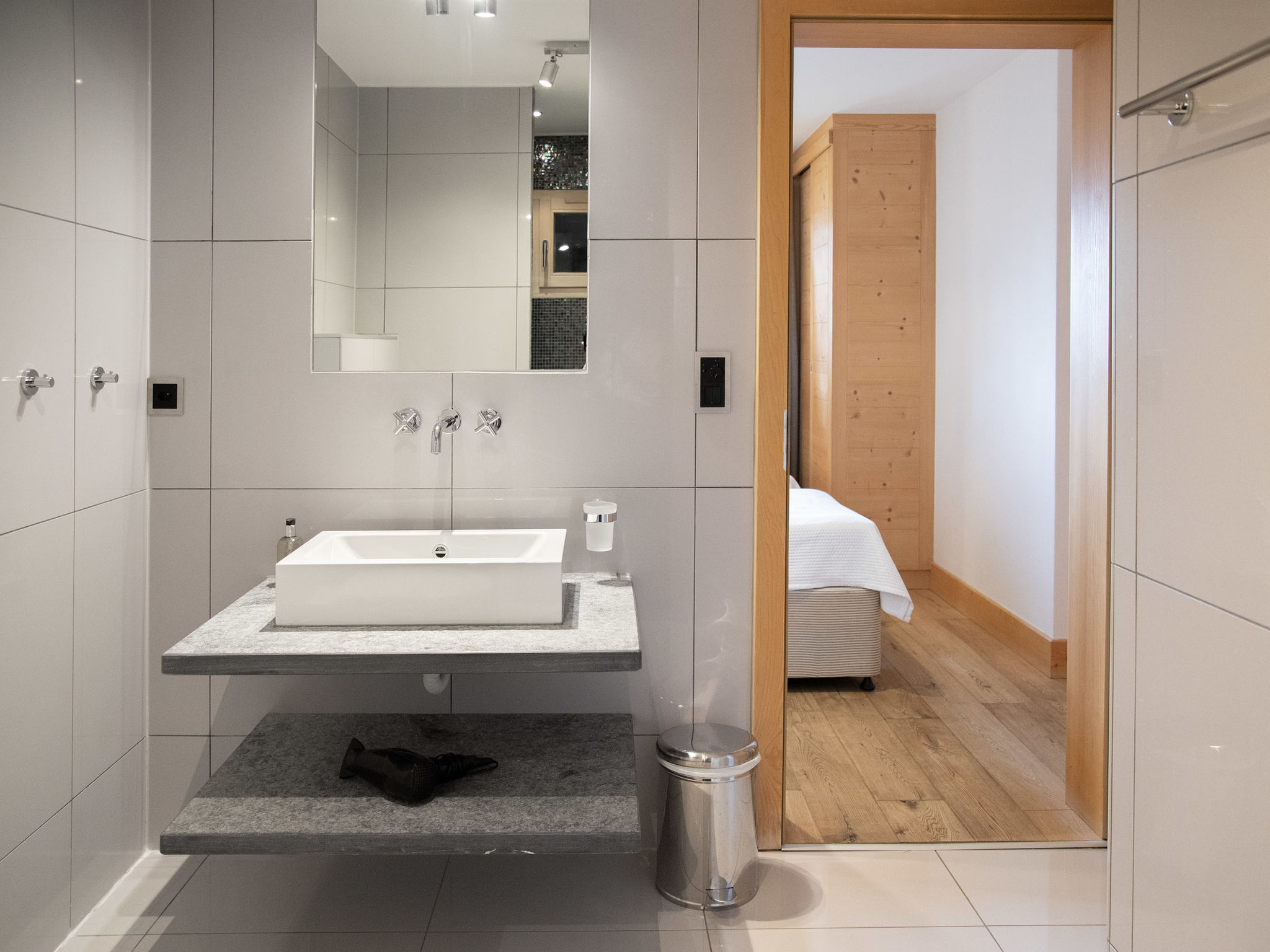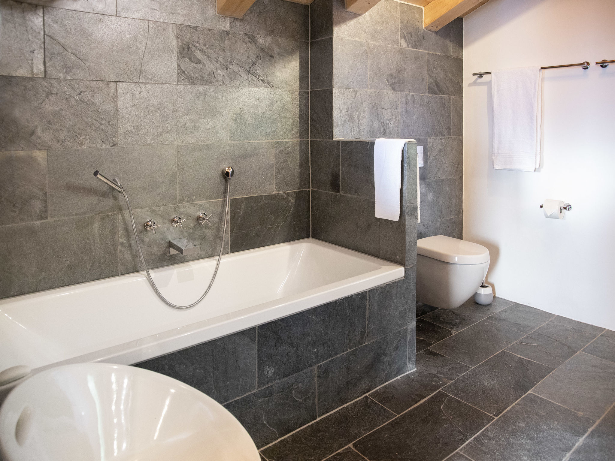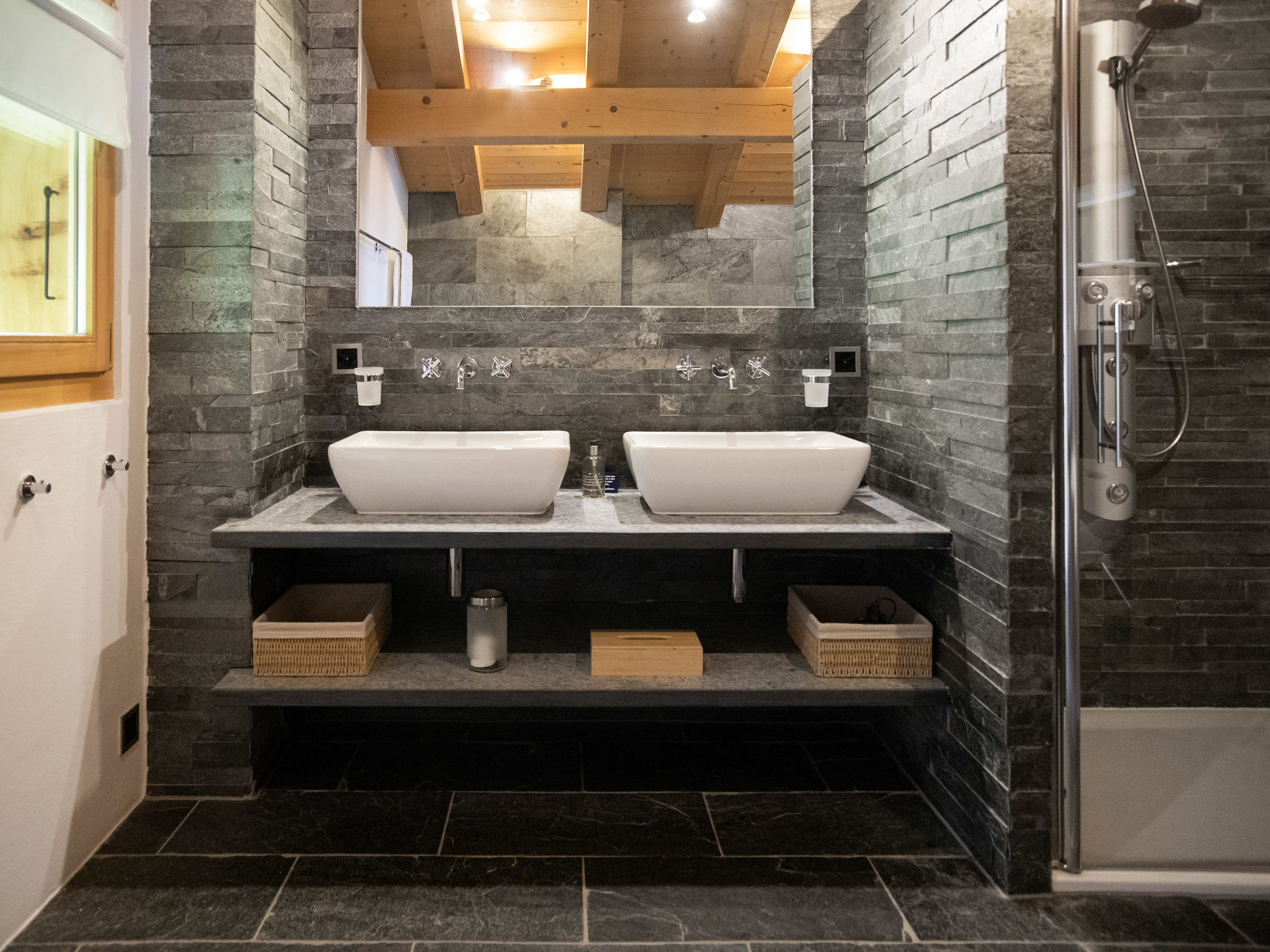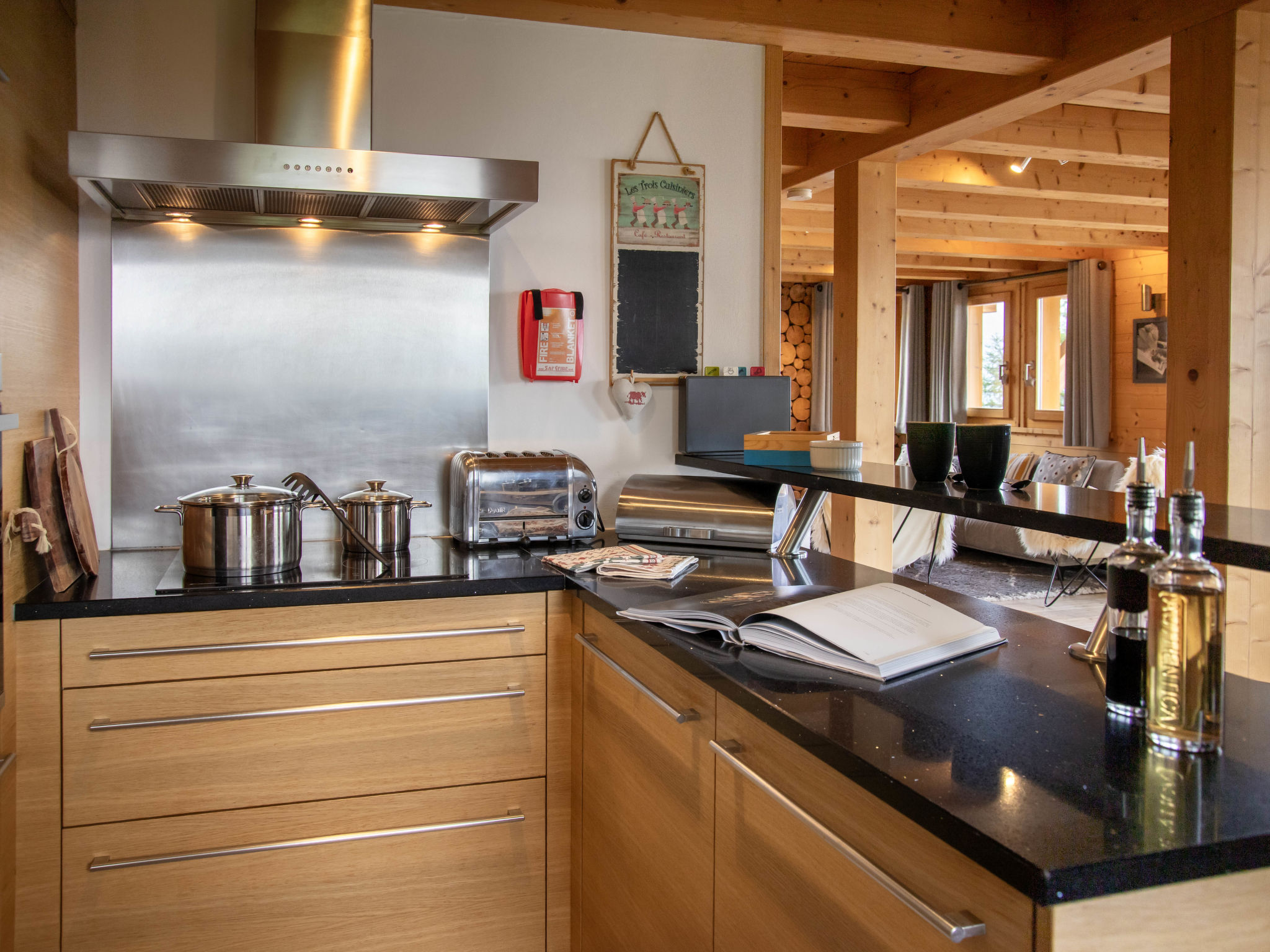 "Etoile", 6-Zimmer-Chalet 220 m2 auf 3 Stockwerken. Geräumig, komfortabel und geschmackvoll eingerichtet: Wohnzimmer mit offenem Kamin und Kabel-TV. Ausgang zur Terrasse, Richtung Osten. Wohn-/Esszimmer mit offenem Kamin und Kabel-TV. Ausgang zum Balkon, Richtung Norden. Offene Küche (Backofen, Geschirrspüler, 4 Induktionskochplatten, Toaster, Wasserkocher, Mikrowelle, elektrische Kaffeemaschine, Kapseln für die Kaffeemaschine (Nespresso) extra, Racletteofen, Fondue Set (Chinoise, Käse)). Unteres Geschoss: Eingang. 2 Zimmer, jedes Zimmer mit 2 Betten (90 cm, Länge 200 cm), Dusche/WC. Sep. WC. Fussbodenheizung. Obergeschoss: 2 Zimmer, jedes Zimmer mit 1 Doppelbett (2 x 90 cm, Länge 200 cm), Bad/Dusche/WC und Doppelwaschbecken. Ausgang zum Balkon, Richtung Norden. Balkon, Terrasse. Terrassenmöbel, Gartengrill. Herrliche Panoramasicht auf die Berge. Zur Verfügung: Waschmaschine, Wäschetrockner, Bügeleisen, Haartrockner. Internet (WLAN, gratis). Parkplatz (2 Autos), im Winter in 500 m. Bitte beachten: Nichtraucher-Unterkunft.