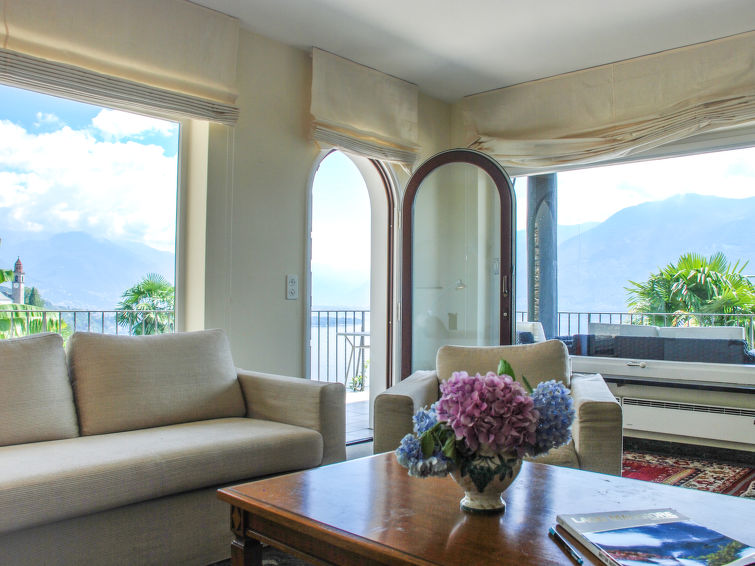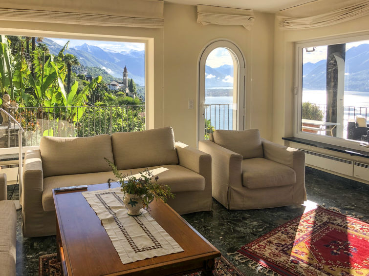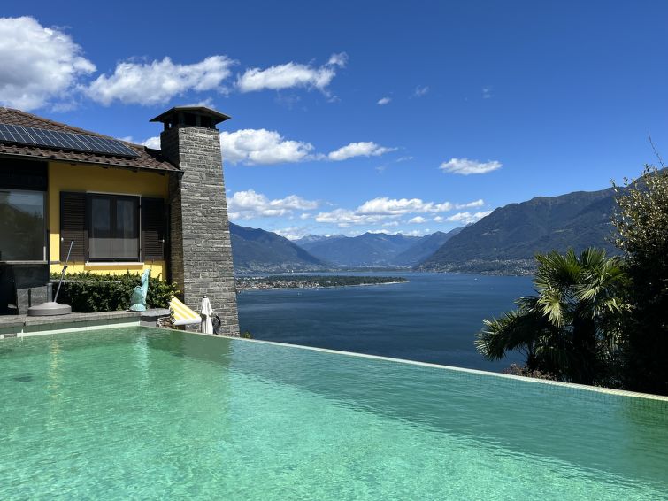 "Panorama Lakeview Lago Maggiore", 4-Zimmer-Haus 140 m2 auf 2 Stockwerken, Südlage. Geräumig und hell, komfortabel und schön eingerichtet: 1 offenes grosses Zimmer mit 2 Betten (90 cm, Länge 200 cm), 1 Diwanbett (130 cm, Länge 180 cm). Ausgang zum Garten. Esszimmer. Küche (Backofen, Geschirrspüler, 4 Glaskeramikplatten, Toaster, Wasserkocher, Tiefkühler, elektrische Kaffeemaschine, Kapseln für die Kaffeemaschine (Nespresso) extra, Racletteofen, Fondue Set (Käse)). Dusche/WC, sep. WC. E-Heizung. Obergeschoss: offenes grosses Wohn-/Schlafzimmer mit Panoramafenster mit 1 Diwanbett (160 cm, Länge 200 cm), Kabel-TV und Internationale TV-Sender (Flachbildschirm), Radio. Ausgang zum Balkon. 1 Doppelzimmer mit 1 Doppelbett (1 x 160 cm, Länge 200 cm), Bad/WC. Ausgang zum Balkon. 2 Terrassen teilweise überdacht, Gartensitzplatz teilweise überdacht. Terrassenmöbel, Balkonmöbel, Gartengrill (mobil), Liegestühle (4). Herrliche Panoramasicht auf den See, die Berge, die Landschaft und die Ortschaft. Zur Verfügung: Bügeleisen, Kinderhochstuhl, Babybett bis 2 Jahre (extra), Haartrockner. Internet (Wireless LAN, gratis). Parkplatz (überdacht) beim Haus. Bitte beachten: Nichtraucher-Haus. Der ausgeschriebene Pool ist zur alleinigen Nutzung. Achtung: Wir bitten Sie, Kinder NIE unbeaufsichtigt zu lassen. Sie als Eltern tragen die Verantwortung. NL-00004381