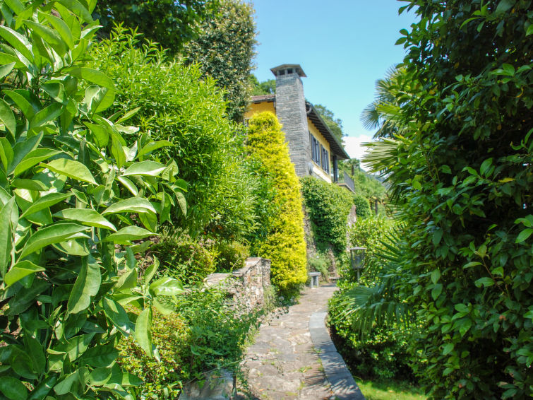 Ronco sopra Ascona 8 km von Locarno-Piazza Grande: Grosses, kinderfreundliches, komfortables Einfamilienhaus "Villetta Irma", 290 m.ü.M.. Alleinstehende, ruhige, sonnige Lage am Hang, 1.8 km vom See. Zur Alleinbenutzung: Grundstück 990 m2, schöner, gepflegter terrassierter Garten, Liegewiese, Schwimmbad eckig (8 x 3 m, 100 - 130 cm tief, saisonale Verfügbarkeit: 15.Mai. - 16.Okt.) mit Innentreppe und Rollladenabdeckung. Aussendusche, Tischtennis, Sitzplatz, Grill. Im Hause: Waschmaschine. Zufahrt bis zum Haus. Treppenweg (36 Stufen) bis zum Haus. Parkplatz beim Haus, öffentliche Parkplätze 50 m auf der Strasse. Lebensmittelgeschäft 600 m, Restaurant, Bushaltestelle 600 m, Bahnstation "Locarno SBB-CFF" 8 km, Steinstrand "Porto Ronco Beach" 2.9 km, Thermalbad "Thermali e Saline, Locarno" 9.5 km, Badebucht 1.8 km, See Lago Maggiore 1.8 km. Golfplatz (18 Loch) 8.5 km, Minigolf 7.5 km, Wanderwege ab Haus 50 m. Nahe gelegene Sehenswürdigkeiten: Falconeria, Locarno, Locarno Piazza Grande, Ascona - Brissago Inseln, Mercato Cannobio IT, Luino IT. Bekannte Seen in der Umgebung sind gut erreichbar: Lago Maggiore (Lido Ascona, Crodolo, Palm BEACH, Lago di Lugano, Lago di Co. Wandergebiete: Cardada, Monte Bré, Monti di Ronco, Centovalli, Vallemaggia, Valle Verzasca. Bitte beachten: geeignet für Familien, Babyausstattung auf Anfrage (extra). Objekt geeignet für 6 Erwachsene + 2 Kinder. Der Besitzer akzeptiert keine Jugendgruppen. ,Ronco sopra Ascona ist ein idealer Ausgangspunkt für tolle Spazier,-Wander- und Biketouren! Der wunderschöne Garten ist liebevoll angelegt und sehr gepflegt mit vielen Terrassen und Schattenplätzen sowie einer Vielfalt mediterraner und tropischer Pflanzen, u.a. Bananenpalmen, Feigenbaum, uralter Olivenbaum, Zitronen- und Orangenbäume, Kakibäume und vielen Palmen. BITTE BEACHTEN: kleine Kinder sollten wegen Terrassen und Pool nicht unbeaufsichtigt bleiben! Direkter Panorama Fussweg ins malerische Dorfkern.