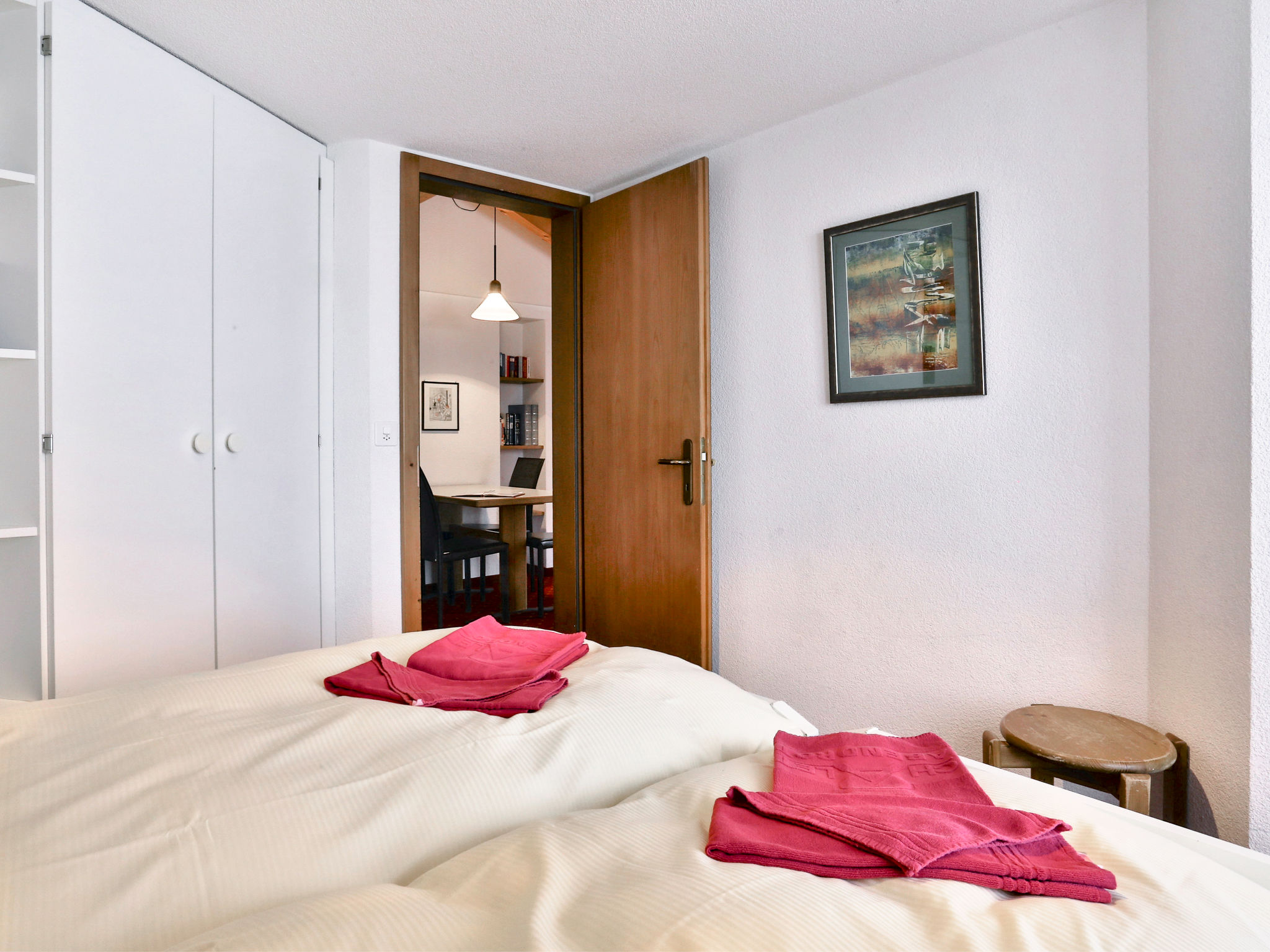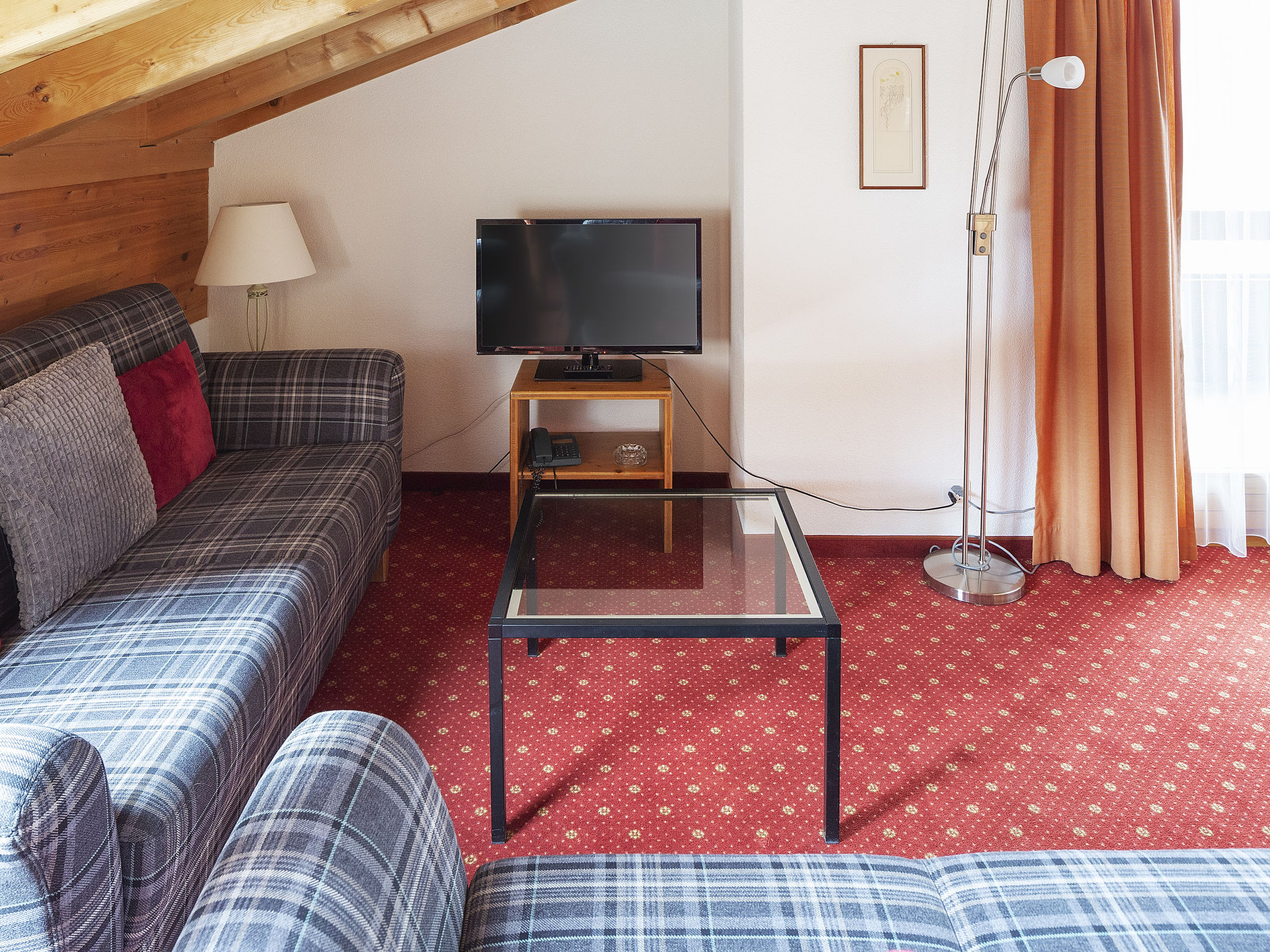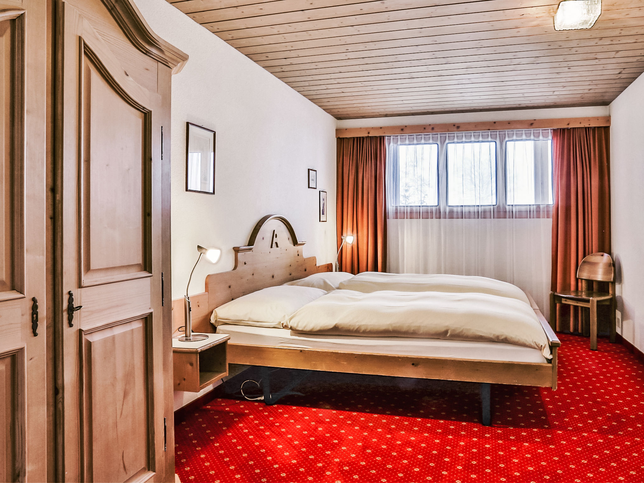 3-Zimmer-Wohnung 62 m2, im Dachgeschoss, Südostlage. Teilweise abgeschrägt: Wohn-/Esszimmer mit Kabel-TV (Flachbildschirm). 1 Doppelzimmer. 1 Doppelzimmer mit Waschbecken. Offene Küche (Backofen, Geschirrspüler, Toaster, Wasserkocher, elektrische Kaffeemaschine, Kapseln für die Kaffeemaschine (Nespresso) extra). Dusche/WC. Balkon, Südlage und Ostlage. Terrassenmöbel. Sicht auf die Berge und Eiger. Zur Verfügung: Haartrockner. Internet (WLAN, gratis). Bitte beachten: Nichtraucher-Unterkunft. Maximal 1 Haustier/Hund erlaubt. Ein Fondue Set (Fleisch oder Käse) sowie ein Raclette Ofen kann an der Rezeption ausgeliehen werden.