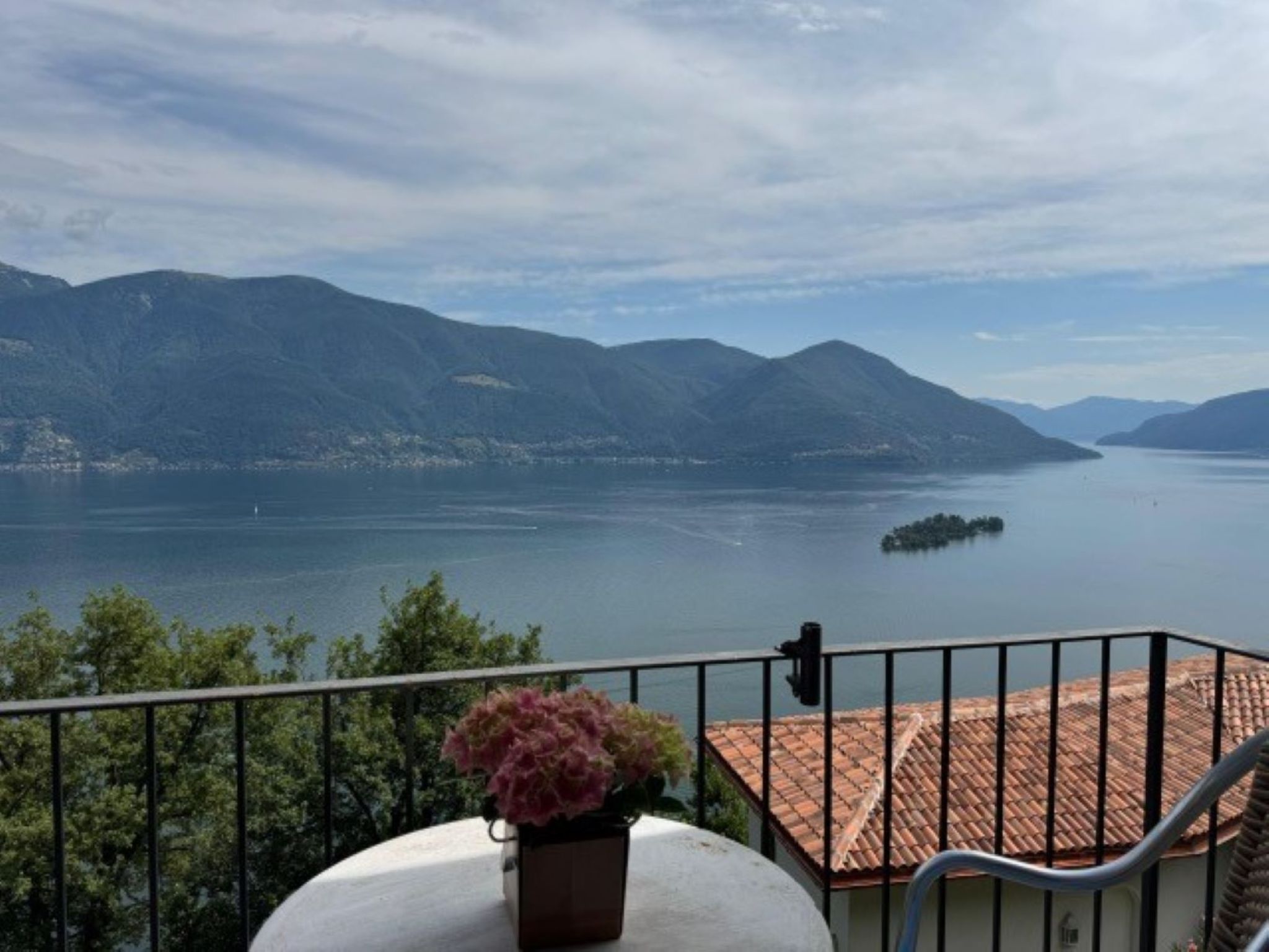 Die kleine, aber voll ausgestattete Küche bietet alles, was Sie für einen leckeren Imbiss brauchen, und das Bad verfügt über eine moderne Dusche. Beginnen Sie den Tag auf dem kleinen Frühstücksbalkon und genießen Sie dabei den atemberaubenden Blick über den Lago Maggiore – ein unvergesslicher Start in jeden Urlaubstag!