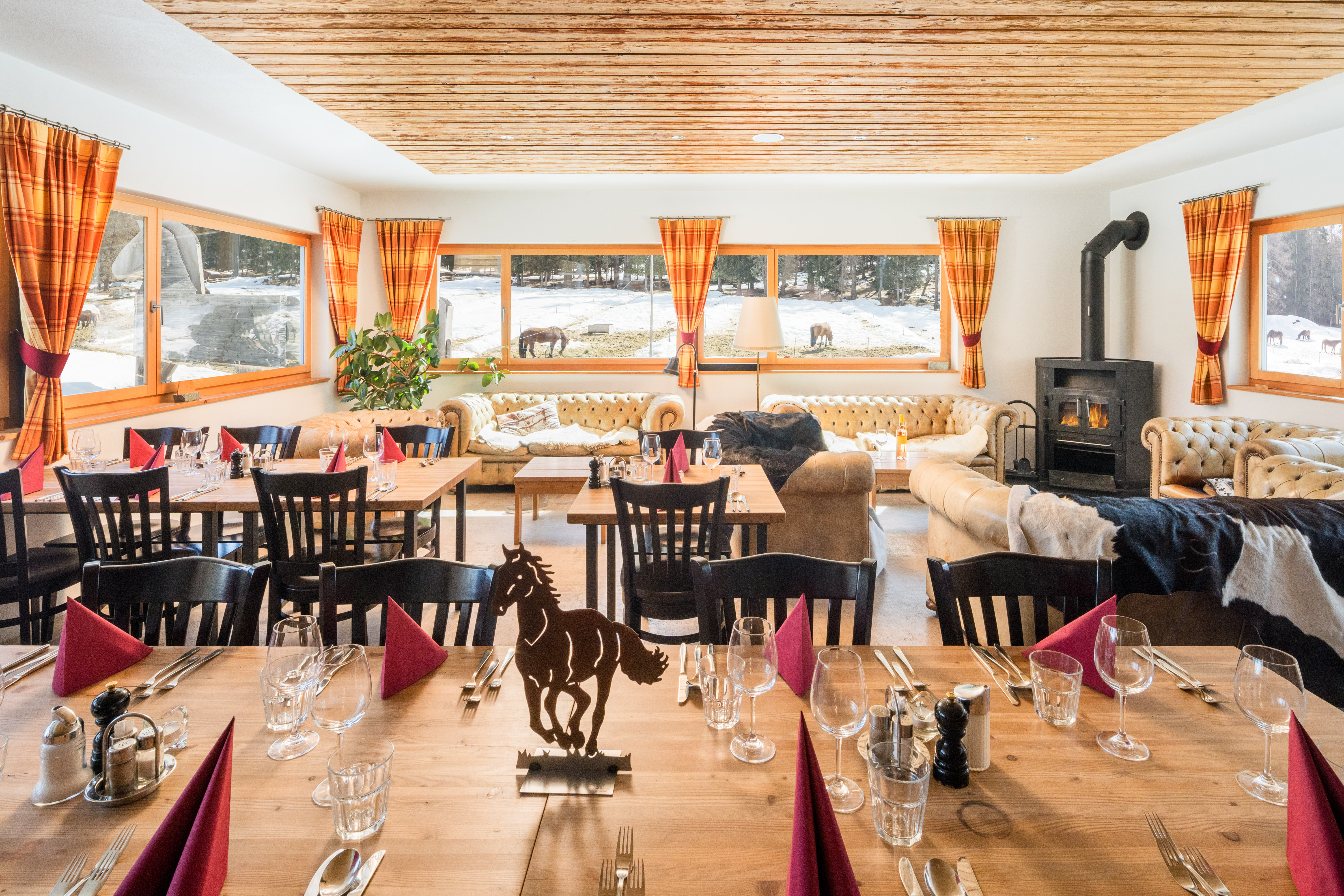 Pferdebetrieb auf 1465 m.ü.M. Der Reitstall und Saloon lässt mit seiner einmaligen und intakten Natur in unmittelbarer Nähe des Nationalparks, die Herzen der Pferdefreunde höher schlagen. Unser Angebot reicht von einwöchigen Jugendreitlagern über Reitkurse bis zu stündigen, ganztägigen oder mehrtägigen Trekkings. Der Saloon bietet 7 gemütliche Doppelzimmer, 2 Dreibettzimmer, 3 Mehrbettzimmer, 2 Familienzimmer, ein grosses Spielzimmer, ein gemütliches Restaurant, eine Gartenwirtschaft, Streichelzoo mit Ziegen und Schweinchen, 60 Pferde und Ponys und genügend Platz um zu verweilen.