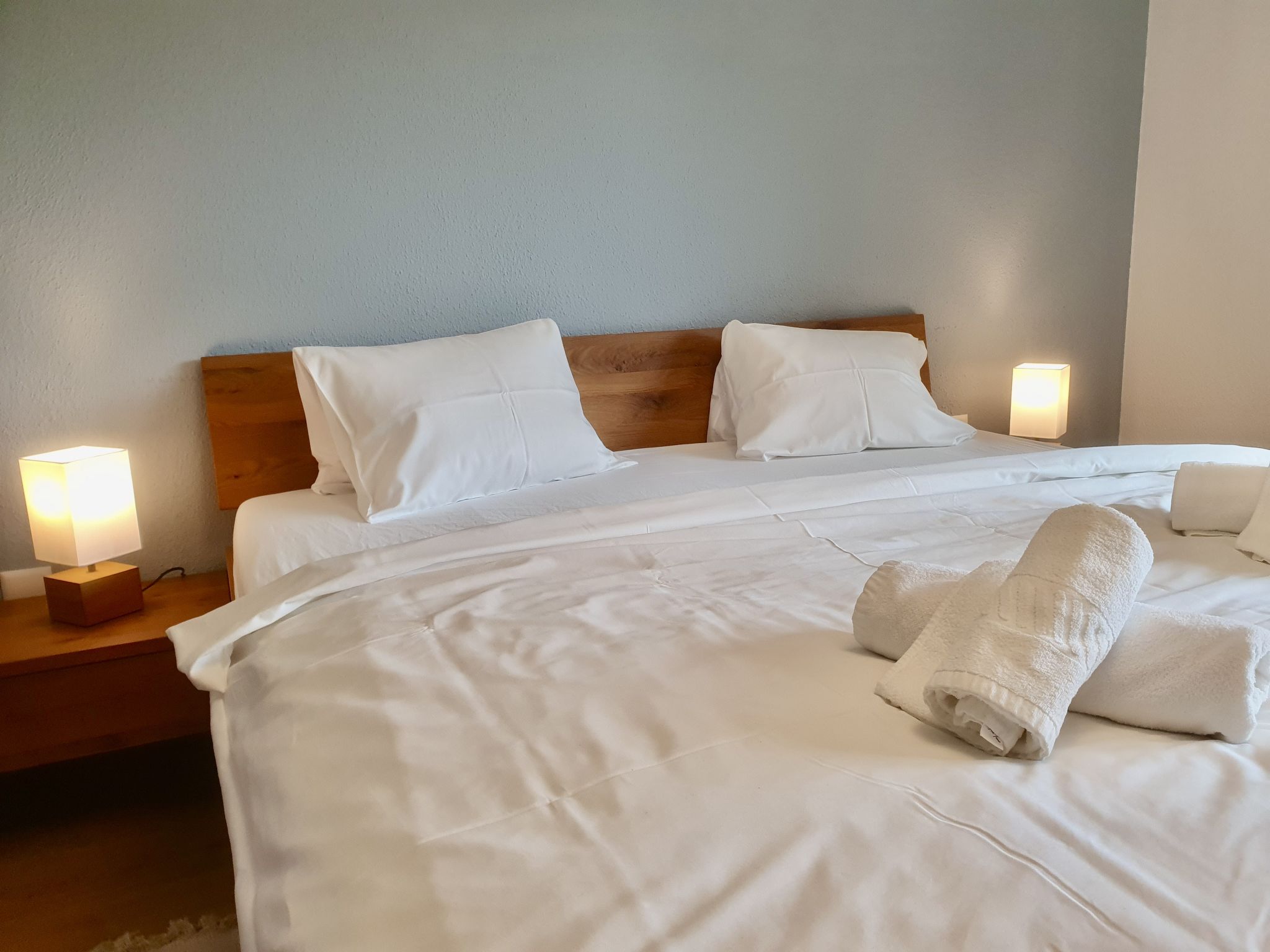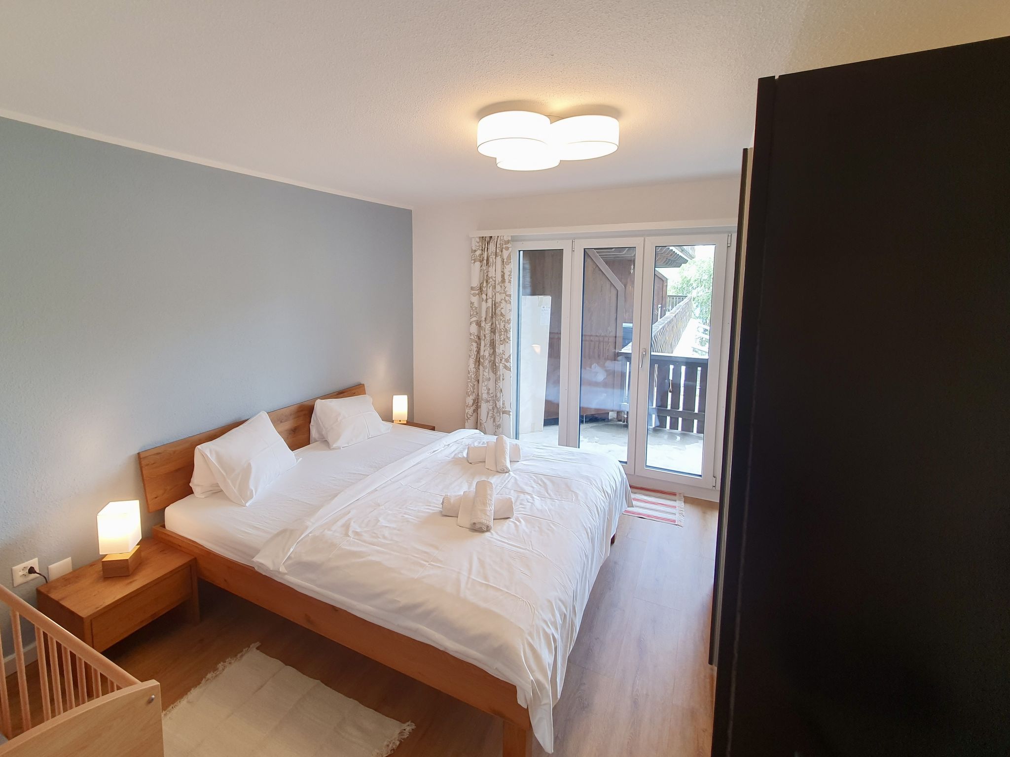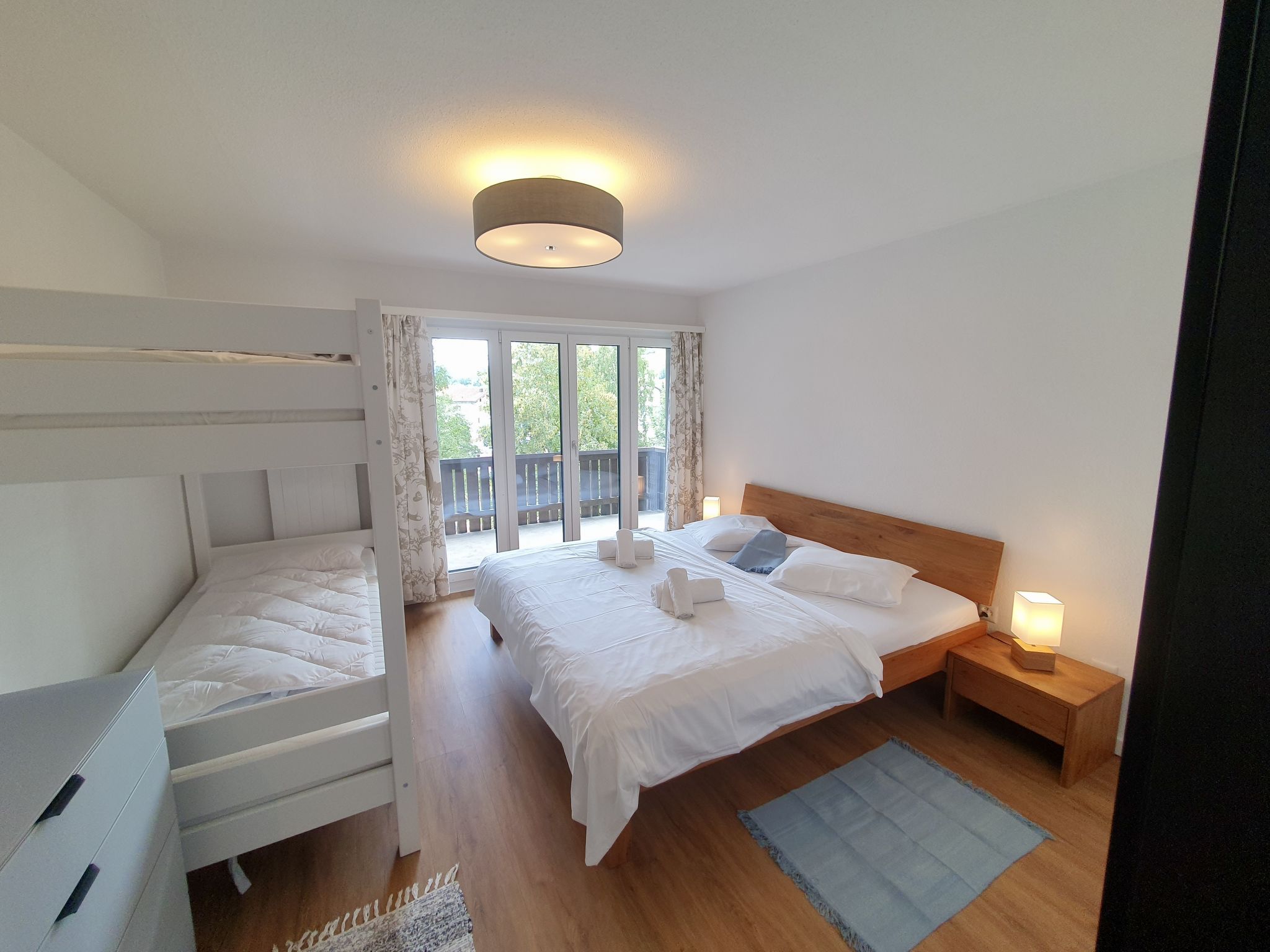 "Apt. 13", 3-Zimmer-Wohnung 110 m2 im 1. Stock. Geräumig, renoviert im Jahre 2023, komfortabel und gemütlich eingerichtet: Wohn-/Esszimmer mit Esstisch und Sat-TV (Flachbildschirm). Ausgang zum Balkon. 1 Doppelzimmer mit Waschbecken. Ausgang zum Balkon. 1 Zimmer mit 1 x 2 Etagenbetten, 1 Doppelbett und Waschbecken. Ausgang zum Balkon. Offene Küche (Backofen, Geschirrspüler, 4 Glaskeramikplatten, Toaster, Mikrowelle, elektrische Kaffeemaschine). Bad/WC, sep. WC. 2 Balkone. Balkonmöbel, Liegestühle (4). Schöne Sicht auf den See, die Berge und die Ortschaft. Zur Verfügung: Babybett. Internet (Wireless LAN, gratis). Garage Nr. 13. Bitte beachten: Nichtraucher-Unterkunft. Das Apartment befindet sich direkt im Herzen von Laax am See und bietet einen herrlichen Bergblick.