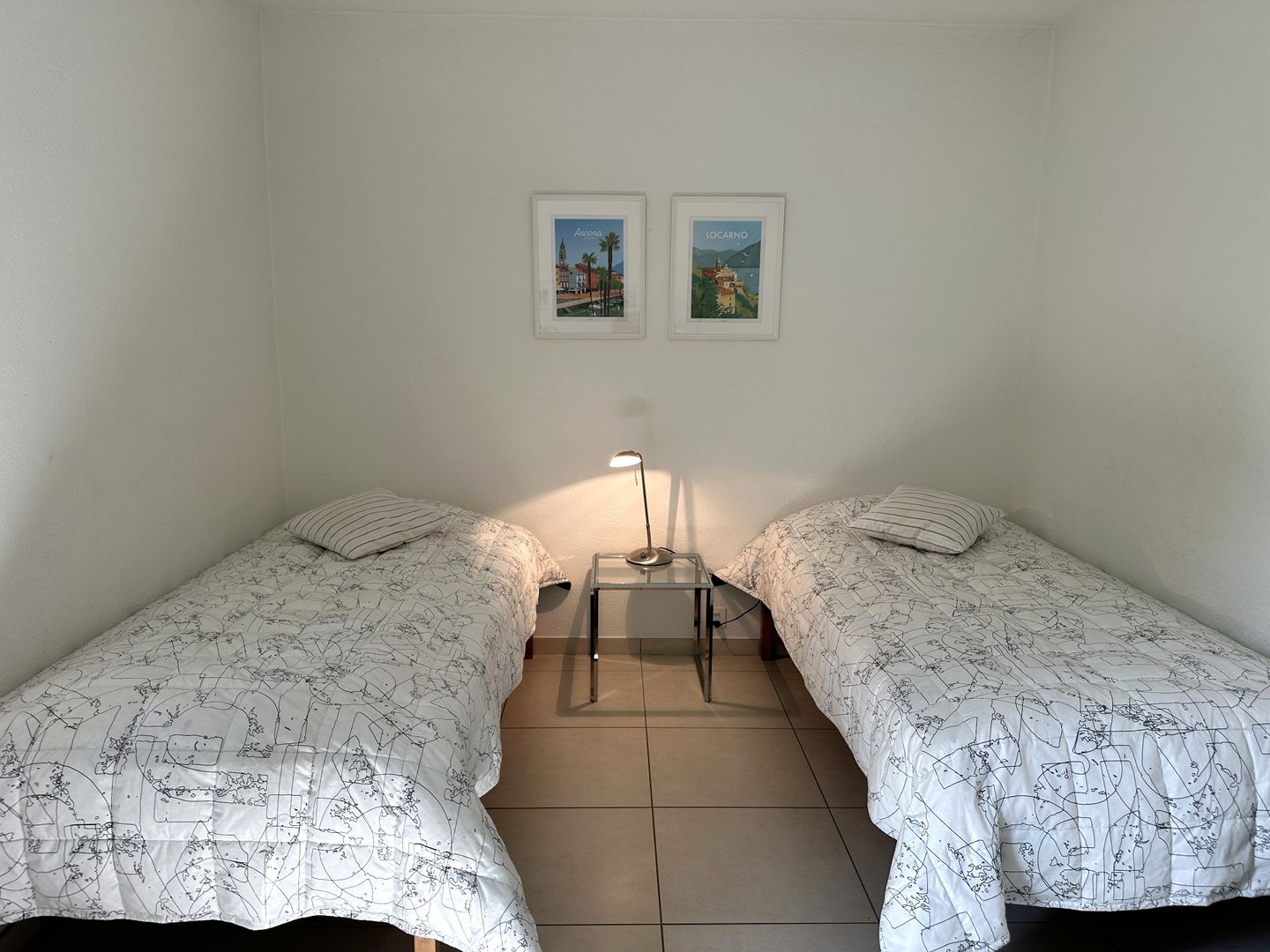 Die Wohnung verfügt über zwei komfortable Doppelschlafzimmer, von denen eines direkten Zugang zur Terrasse sowie einen traumhaften Blick auf den See bietet. Das Badezimmer ist mit einer Badewanne und einem WC ausgestattet. Ein Highlight der Wohnung ist die grosszügige Terrasse mit überdachtem Sitzplatz und Esstisch – ideal für Mahlzeiten im Freien. Liegestühle laden zum Sonnenbaden und Entspannen ein. Auf der seitlichen Terrasse können Sie die Nachmittagssonne geniessen – hier steht Ihnen auch ein Steingrill für gemütliche Grillabende zur Verfügung. Ein Garagenparkplatz rundet das Angebot ab.