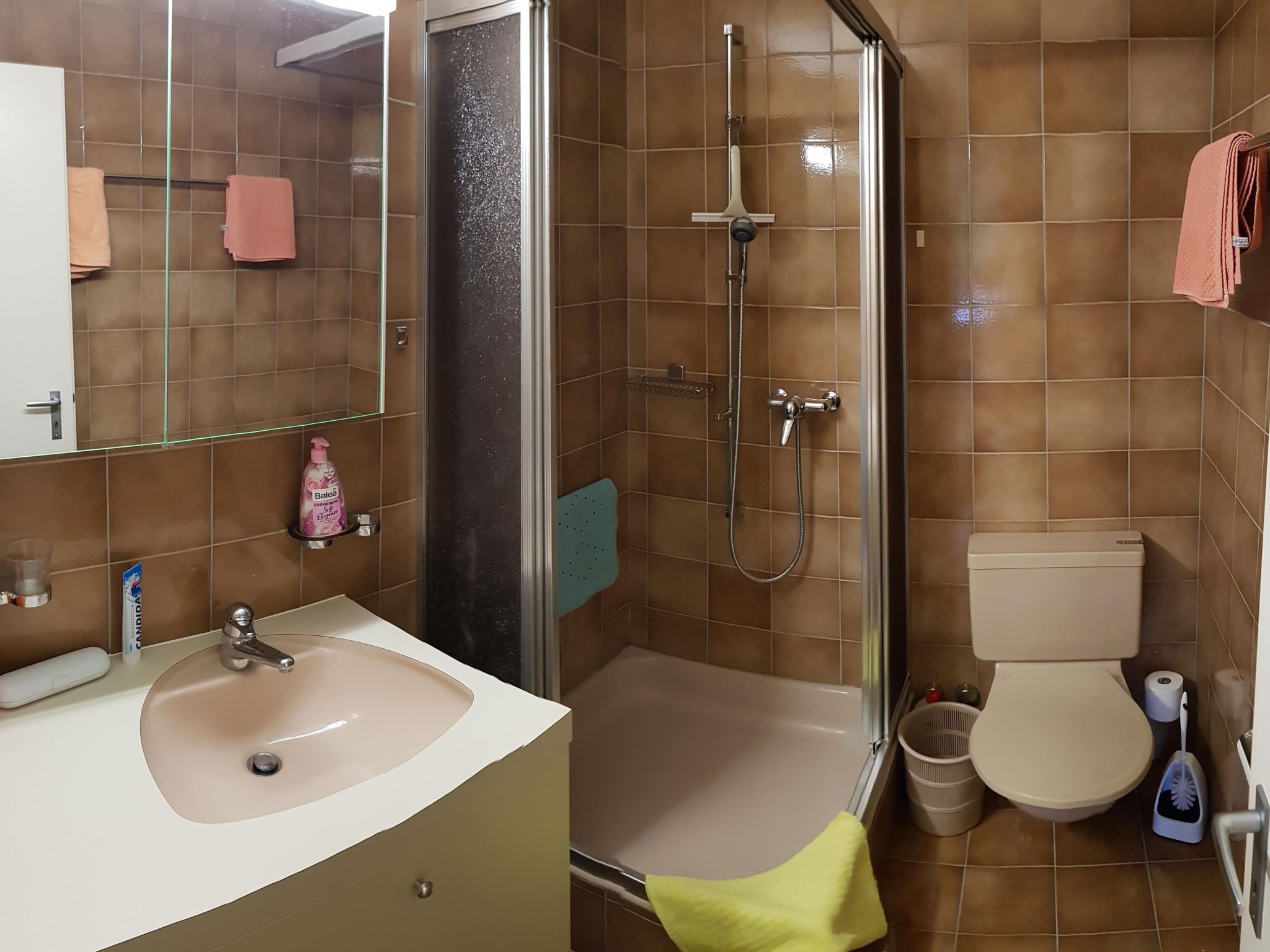 Bad - Dusche - WC – Spiegelschrank – Lavabo - Haarfön – Frotteewäsche – Wäschekippe für Schmutzwäsche