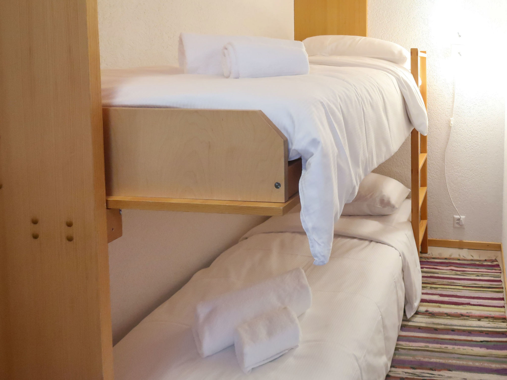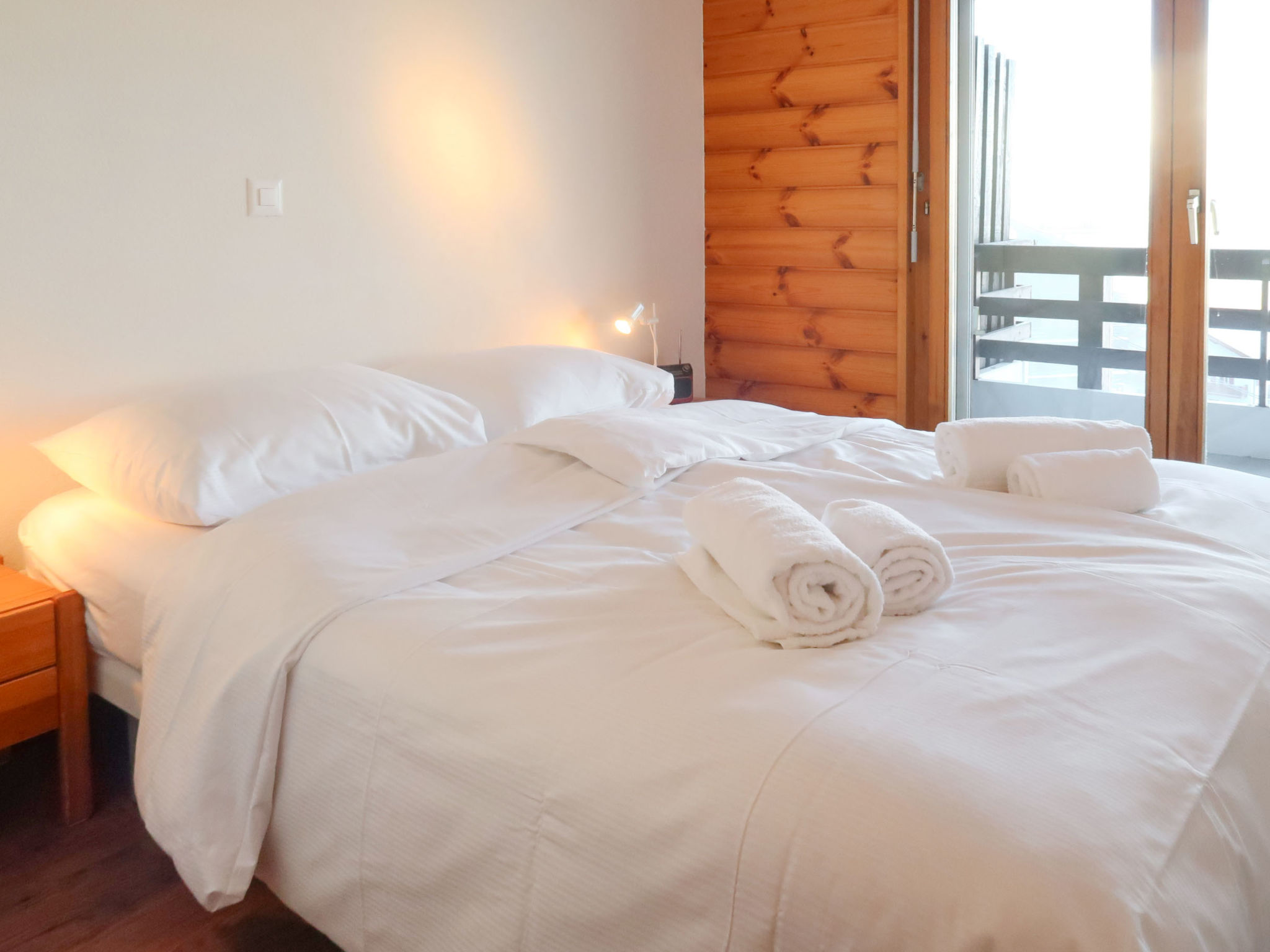 "Hauts De Nendaz B K5", 2-Zimmer-Wohnung 46 m2 im 5. Stock. Komfortabel eingerichtet: Eingang mit 1 x 2 Etagenbetten (80 cm, Länge 190 cm). Wohn-/Esszimmer mit offenem Kamin (nur Deko), Kabel-TV. 1 Zimmer mit 1 Doppelbett (2 x 80 cm, Länge 190 cm). Küche (4 Kochplatten, Backofen, Geschirrspüler, Wasserkocher, elektrische Kaffeemaschine, Kapseln für die Kaffeemaschine (Nespresso) extra, Racletteofen, Fondue Set (Käse)). Bad/WC. Bodenheizung. Balkon, Nordwestlage. Balkonmöbel. Schöne Sicht auf die Berge und die Skipiste. Zur Verfügung: Haartrockner. Internet (WLAN, gratis). Parkplatz Nr. K5. Bitte beachten: Nichtraucher-Unterkunft. Anstelle eines abgeschlossenen Schlafzimmers befinden sich manche Schlafplätze in einem offenen Bereich (Galerie, Nische etc.).